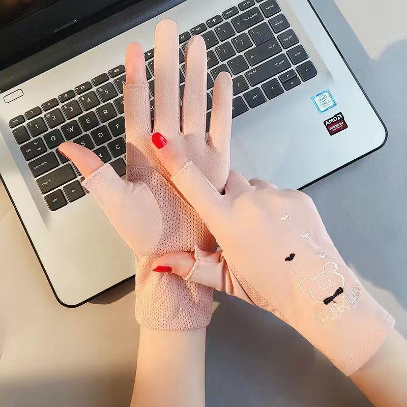 Guantes de protección solar de seda de hielo, transpirables, finos, de verano, para mujer, para exteriores, con sensación de hielo, antideslizantes, para montar a caballo, con pantalla táctil