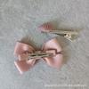 Horquilla para el pelo de estilo coreano para niños, linda y dulce, con lazo pequeño rosa y pequeño clip lateral de amor rosa