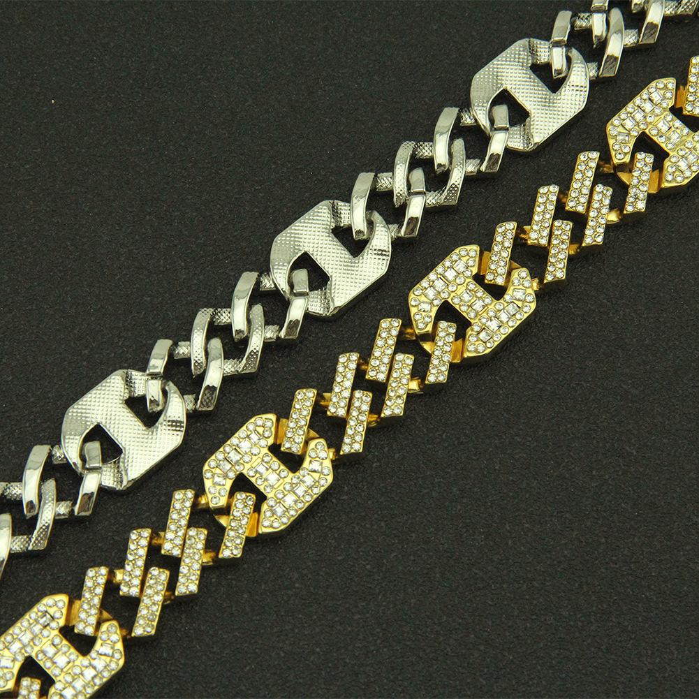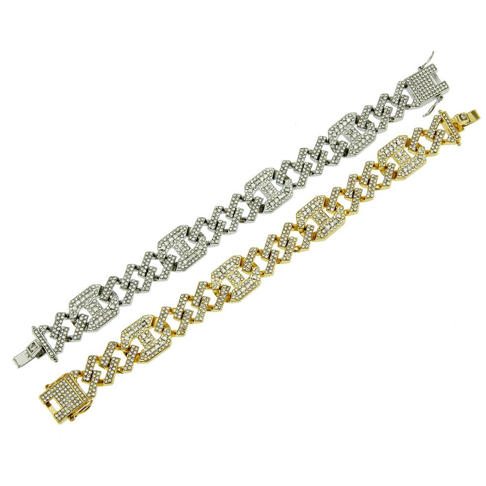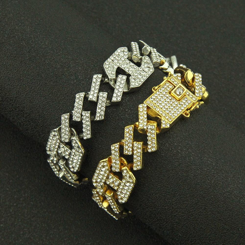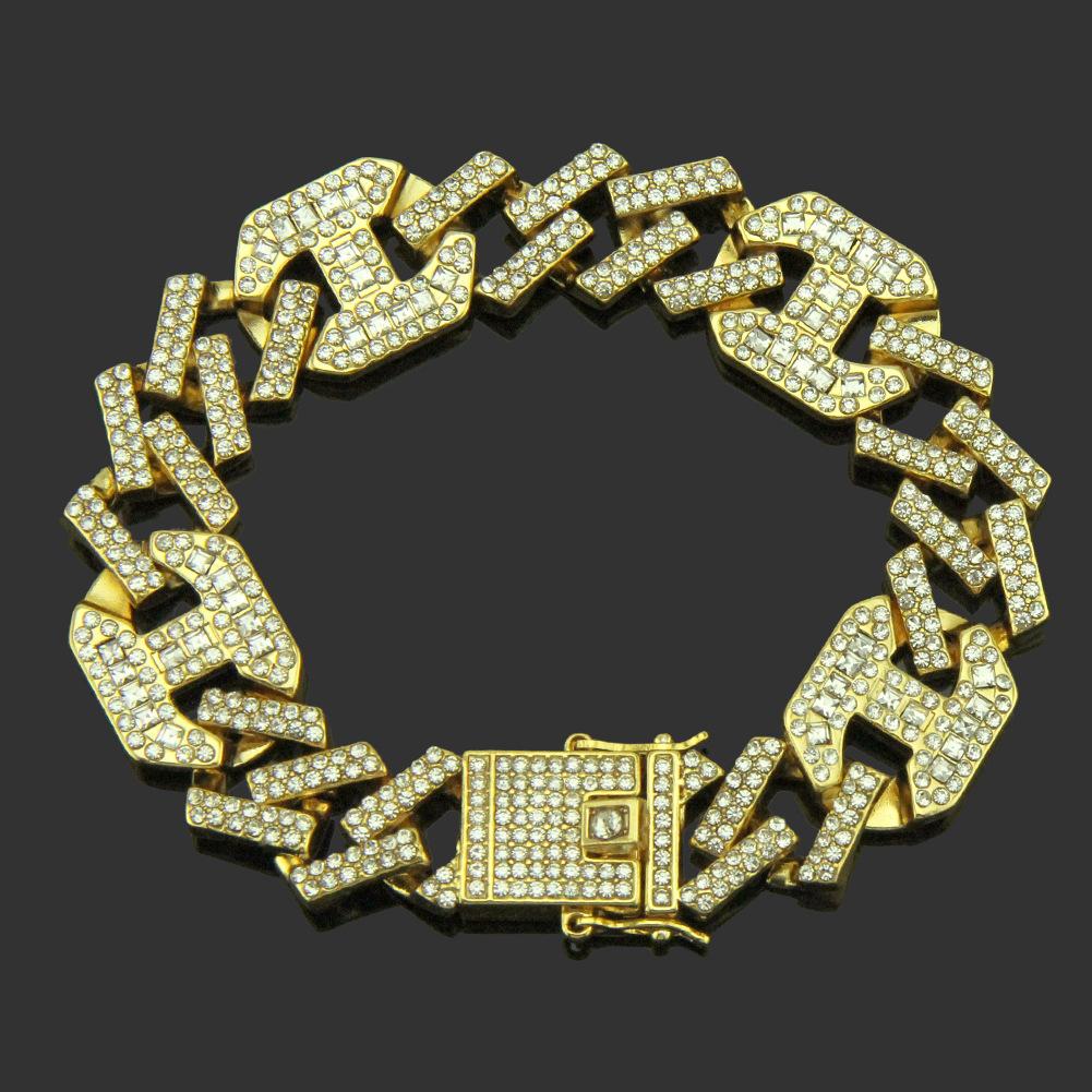 Pulsera de hombre con forma de barra de diamantes, cadena cubana de hip-hop de gran venta en Europa y América, accesorios de moda hip-hop de 15 mm de ancho.