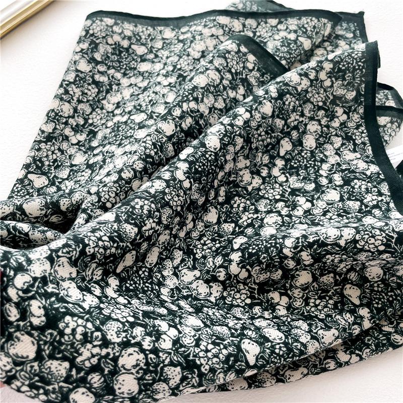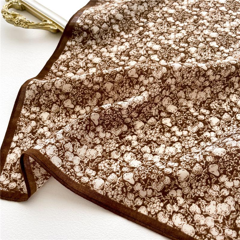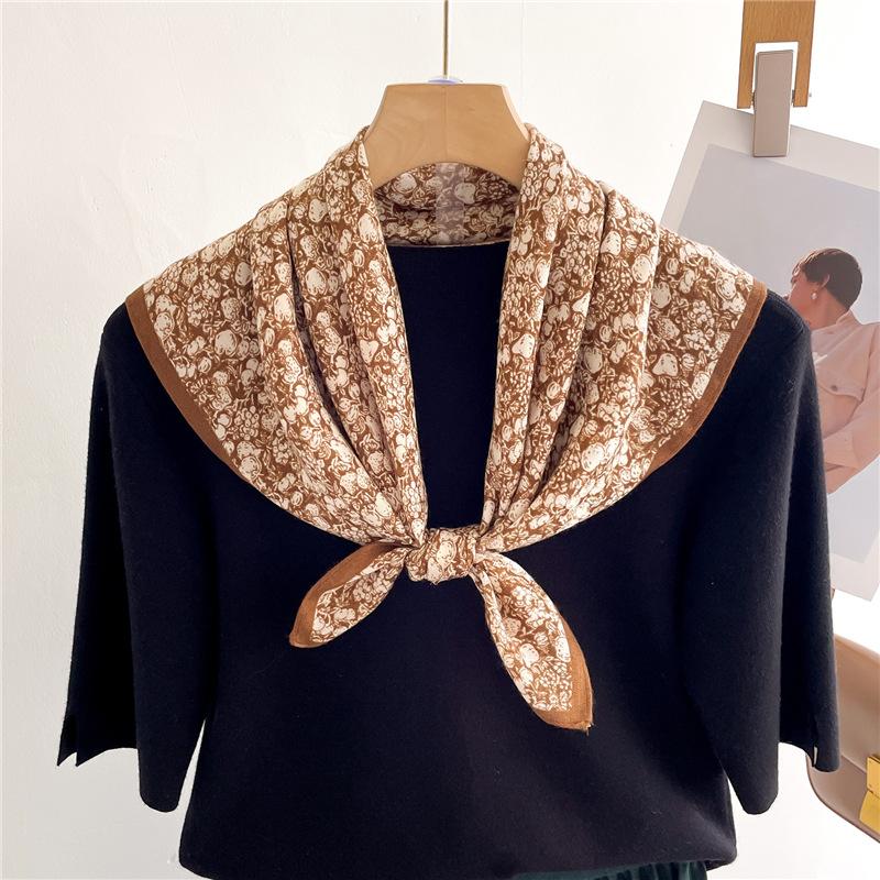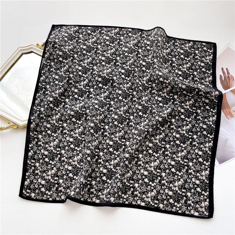 Pañuelo de seda cuadrado pequeño con diseño floral de flores pequeñas para mujer, de primavera y verano, con estampado de espiga fina, de terciopelo de imitación.