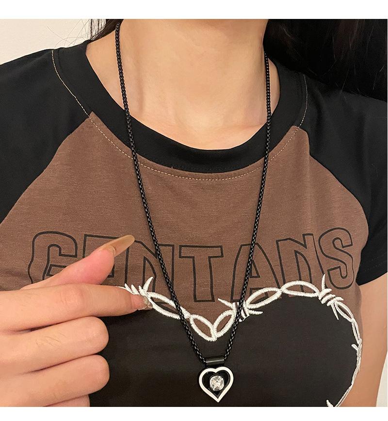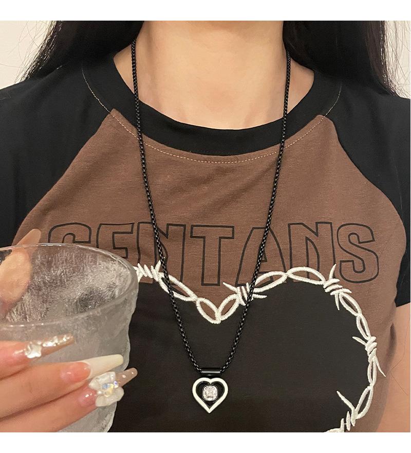 Collar de amor con costura de cadena negra para mujer, diseño de nicho, estilo hip hop, cadena de suéter larga sencilla, accesorios para suéter