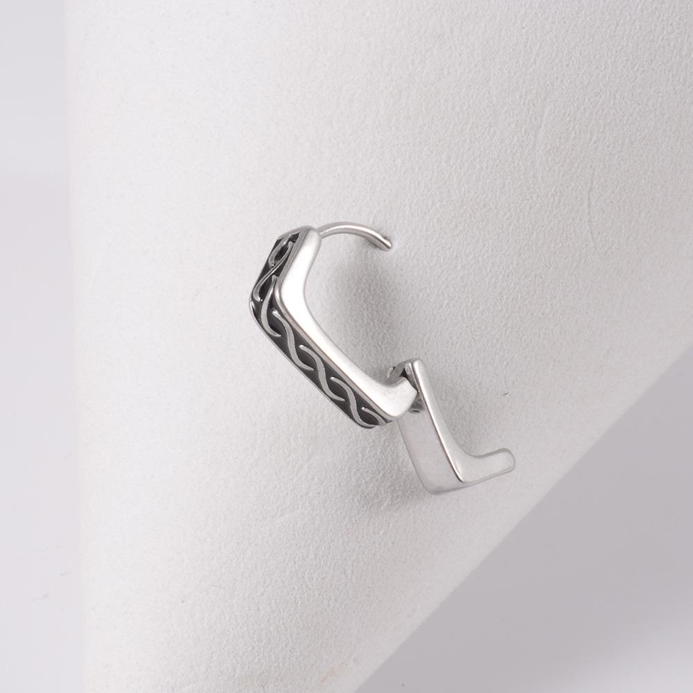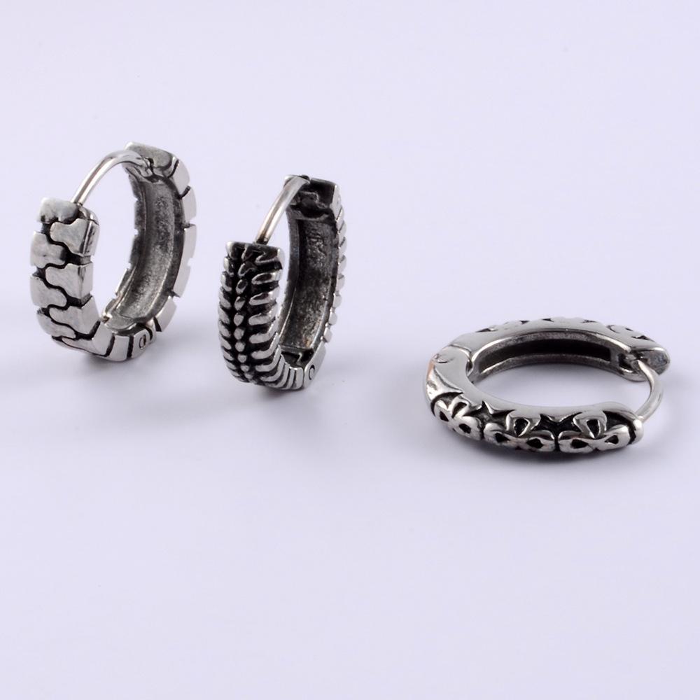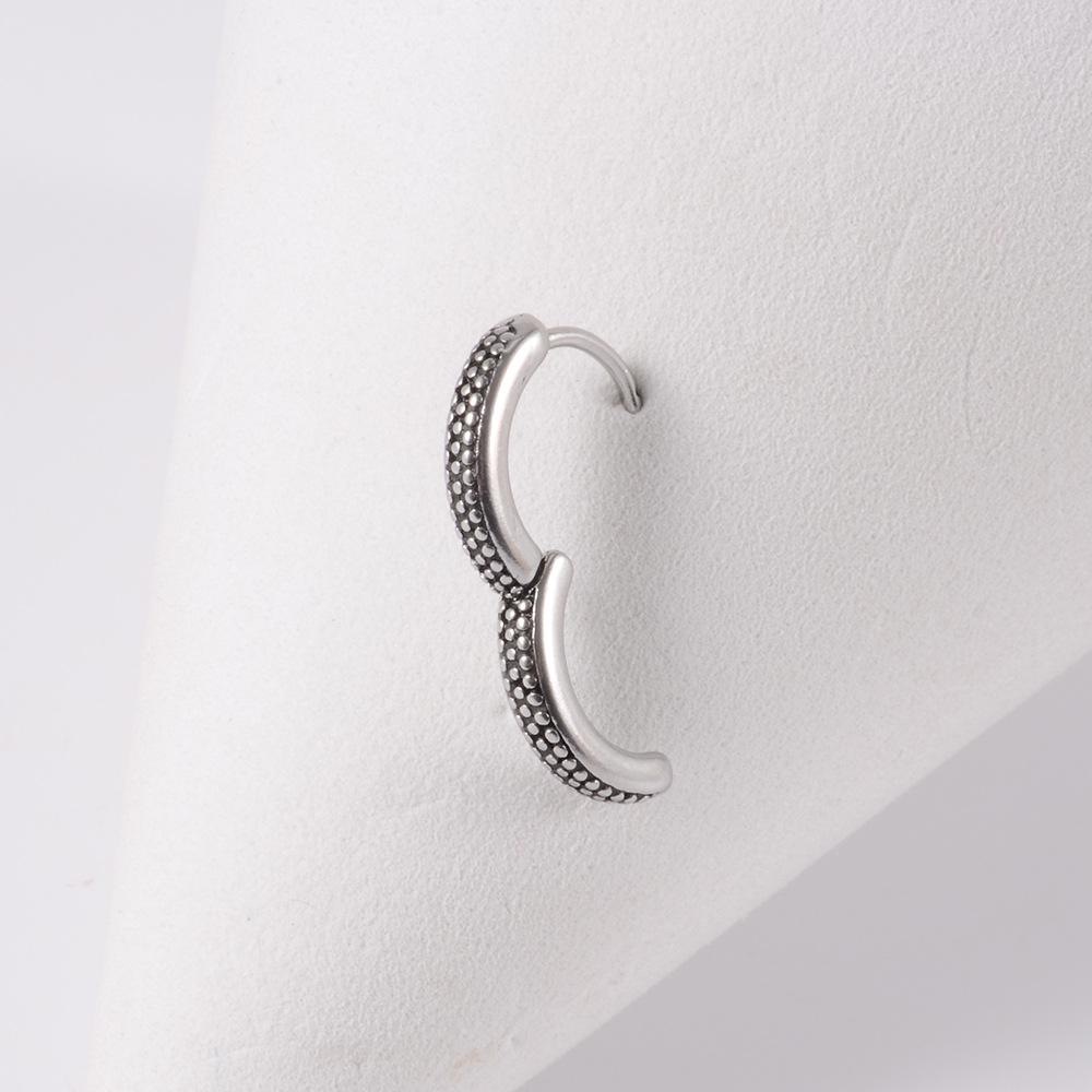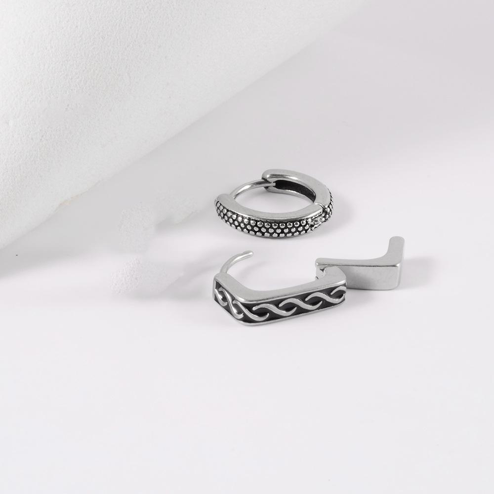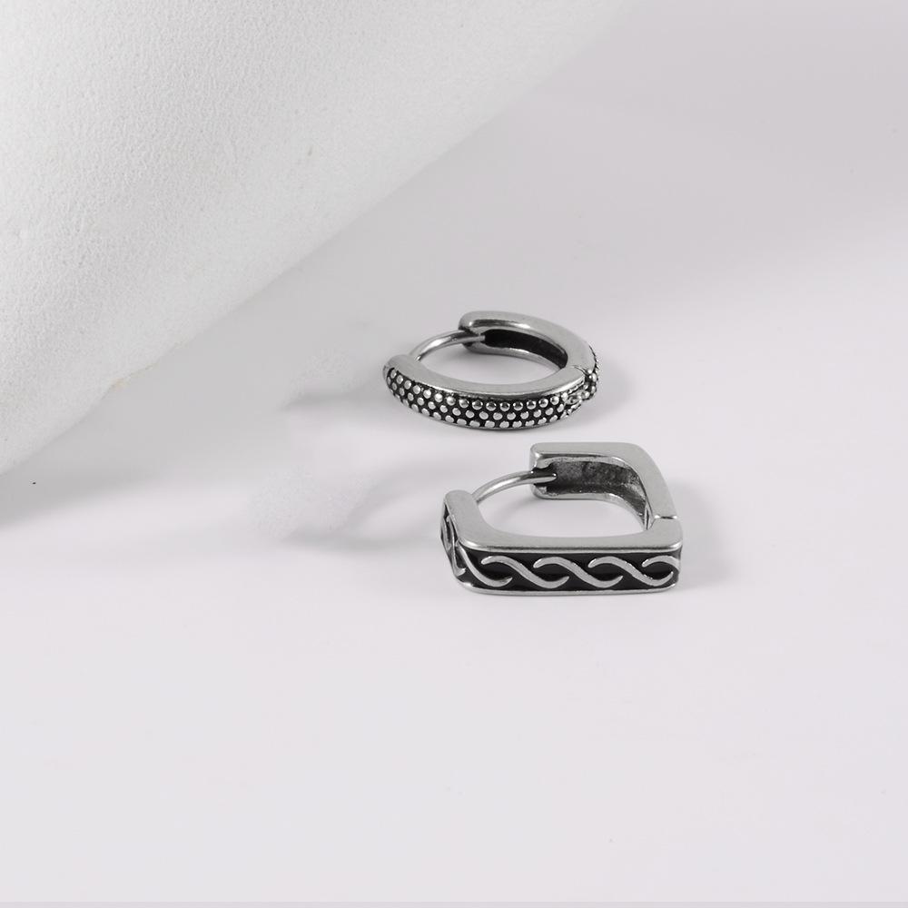 .Nombre: Hebillas de oreja de rueda de acero inoxidable con perforación transfronteriza, pendientes de gota de aceite retorcidos con puntos personalizados, hebillas de hueso de oreja de encaje triangular redondo