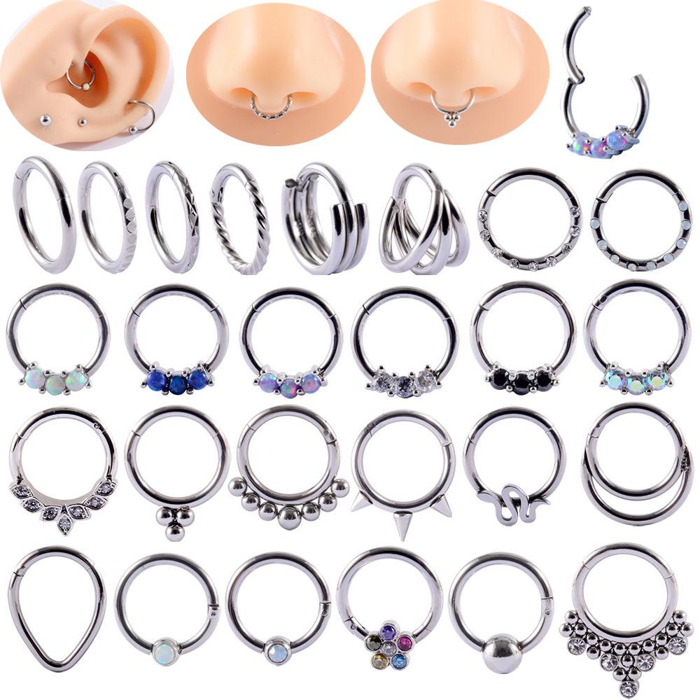 Anillo nasal de acero inoxidable con circonita transfronteriza, pendientes de gota de agua con proteína y diamantes, anillo nasal de ópalo de titanio G23, anillo para el hueso de la oreja