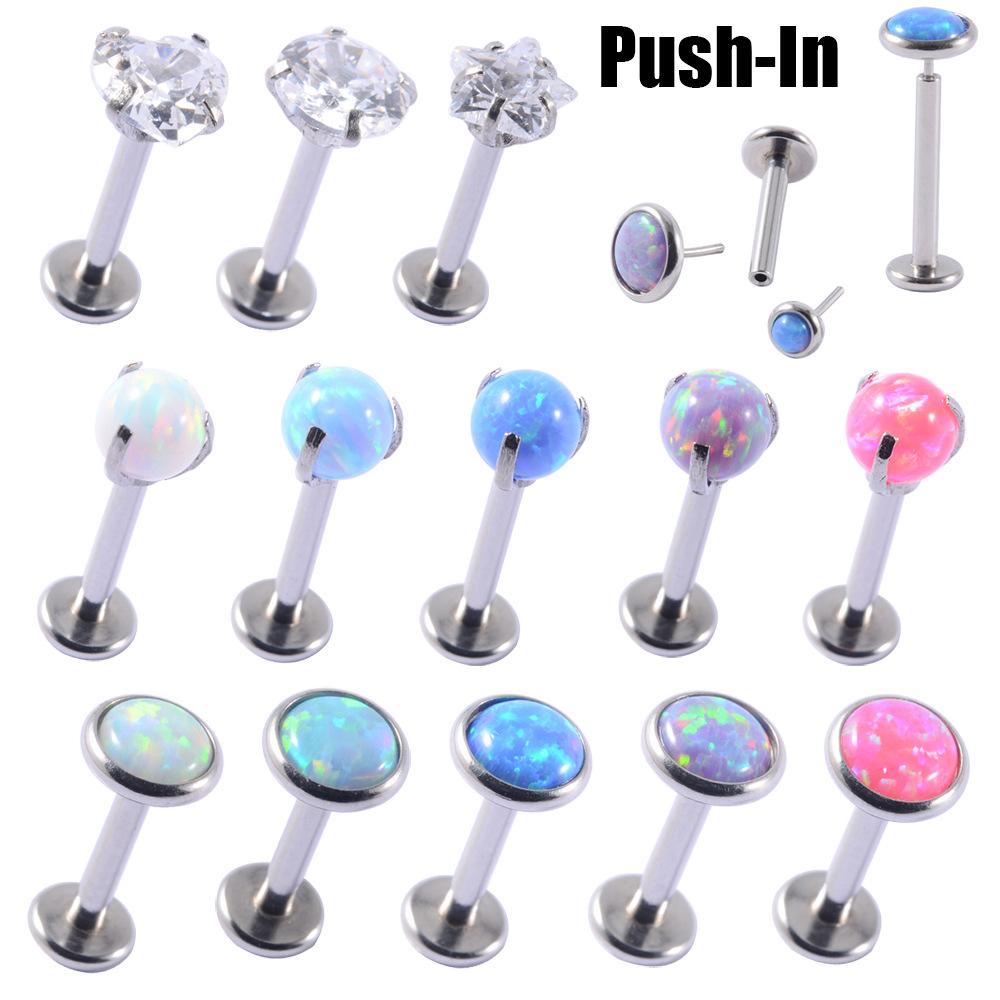 Pendientes de pasador transfronterizos nuevos, de titanio G23, con barra en T y ópalo, para labio, con circonitas, ópalo, cuentas redondas, para oreja, con ópalo.