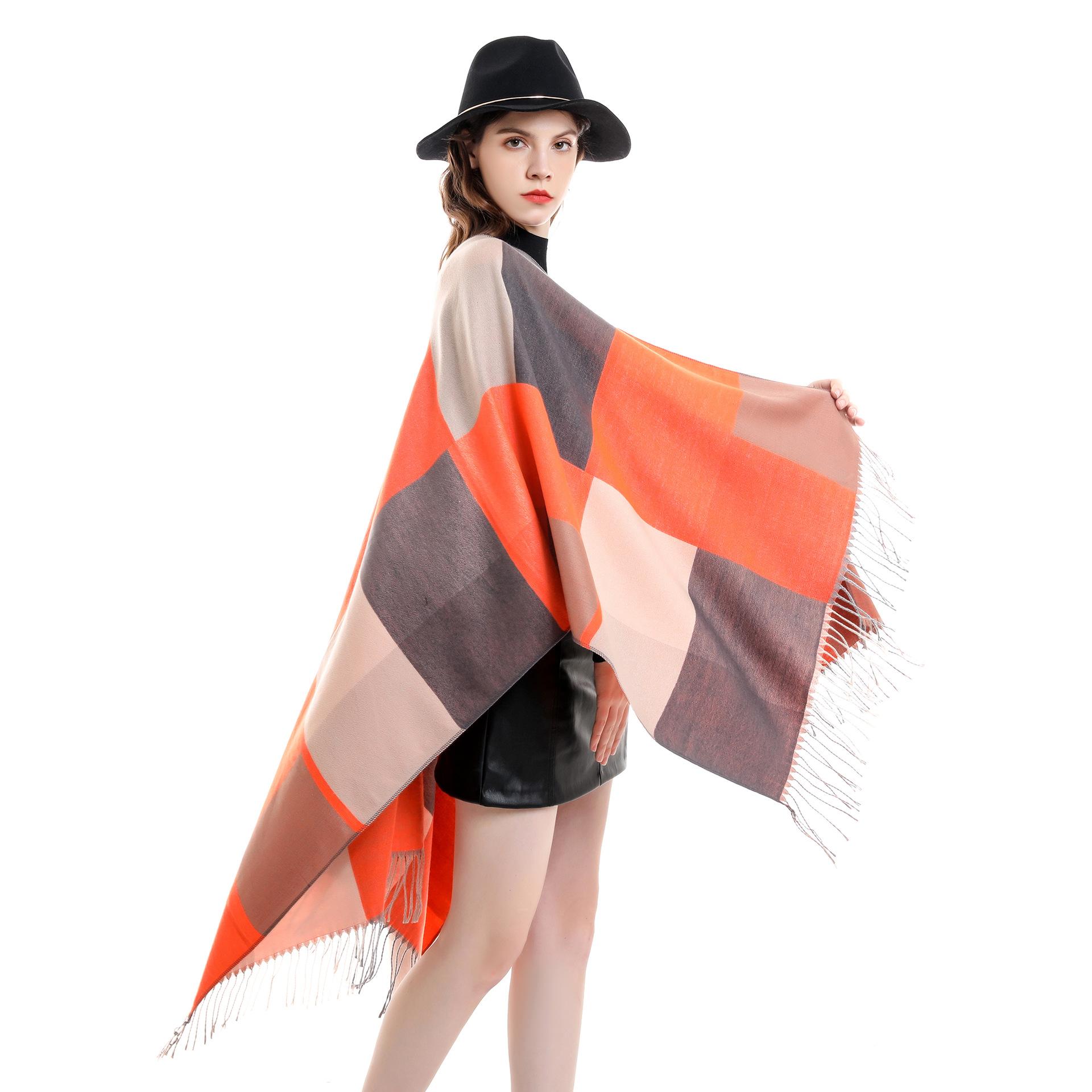 Nueva capa chal a cuadros amazónico transfronterizo con borlas cálidas divididas en otoño e invierno, estilo étnico, fotografía de viajes