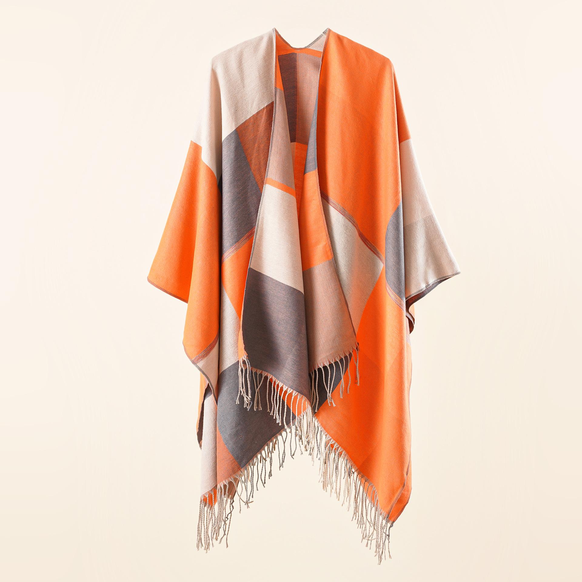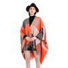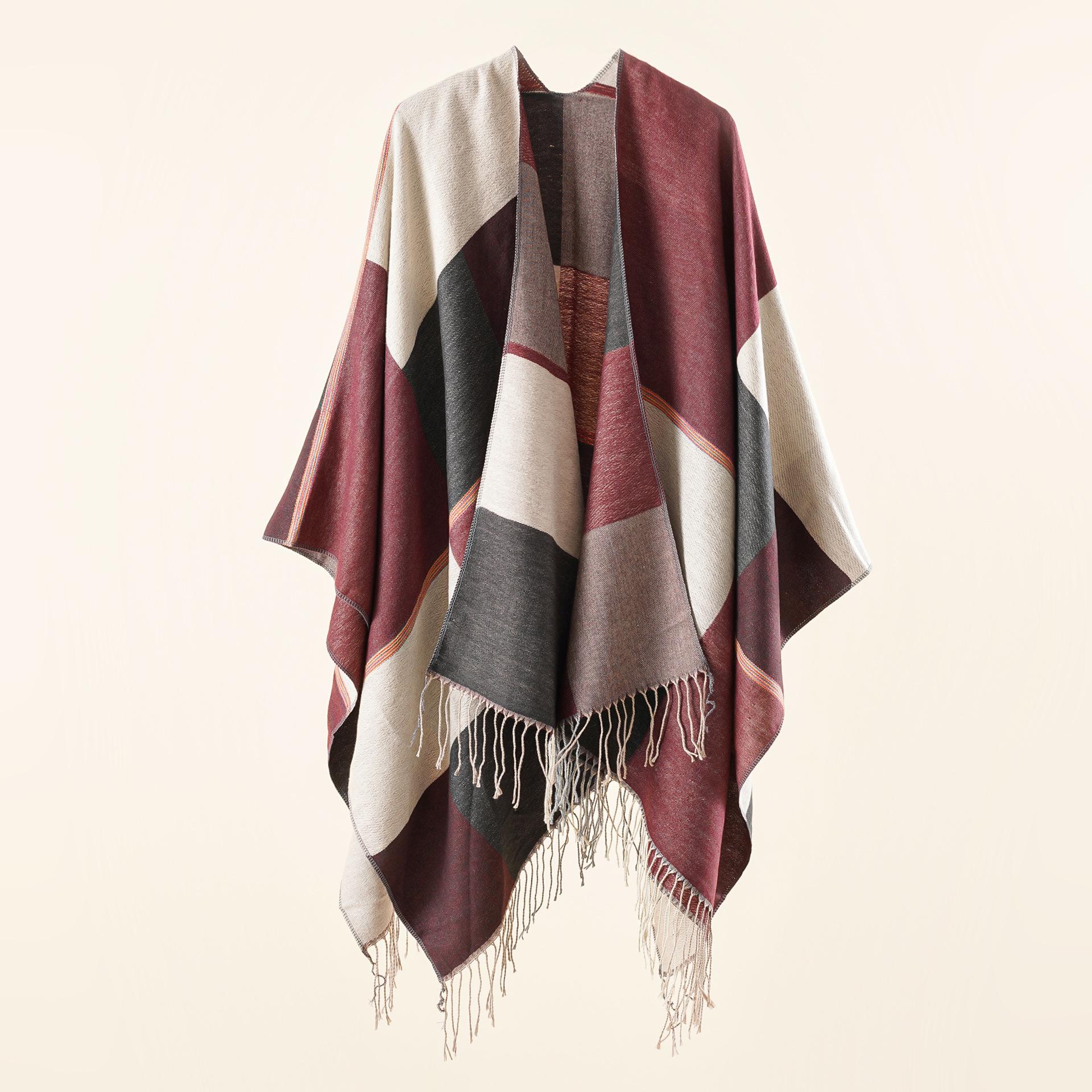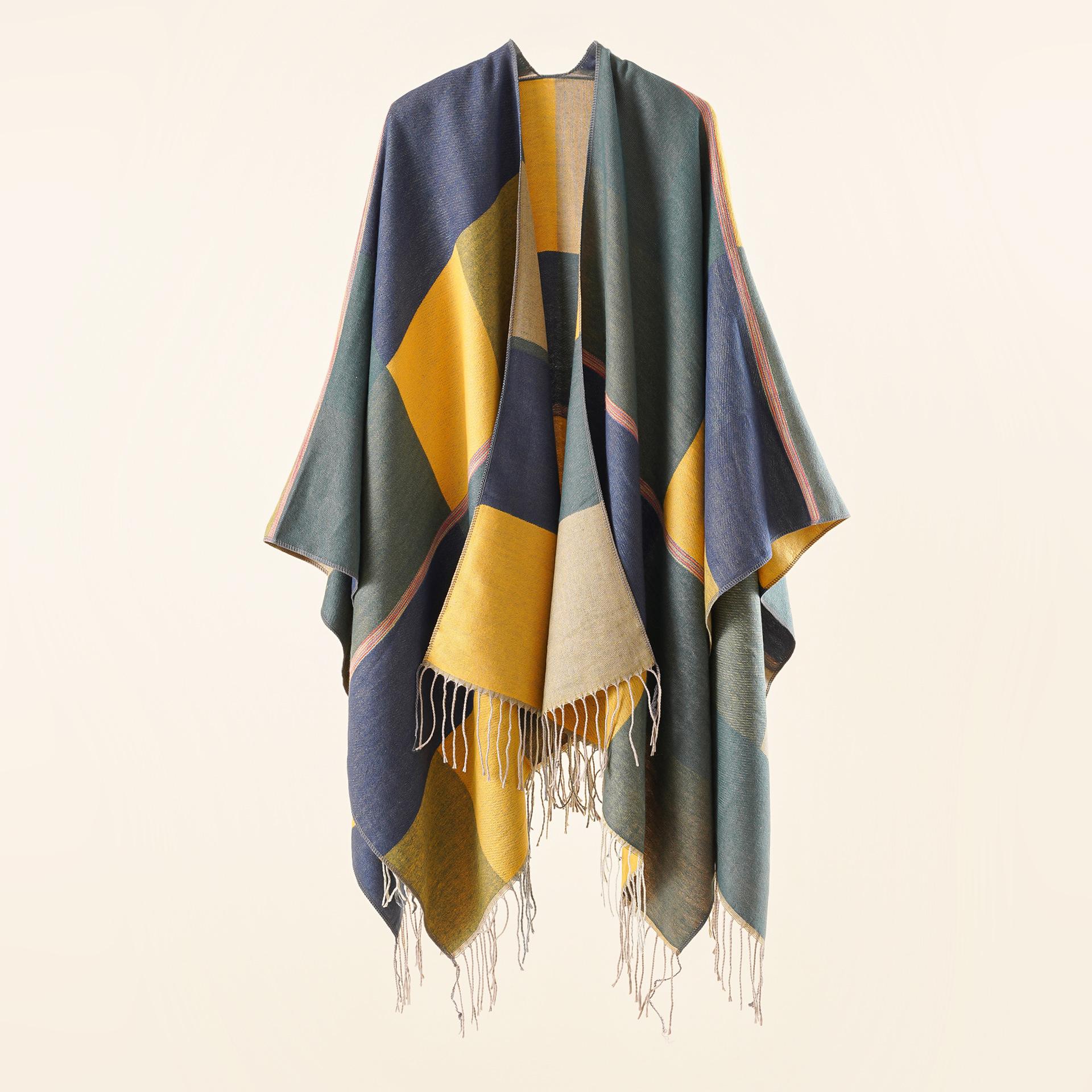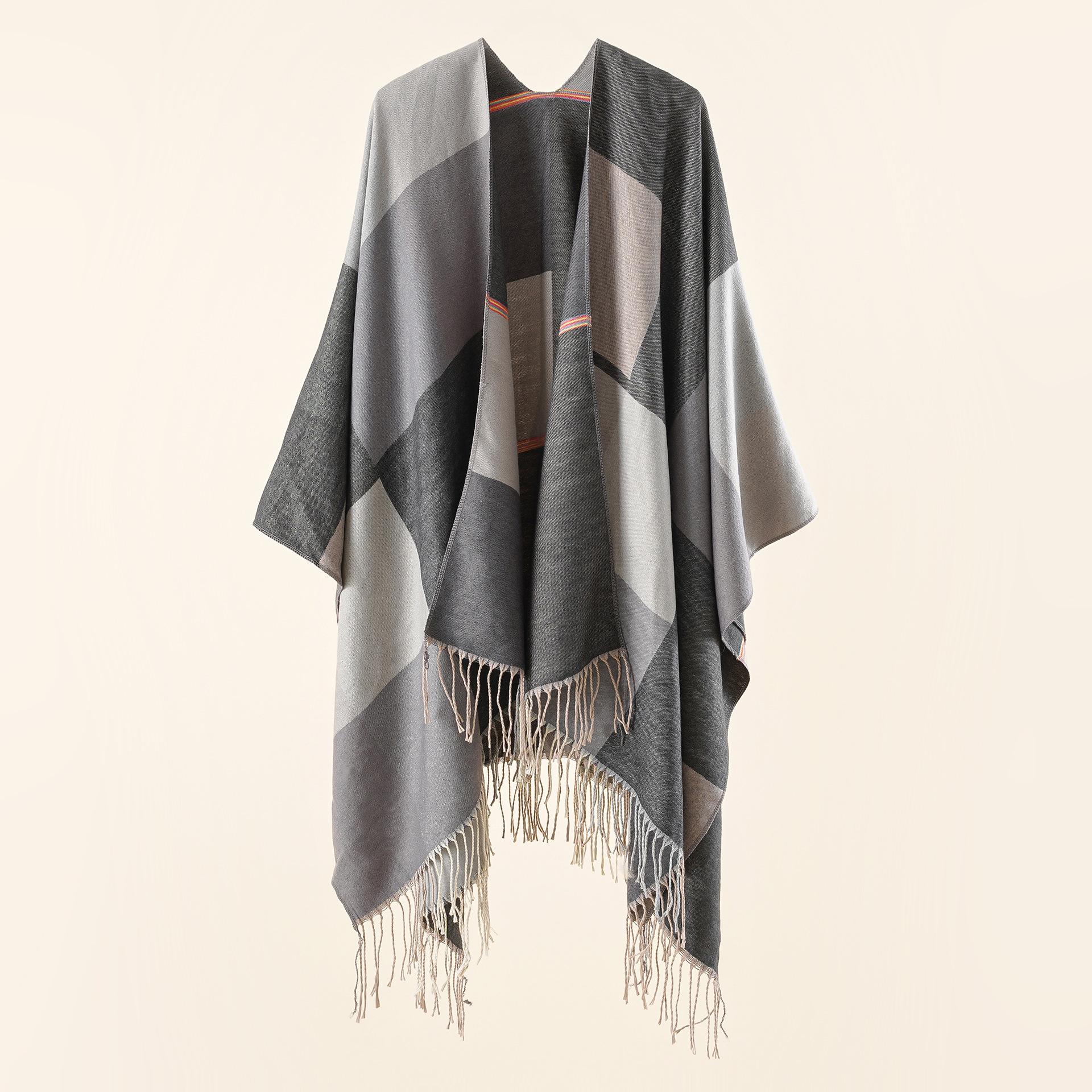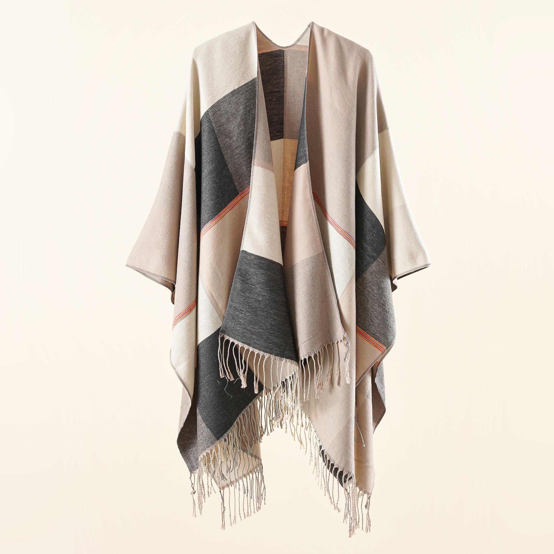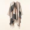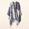 Capa exterior tipo chal a cuadros europeos y americanos con degradado de Amazon transfronterizo 2024, capa exterior cálida con borlas para otoño e invierno
