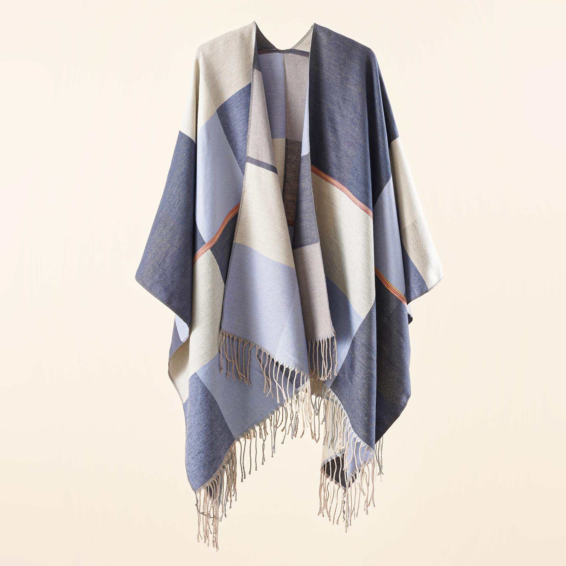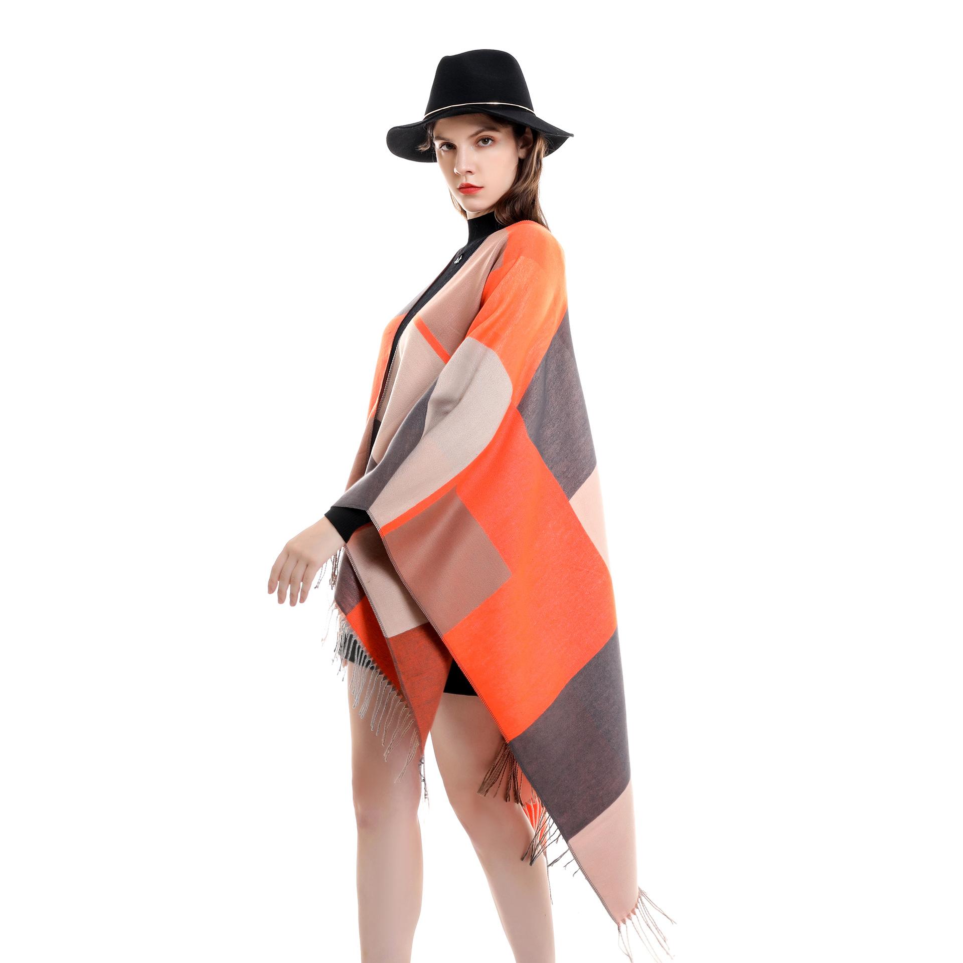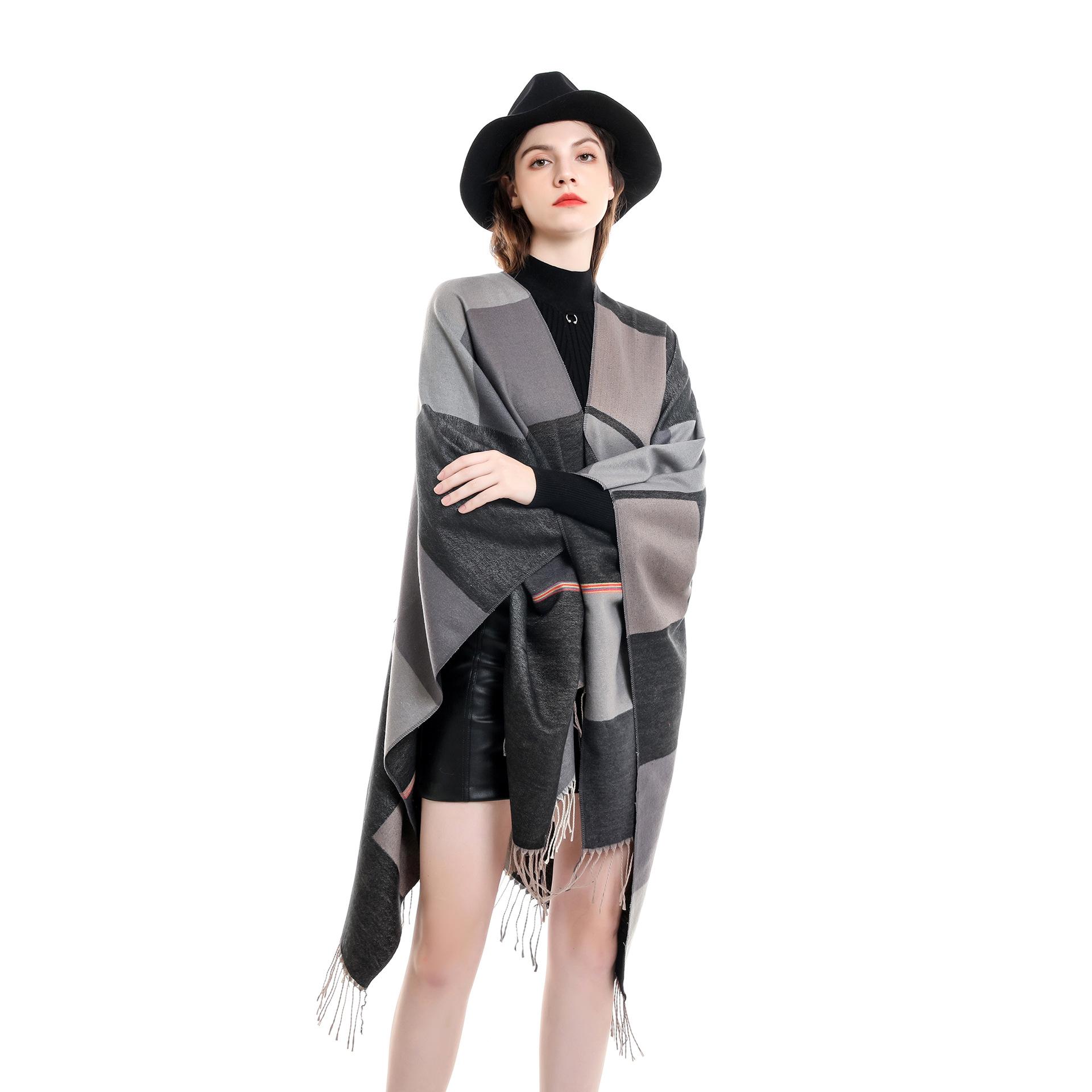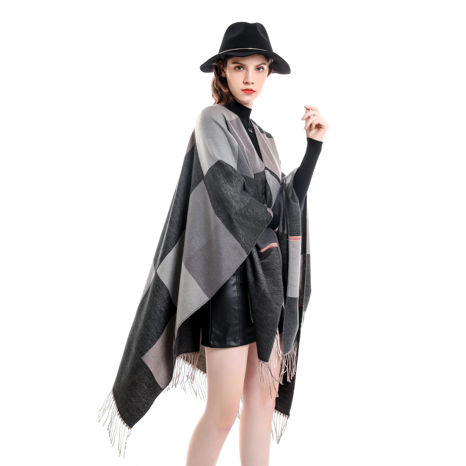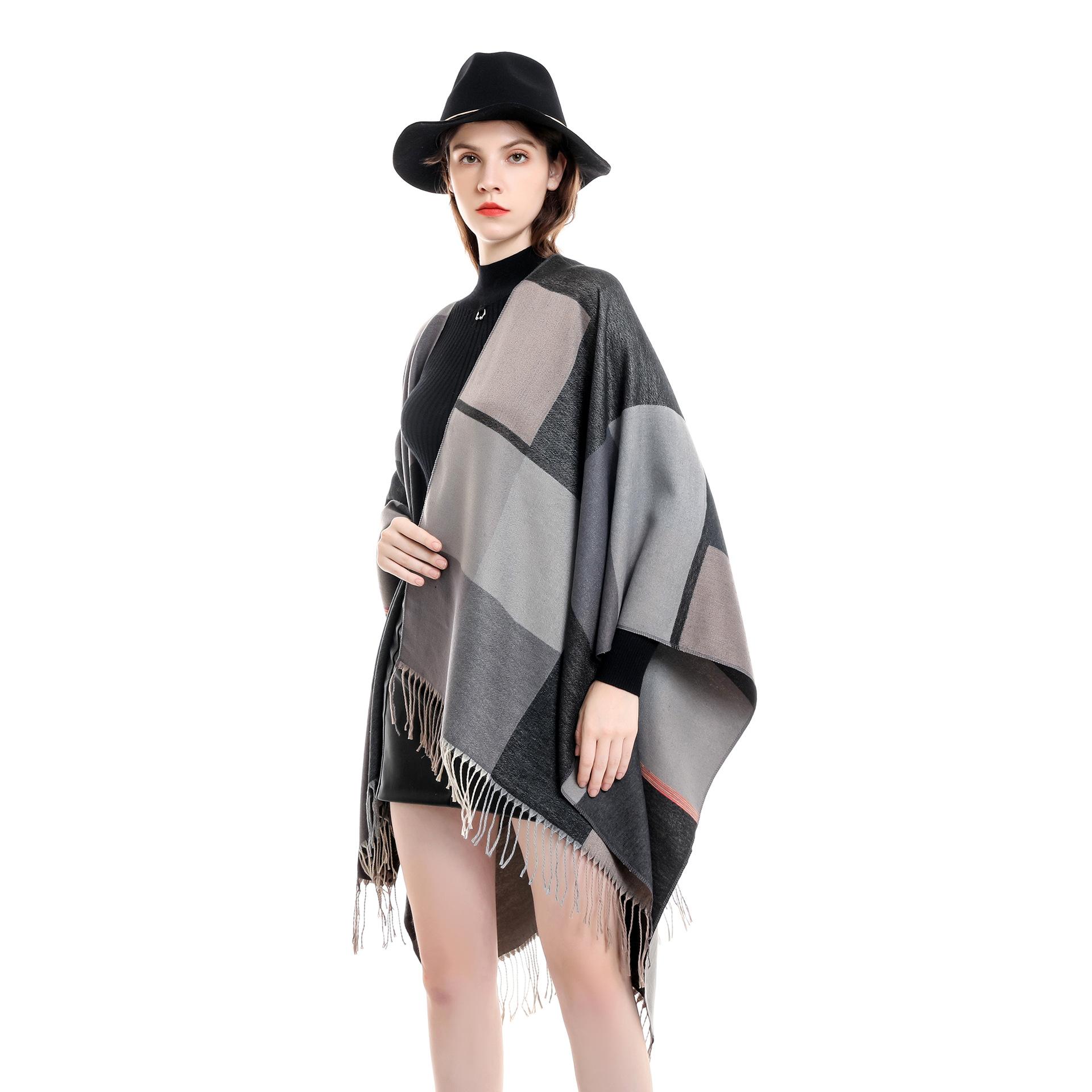 Nuevo estilo, chal de atmósfera sencilla para otoño e invierno, capa europea y americana de comercio exterior para damas, capa con borlas sueltas, informal, combinable con todo.