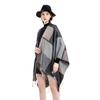 Capa de flecos a cuadros en blanco y negro con chal sencillo de comercio exterior transfronterizo, capa cálida de otoño e invierno, capa de calle europea y americana