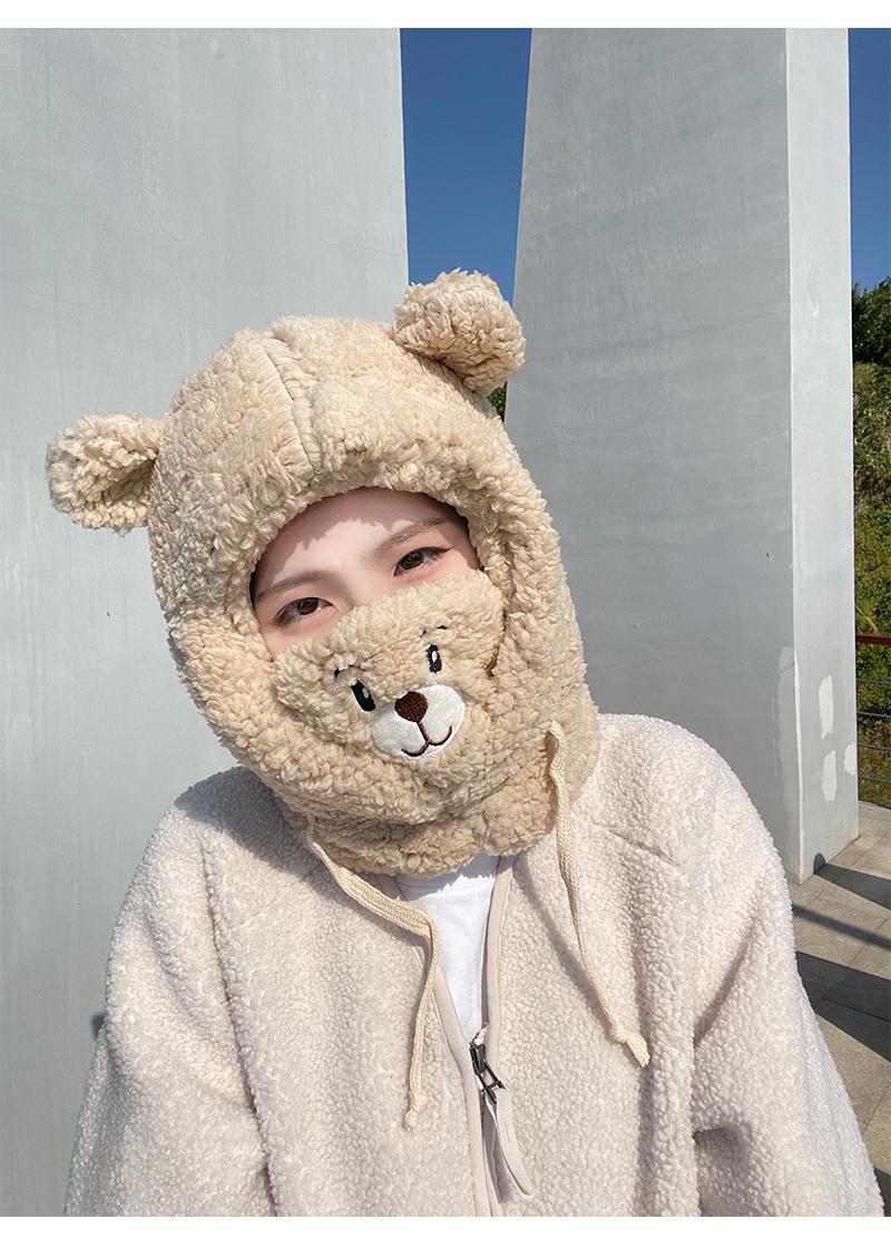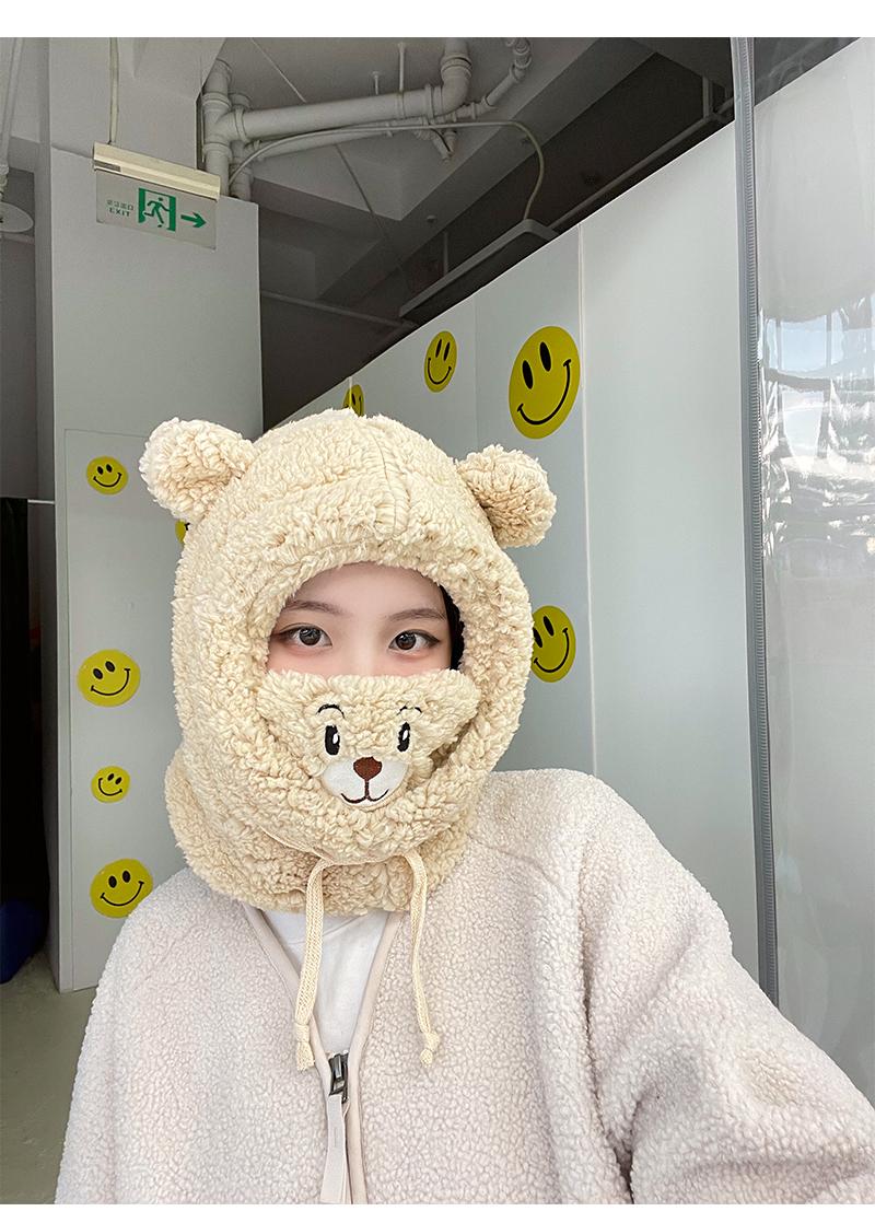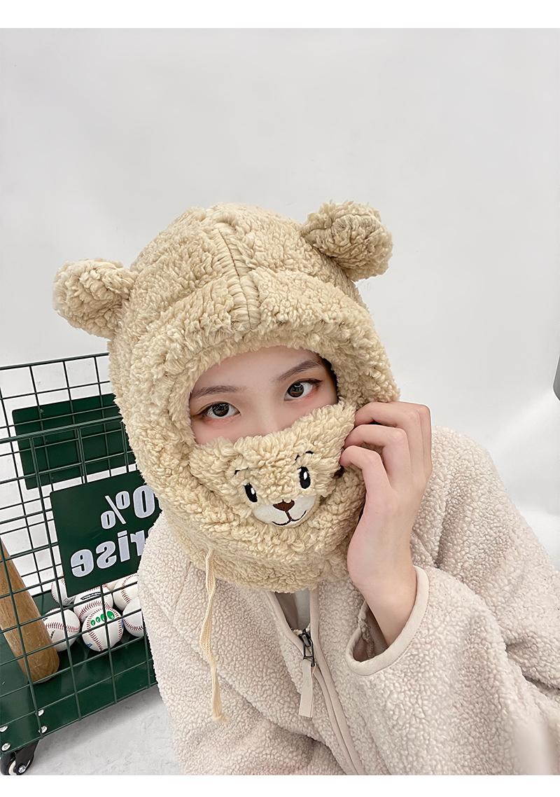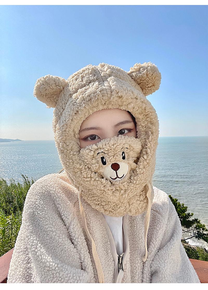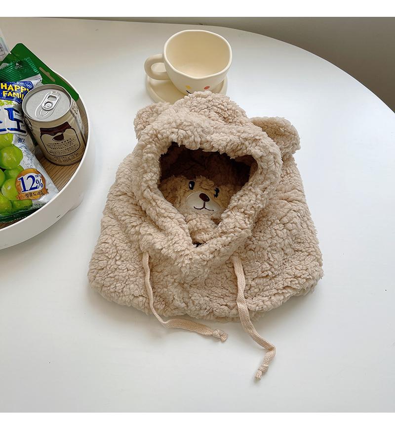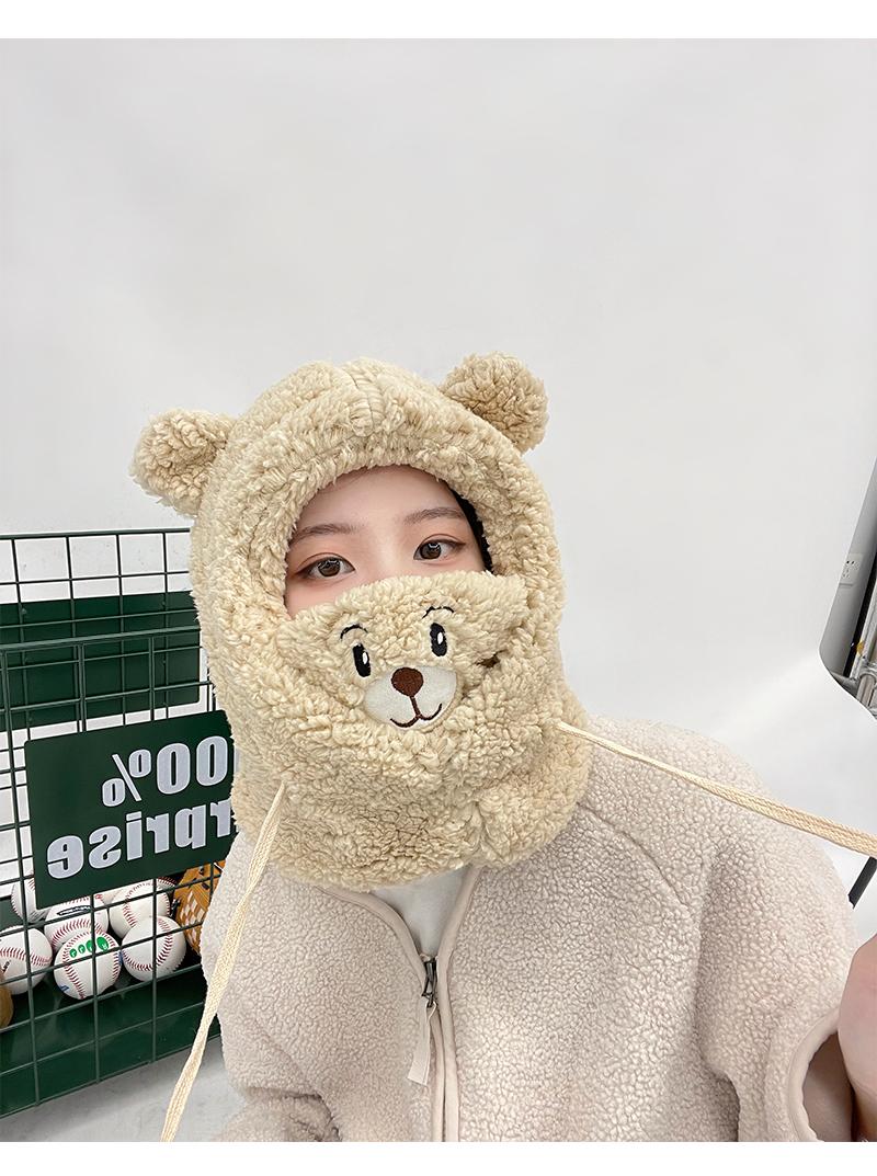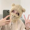 Gorro de oso bonito para niños, otoño e invierno, estilo coreano, para ciclismo, resistente al viento, cálido, con orejeras, bufanda, gorro de peluche Lei Feng de una pieza.