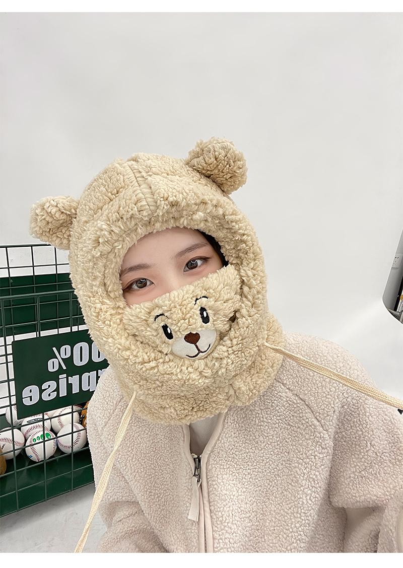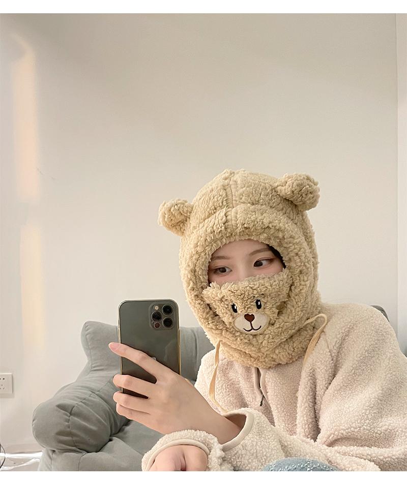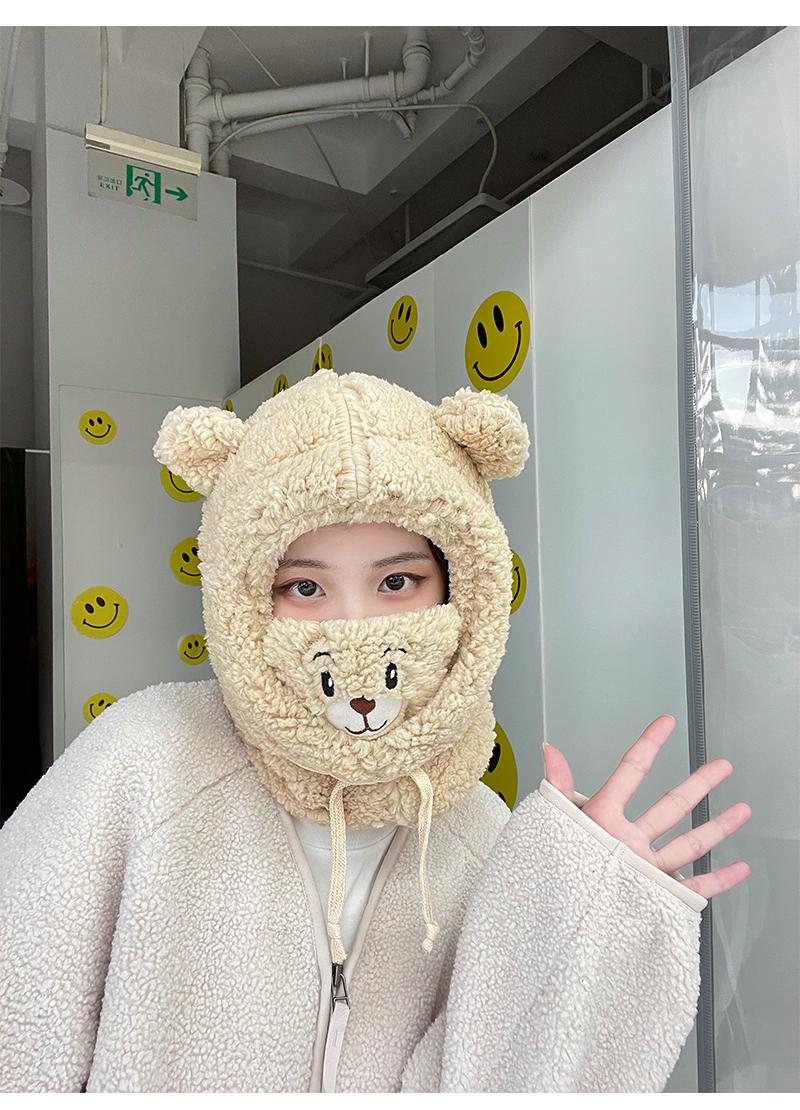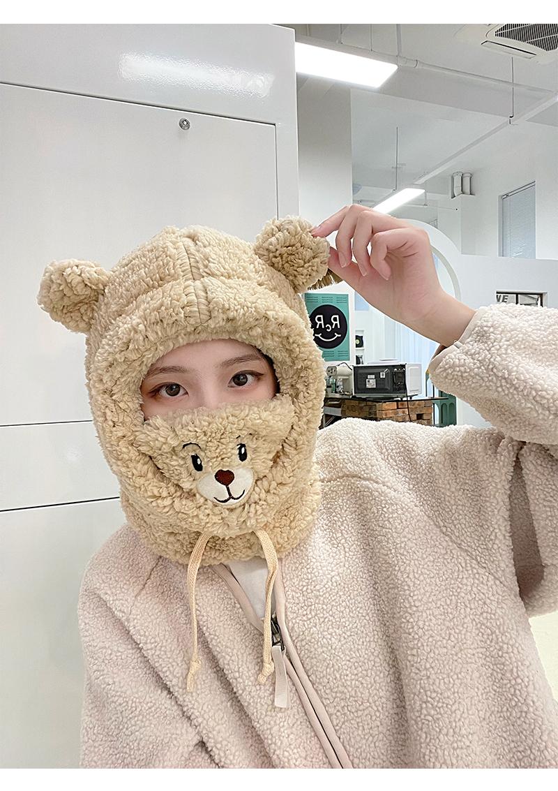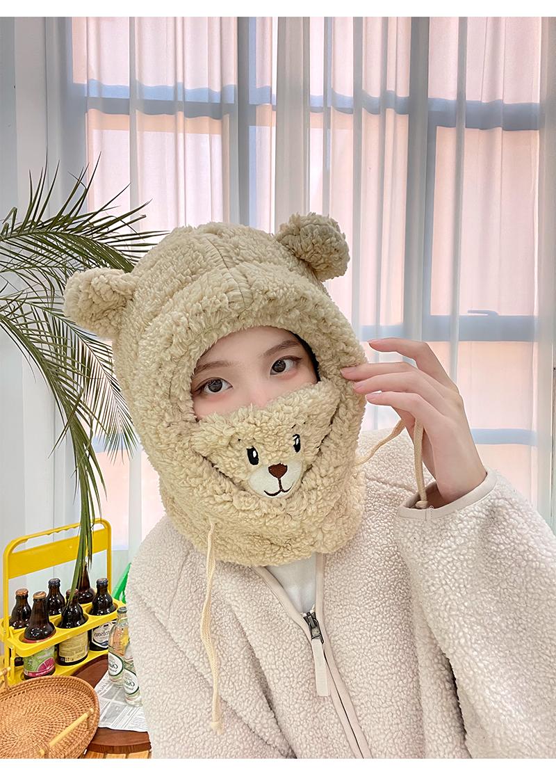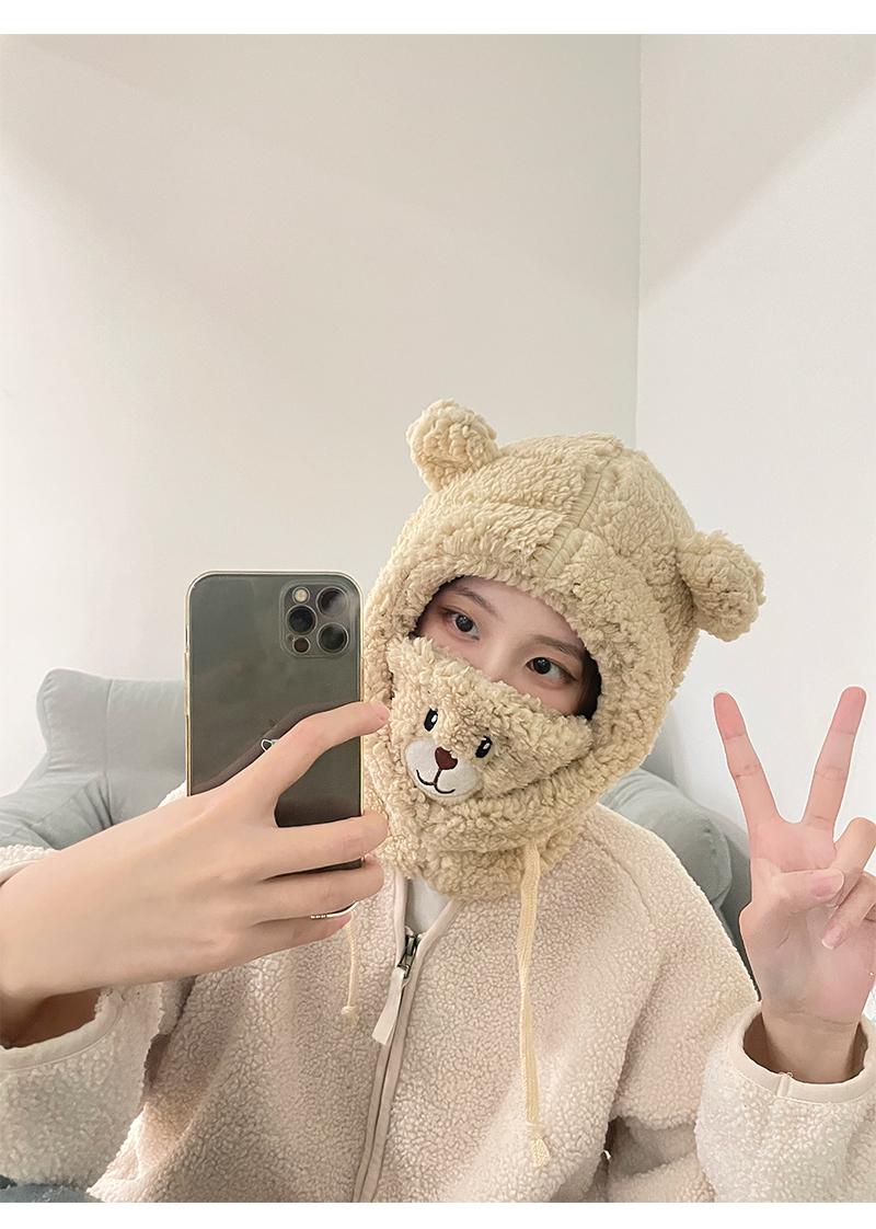 Gorro de oso bonito para niños, otoño e invierno, estilo coreano, para ciclismo, resistente al viento, cálido, con orejeras, bufanda, gorro de peluche Lei Feng de una pieza.