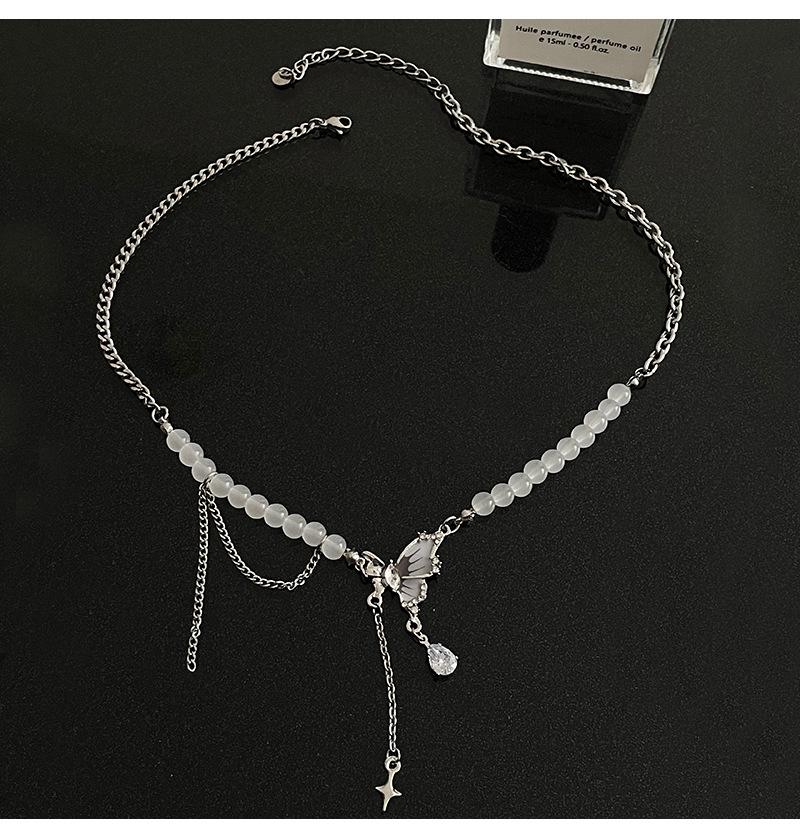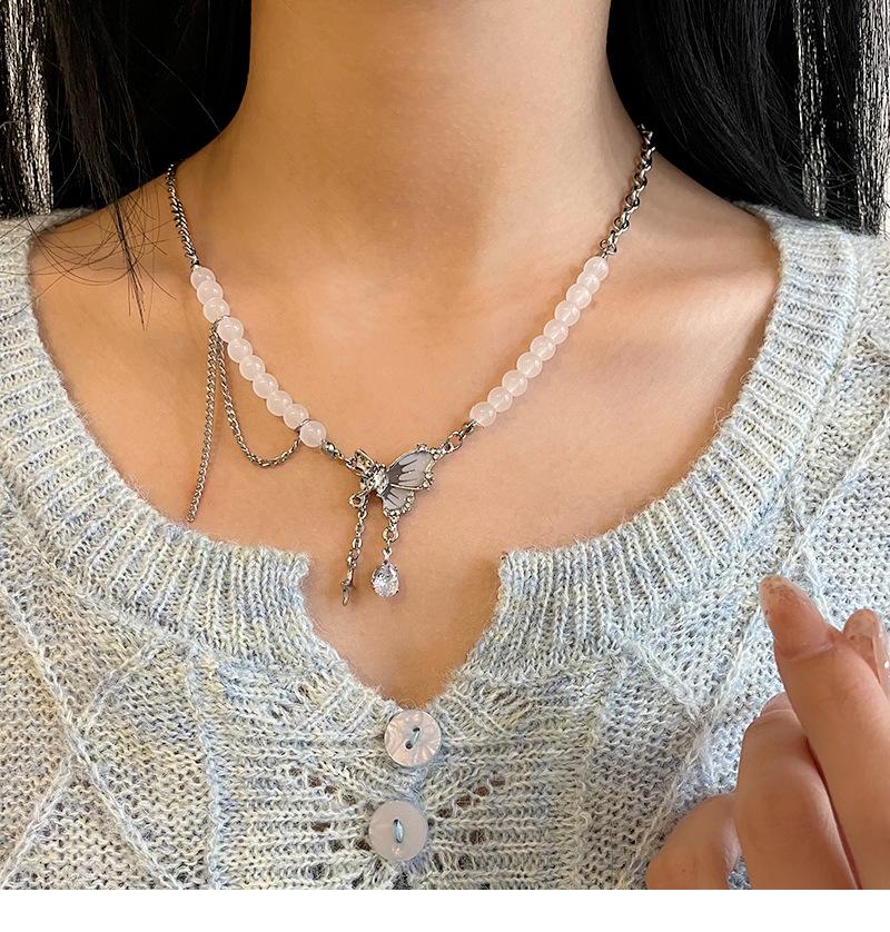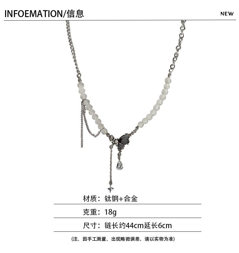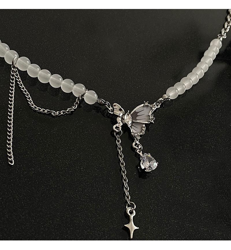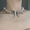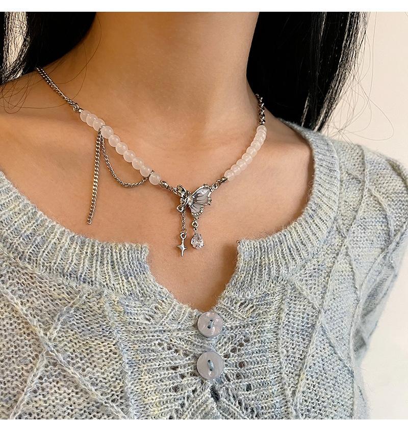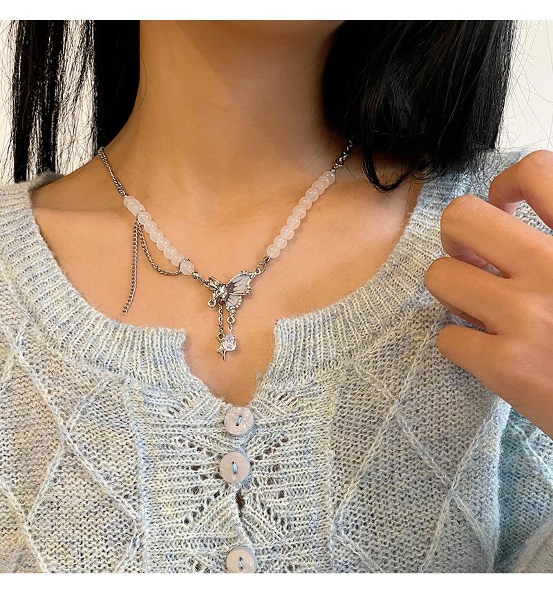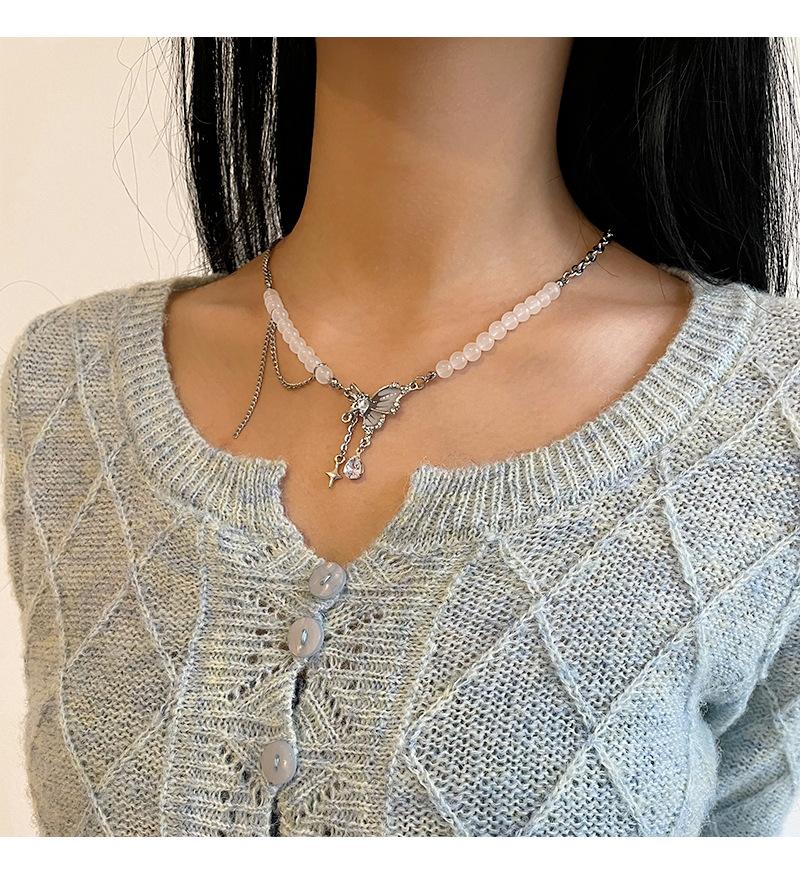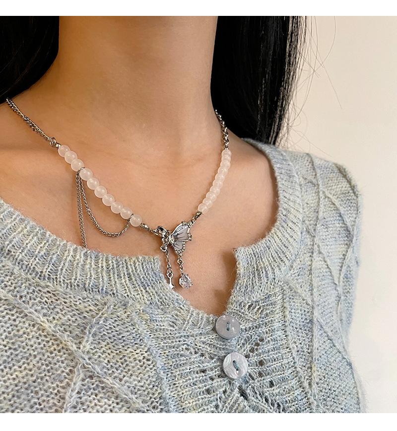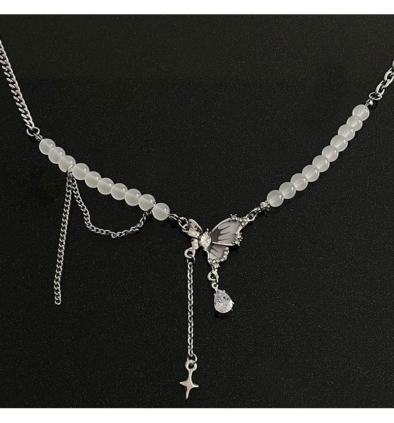 Collar con borlas y cuentas con costura de mariposa para mujer, estilo nicho, ligero, de lujo, estilo Y2K, para chicas atractivas, dulce y genial, joyería a juego, cadena de clavícula de alta calidad.