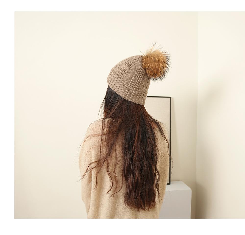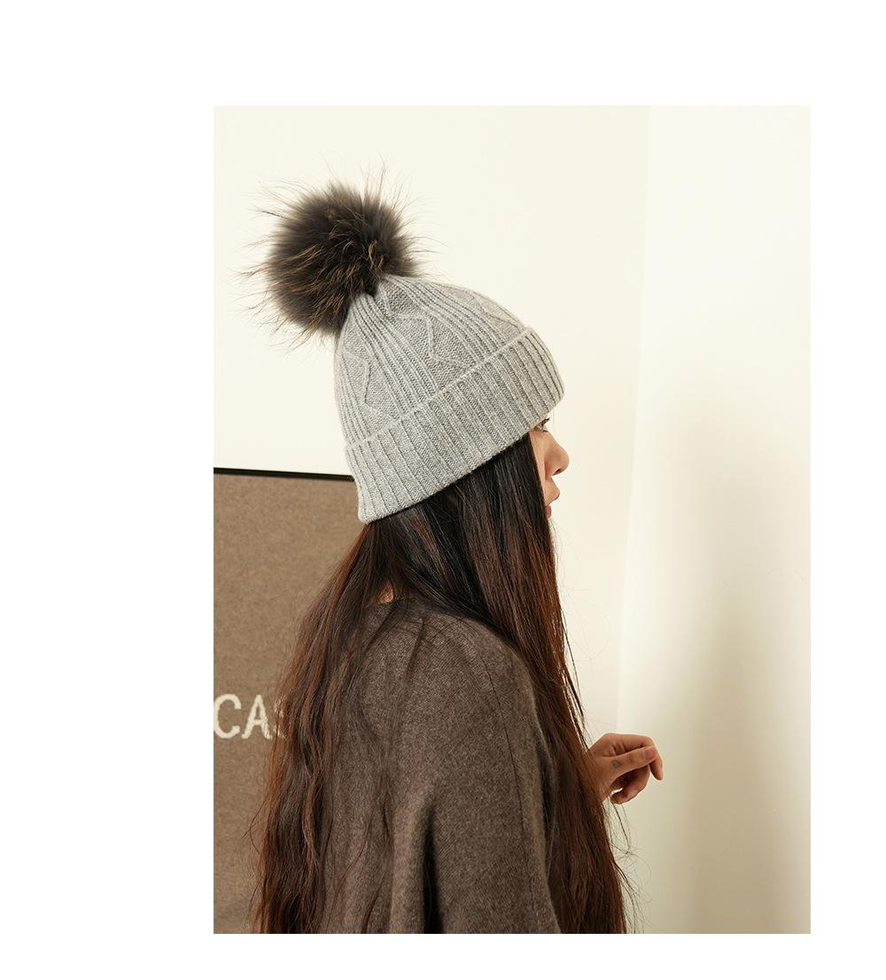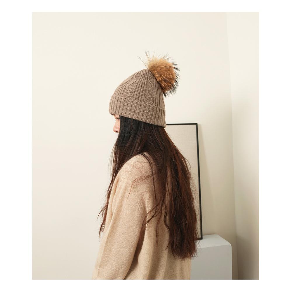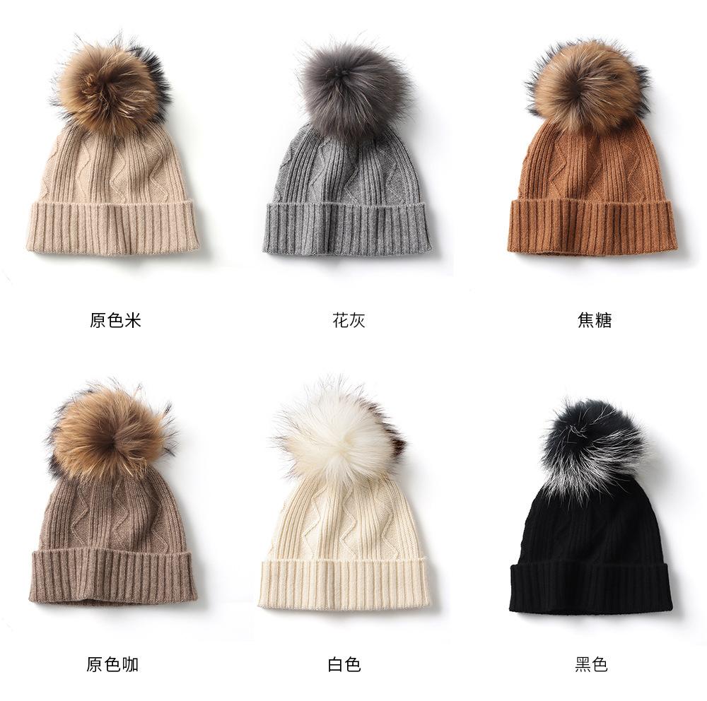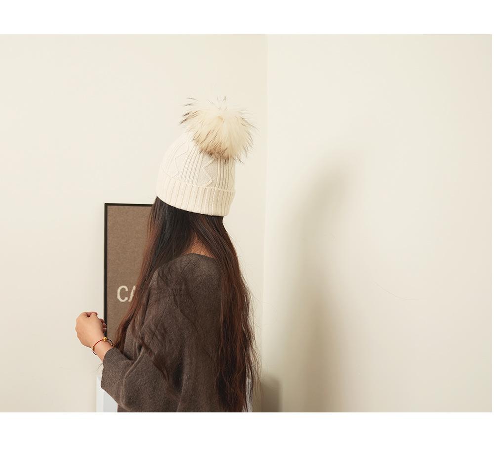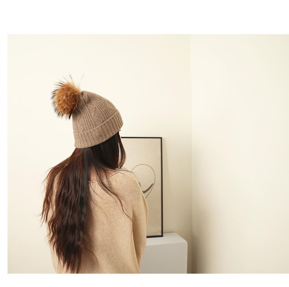 Nuevo gorro de lana con bola de pelo de cachemira pura, cálido y transpirable, para mujer, otoño e invierno.