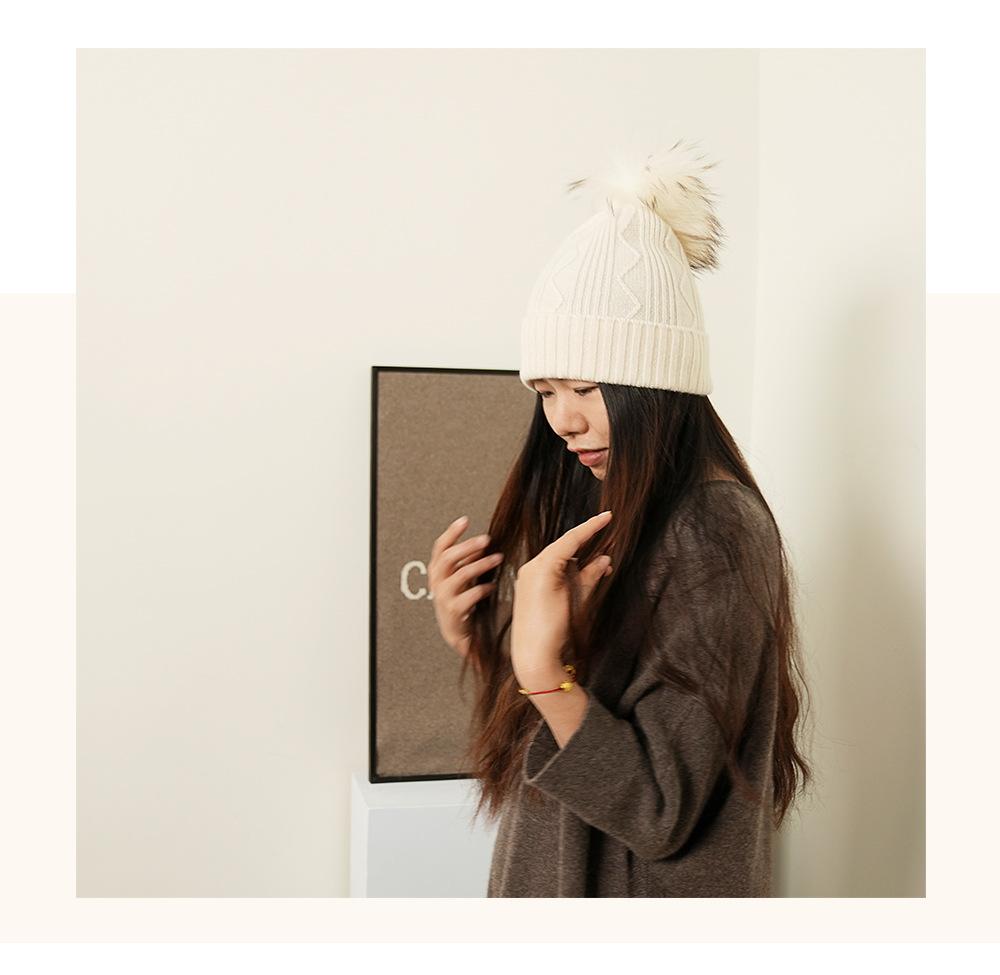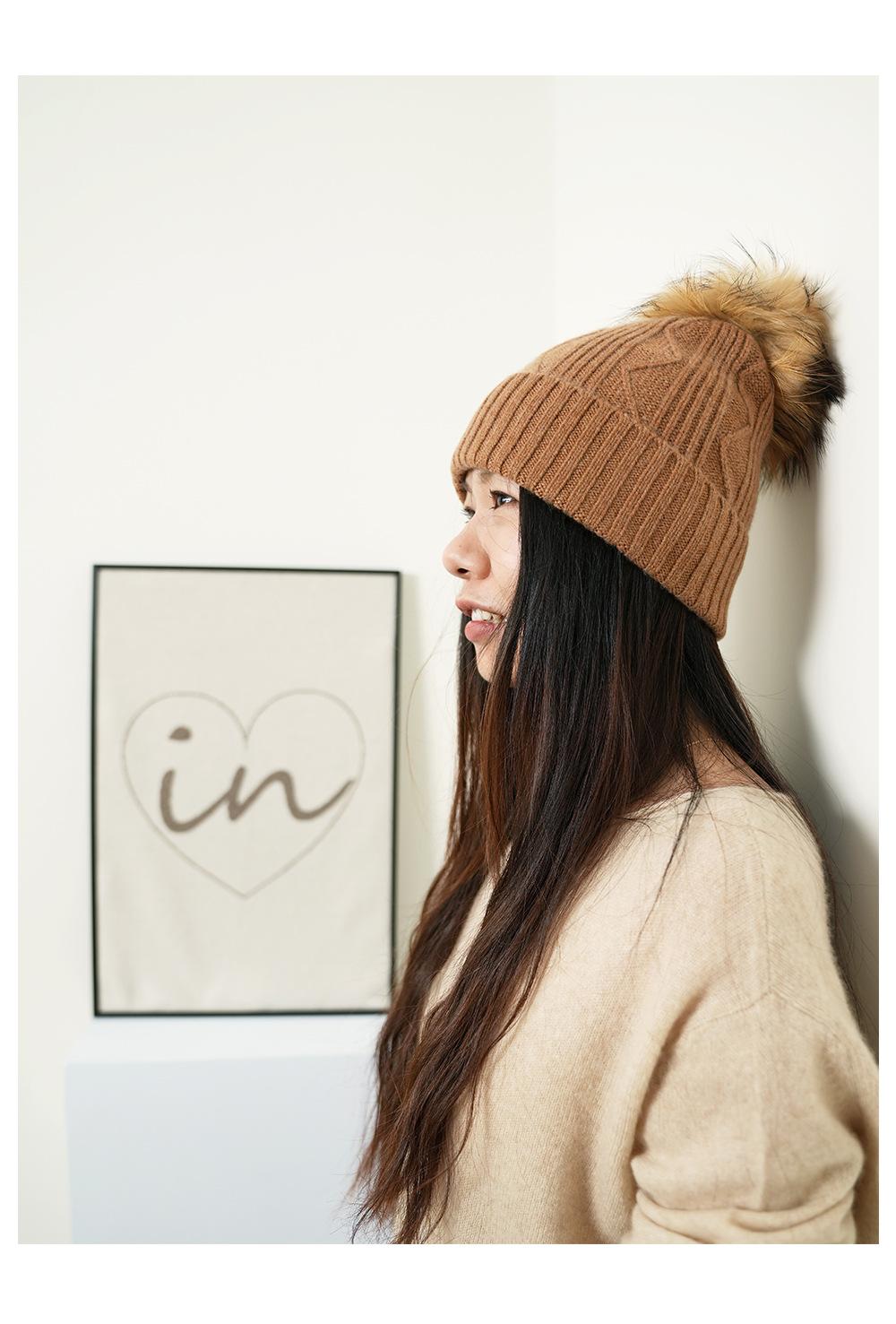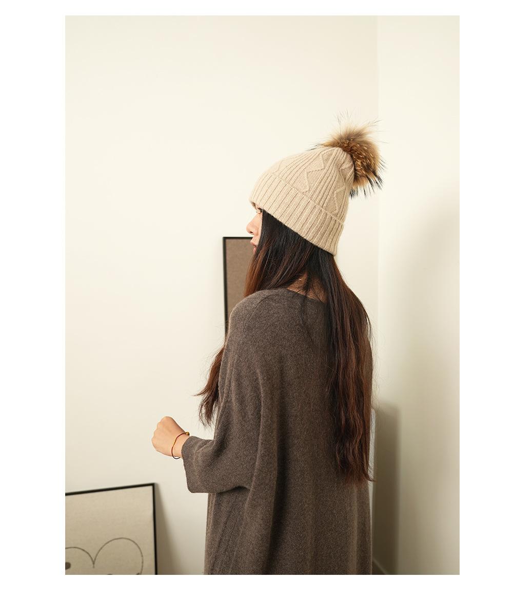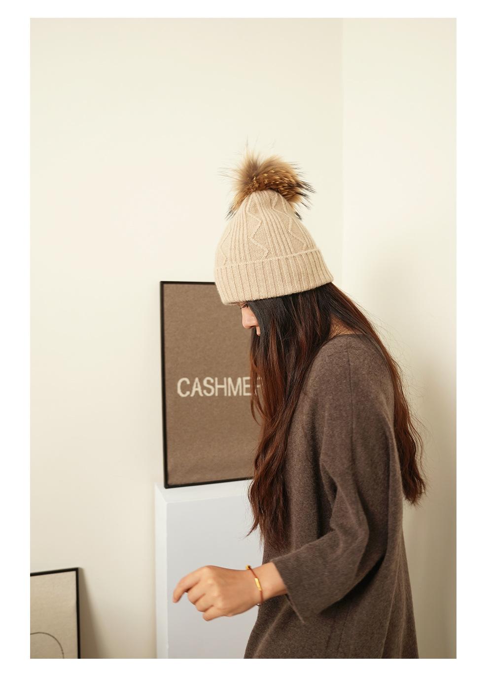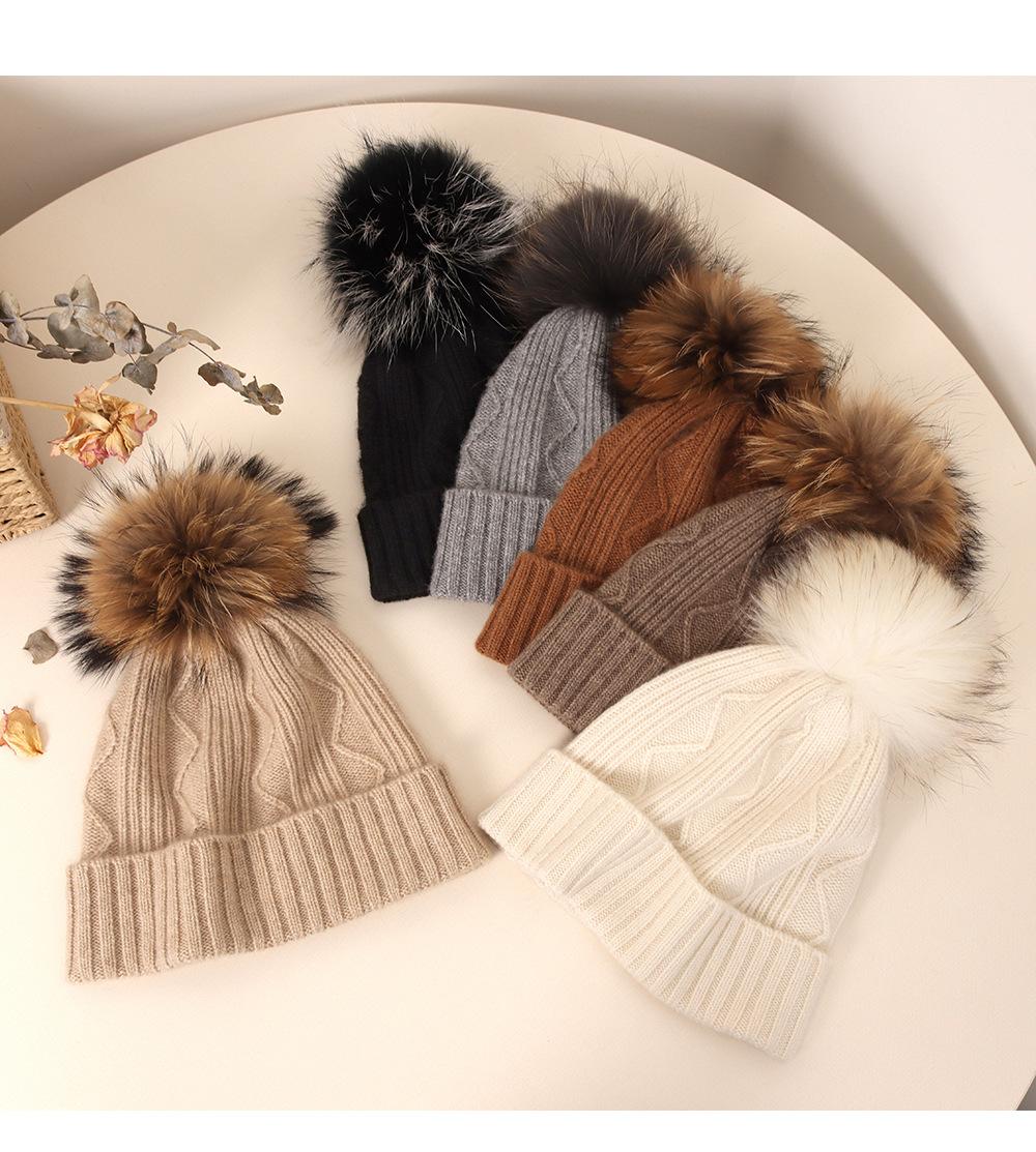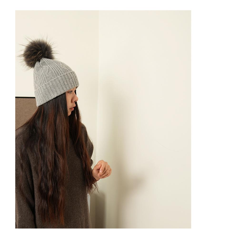 Nuevo gorro de lana con bola de pelo de cachemira pura, cálido y transpirable, para mujer, otoño e invierno.