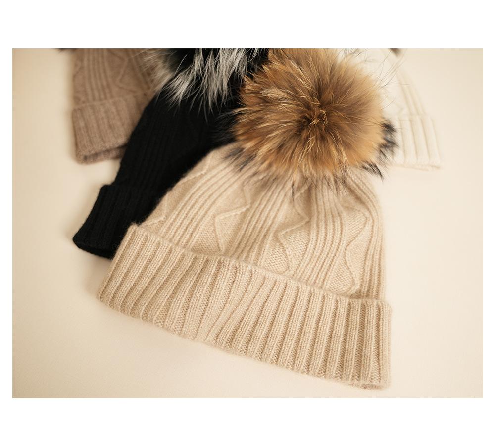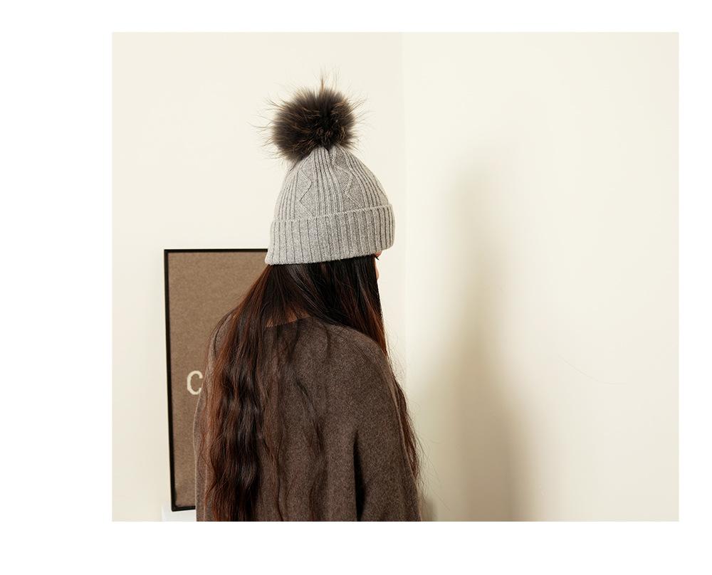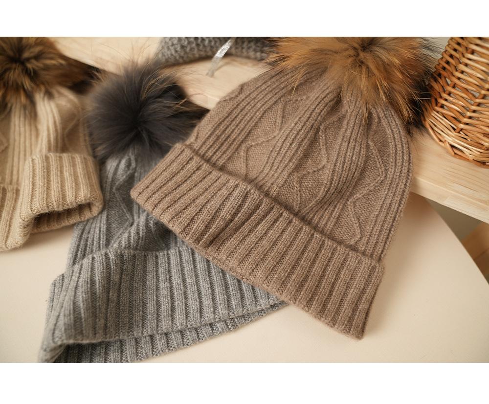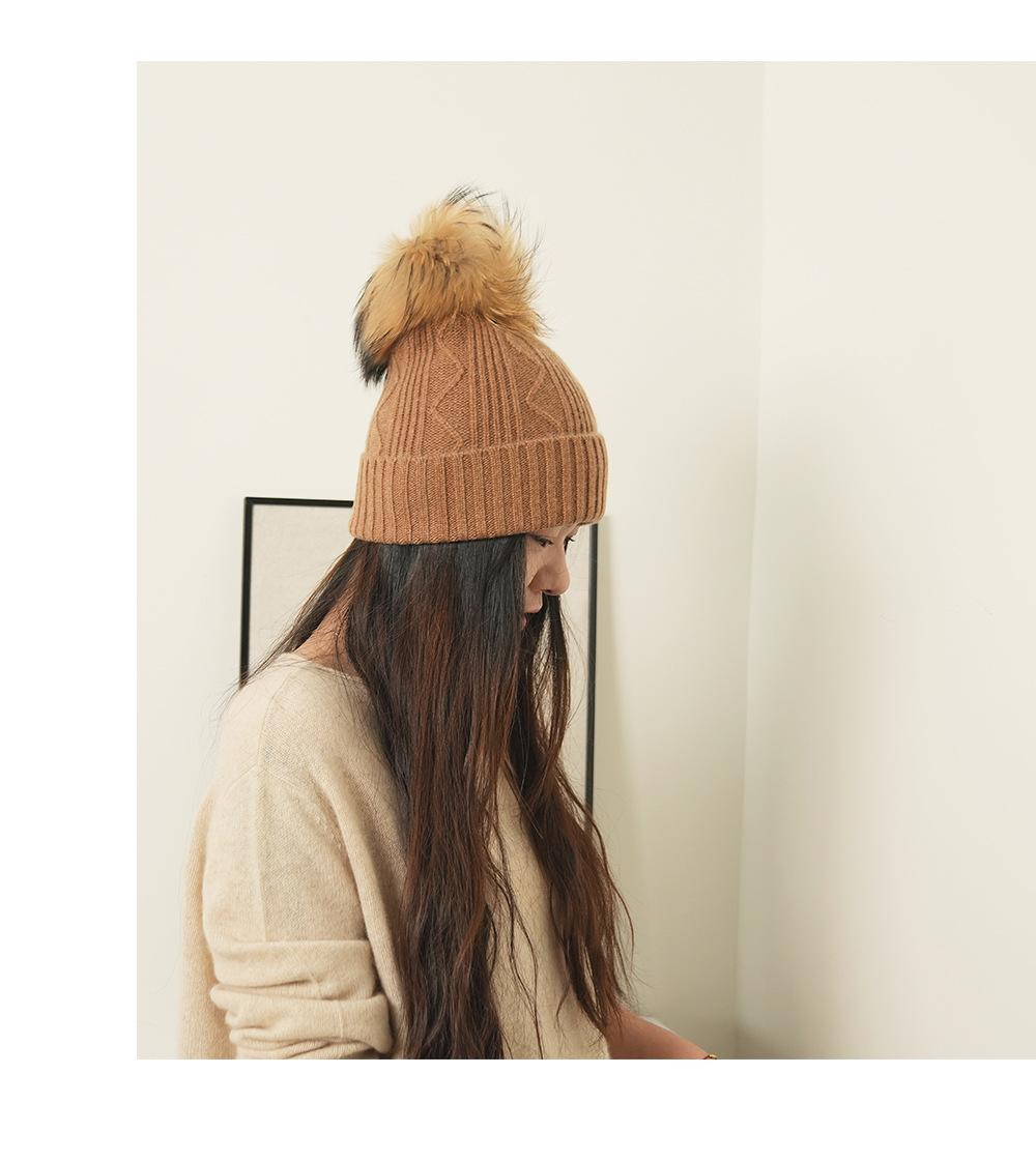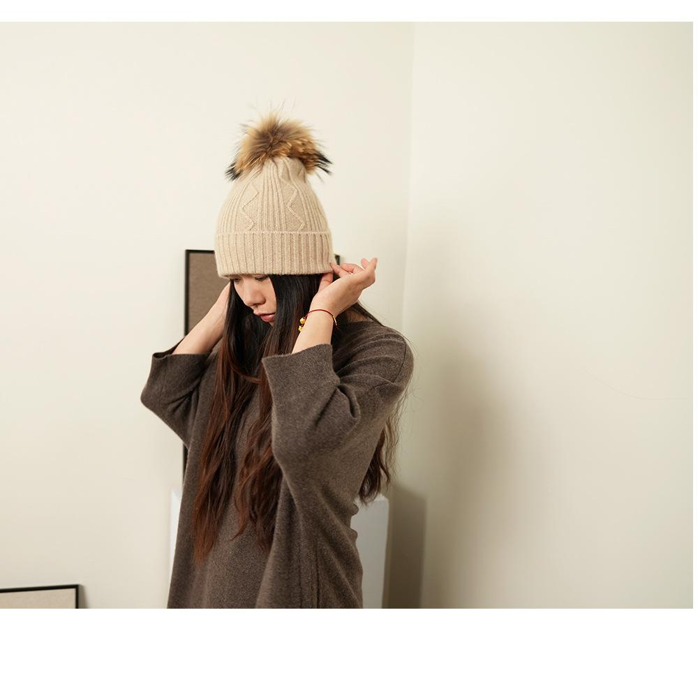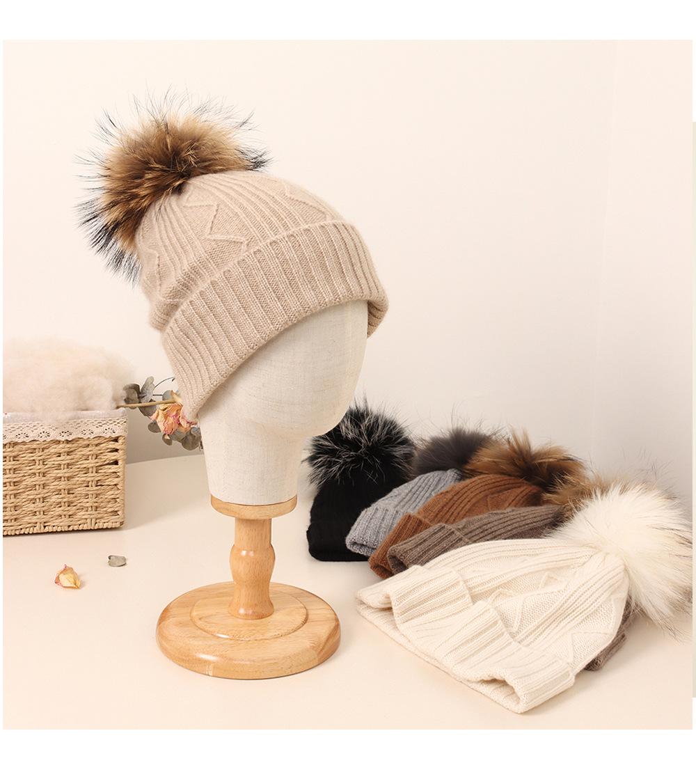 Nuevo gorro de lana con bola de pelo de cachemira pura, cálido y transpirable, para mujer, otoño e invierno.