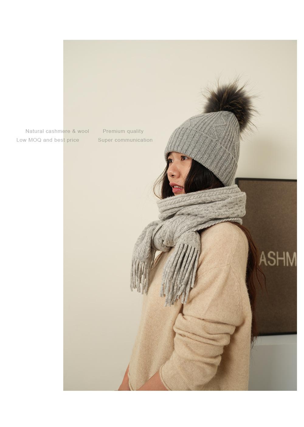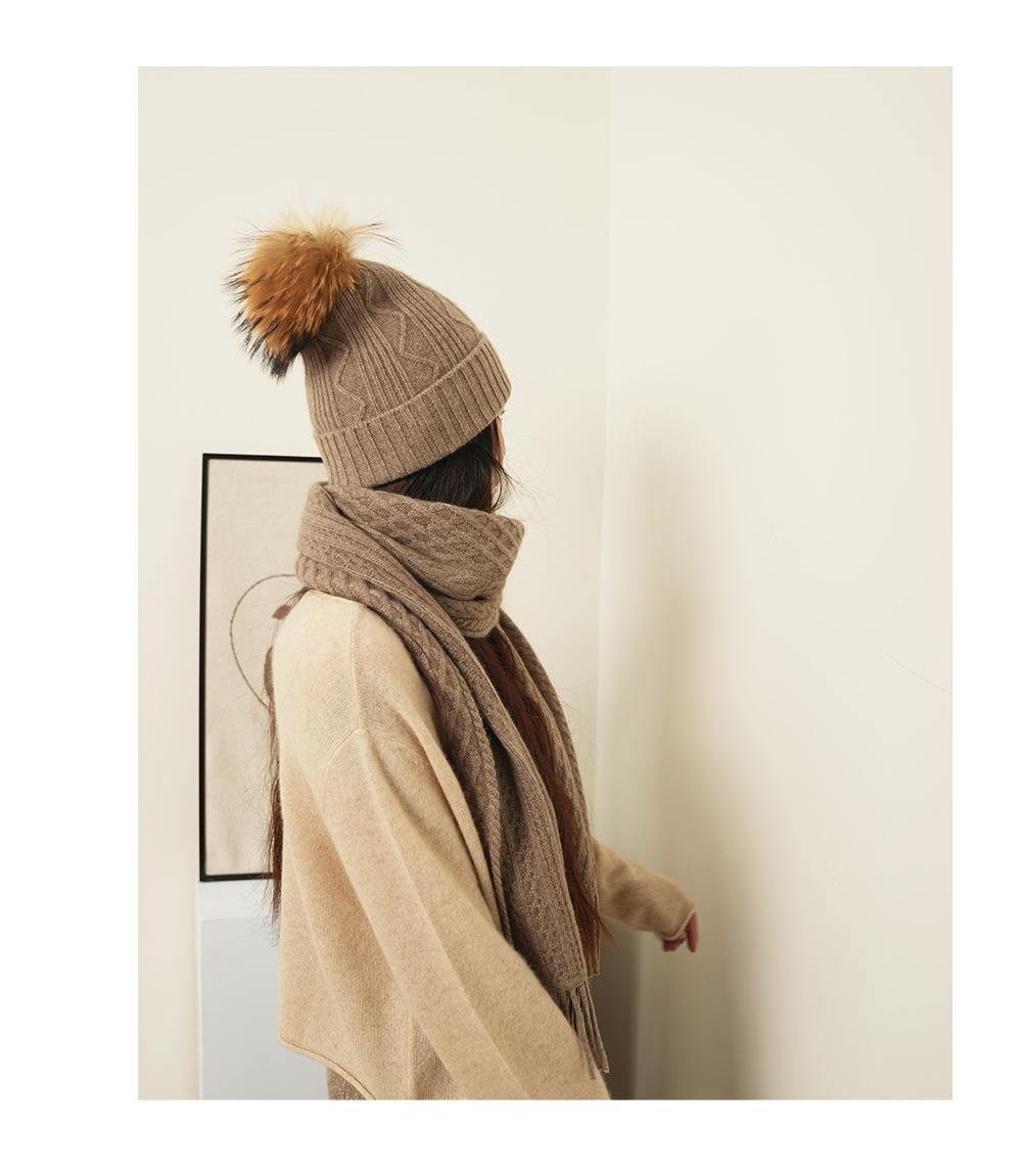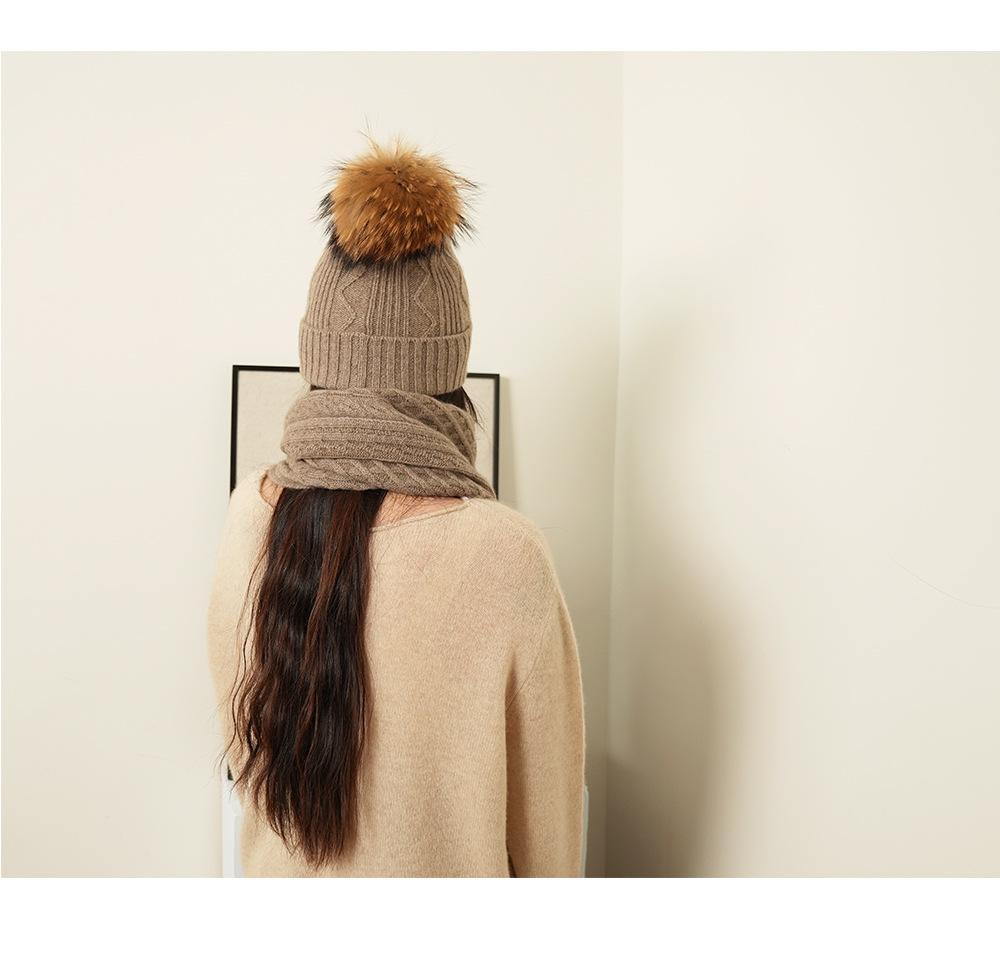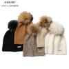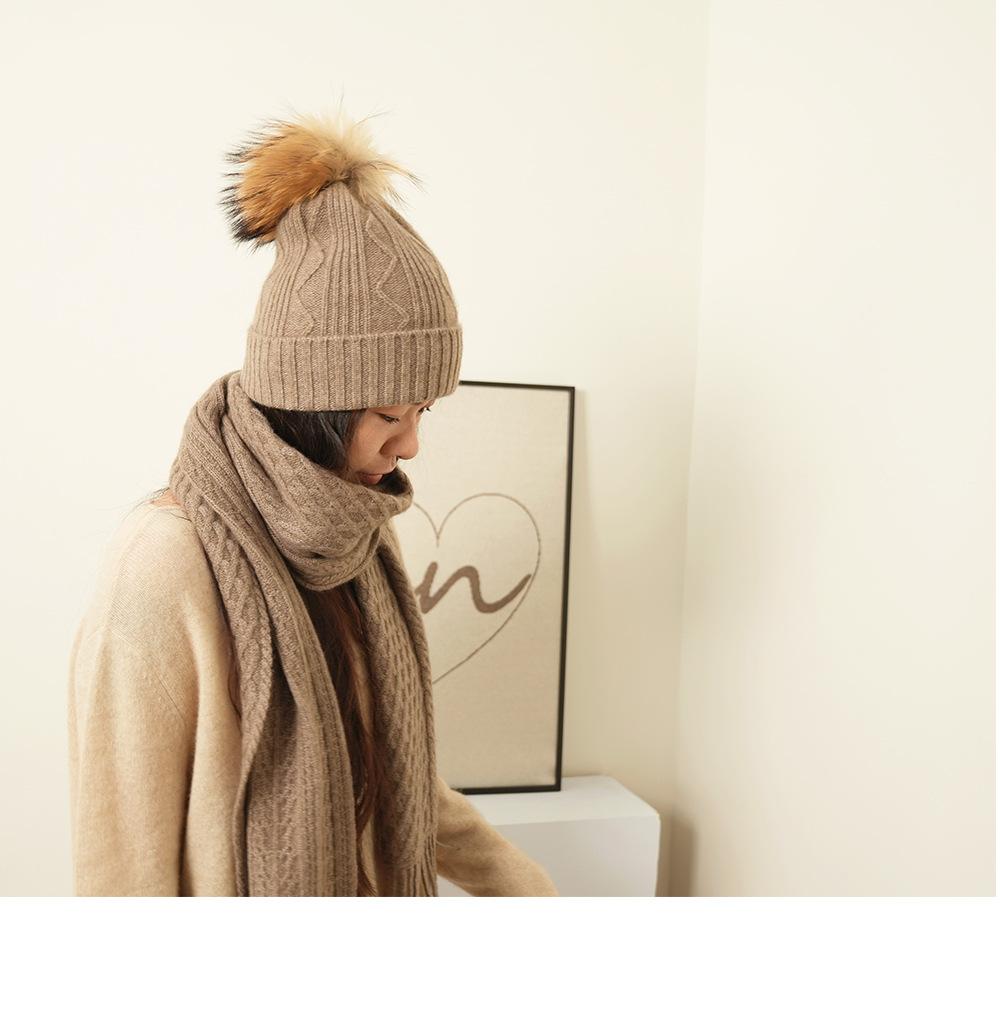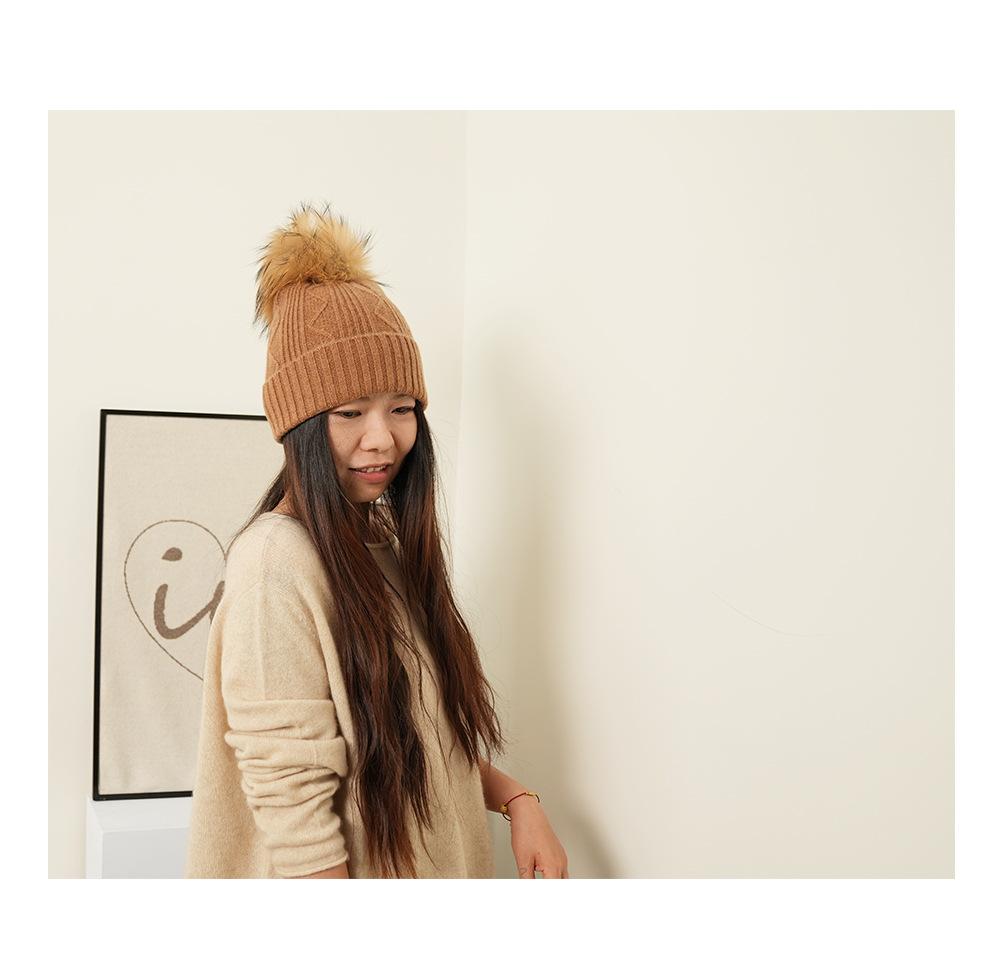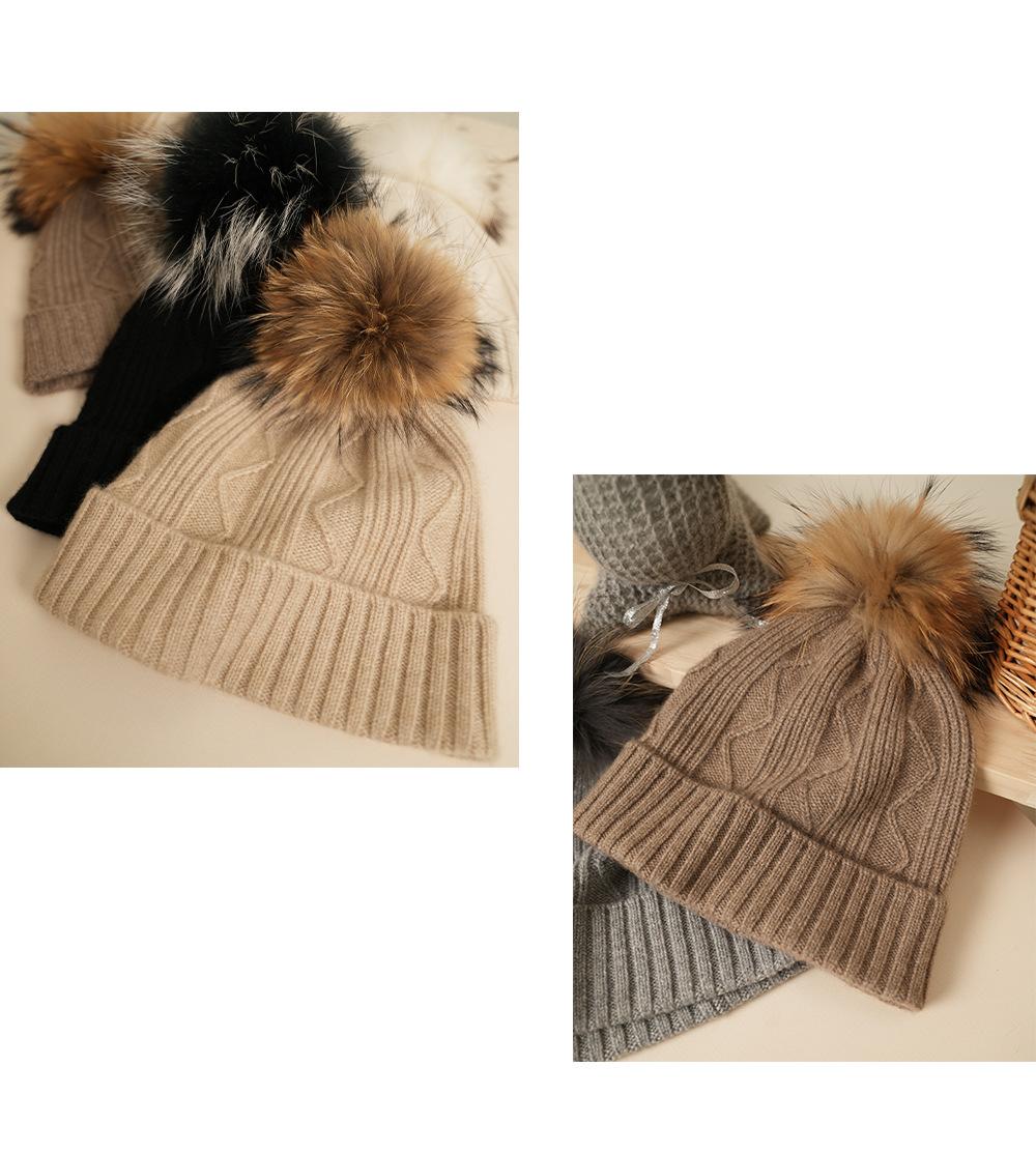 Nuevo gorro de lana con bola de pelo de cachemira pura, cálido y transpirable, para mujer, otoño e invierno.