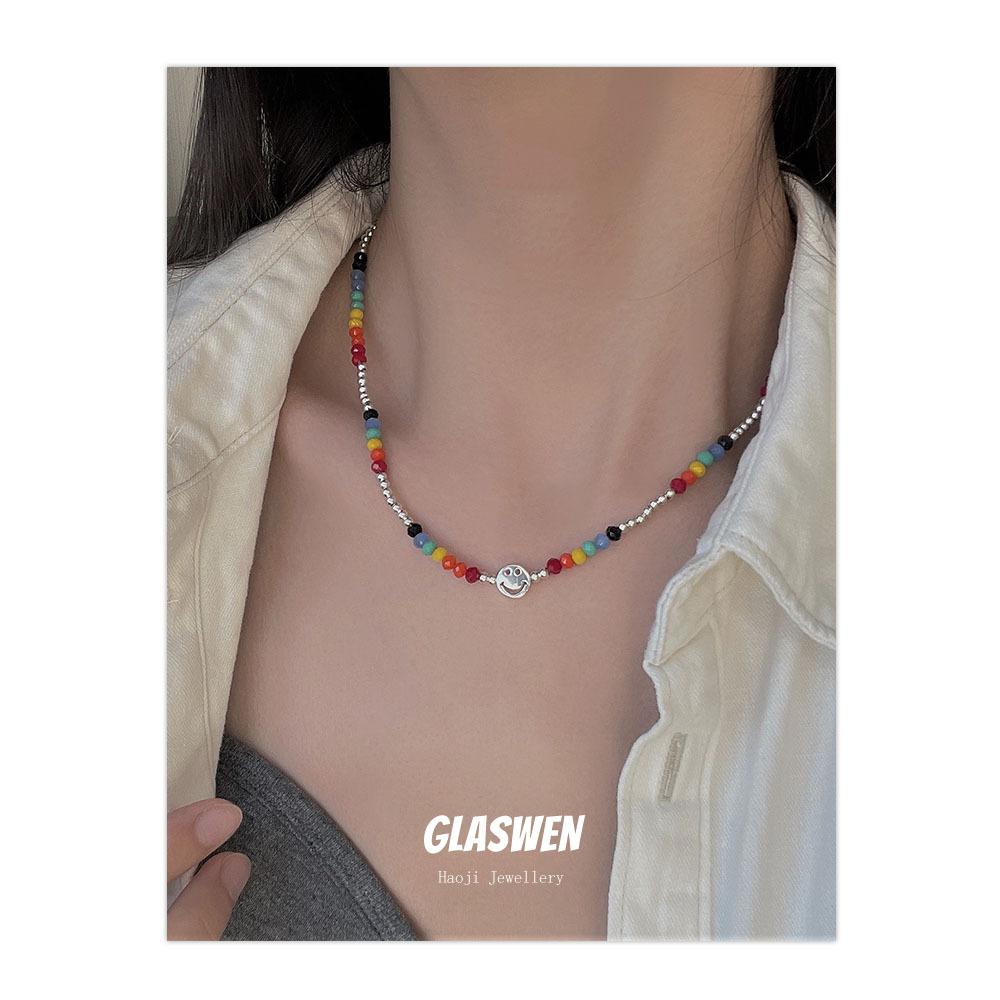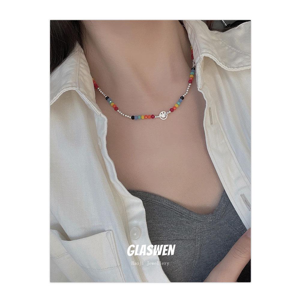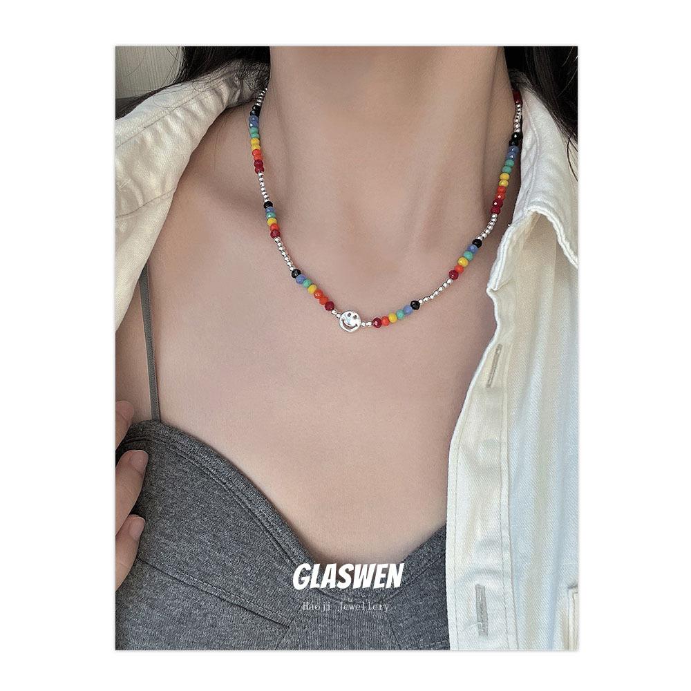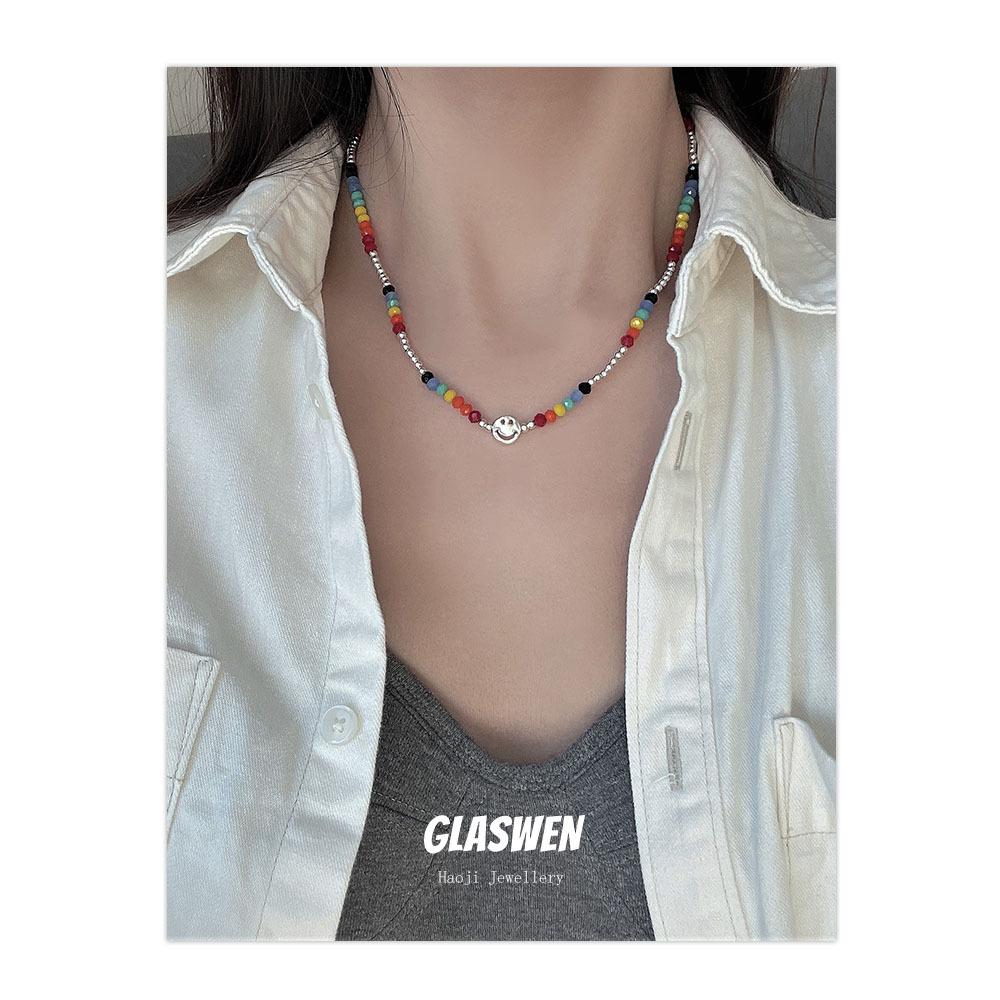 Collar de cuentas de arcoíris con cara sonriente de Dongdaemun, Corea del Sur, estilo hip hop, para niñas, ligero, de lujo, accesorios de moda de alta gama al por mayor.