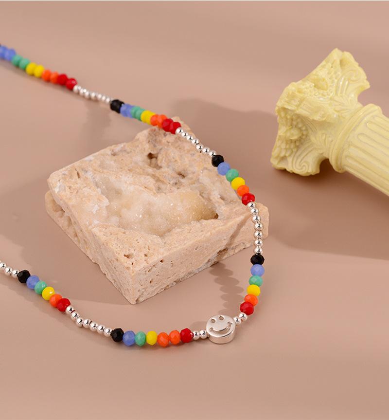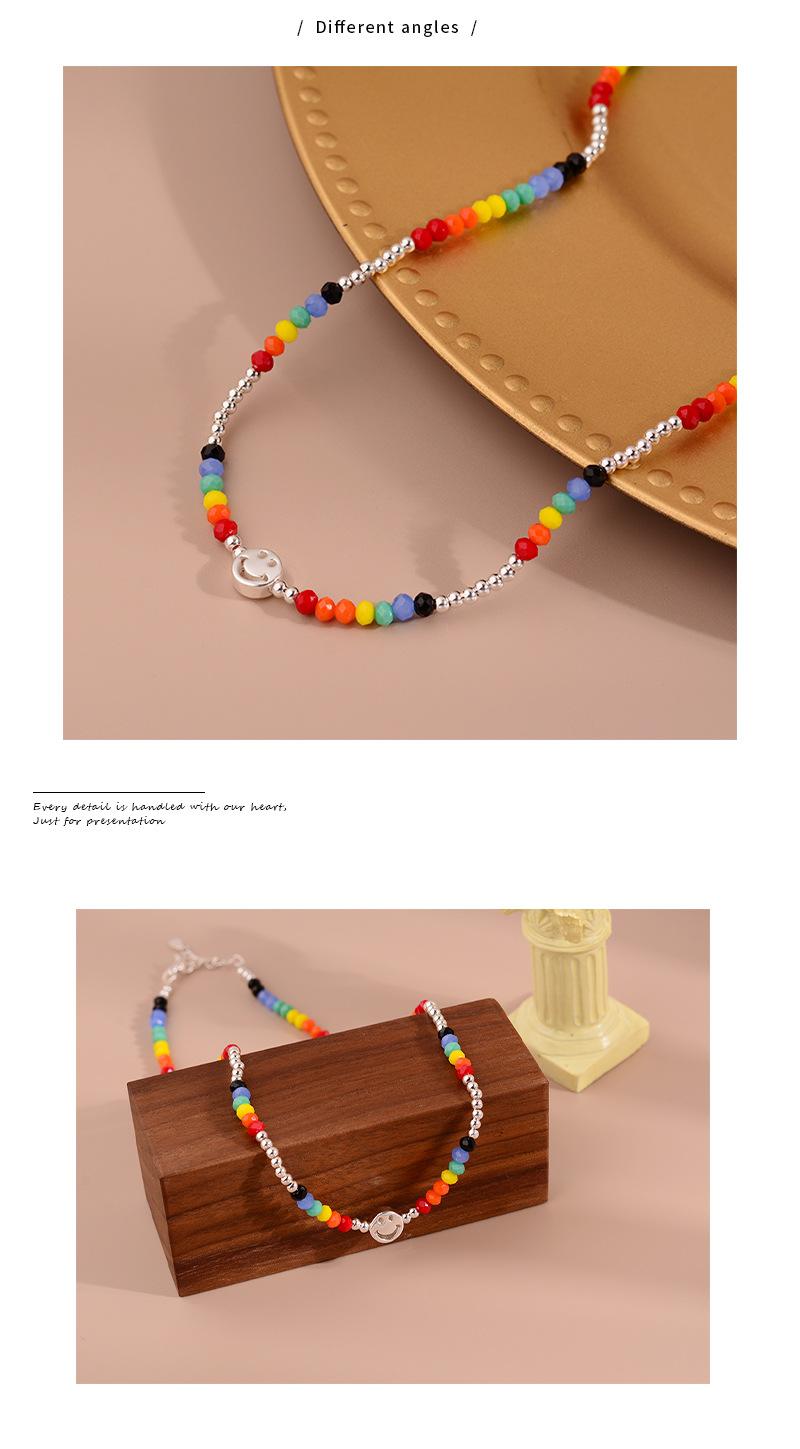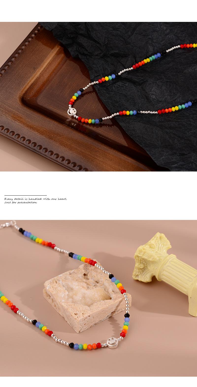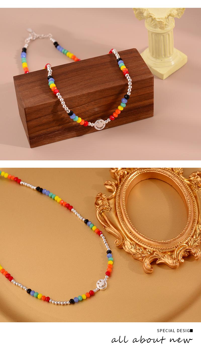 Collar de cuentas de arcoíris con cara sonriente de Dongdaemun, Corea del Sur, estilo hip hop, para niñas, ligero, de lujo, accesorios de moda de alta gama al por mayor.