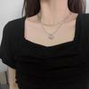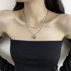 Collar de corazón cuadrado apilado de doble capa para mujer, diseño de estilo frío, cadena de clavícula, collar de plata rota simple que combina con todo.