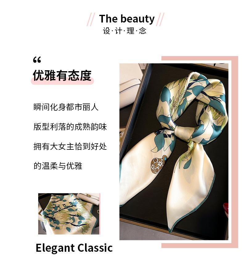Bufanda de seda de imitación con estampado de flores, nueva y sencilla, de verano, de 70 cm, cuadrada, de tacto avanzado, profesional, combinable con todo.