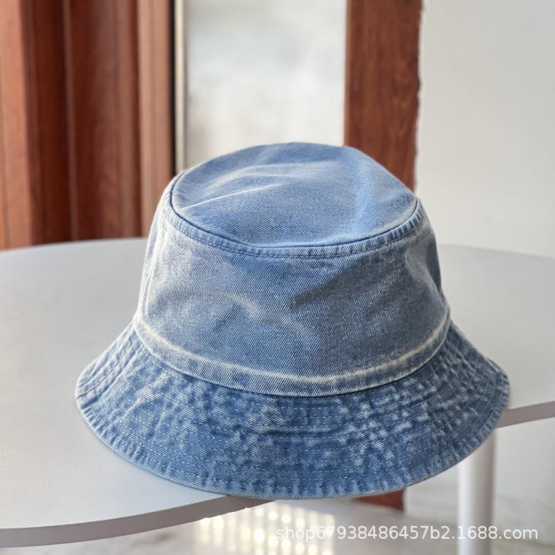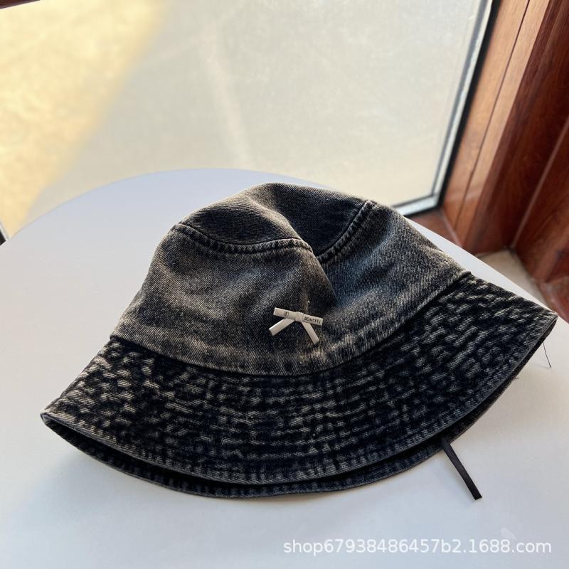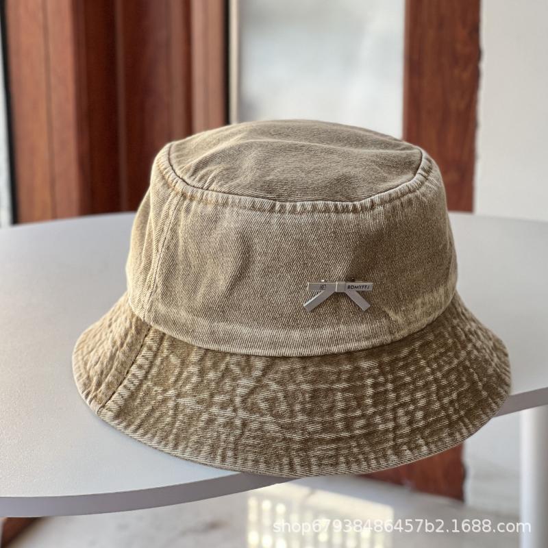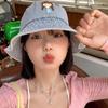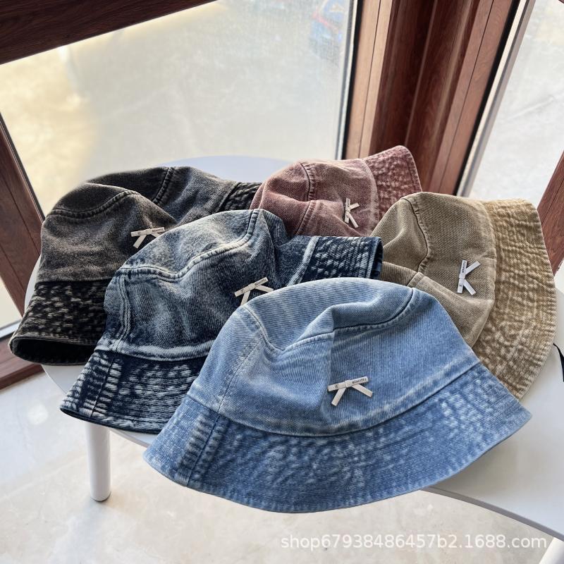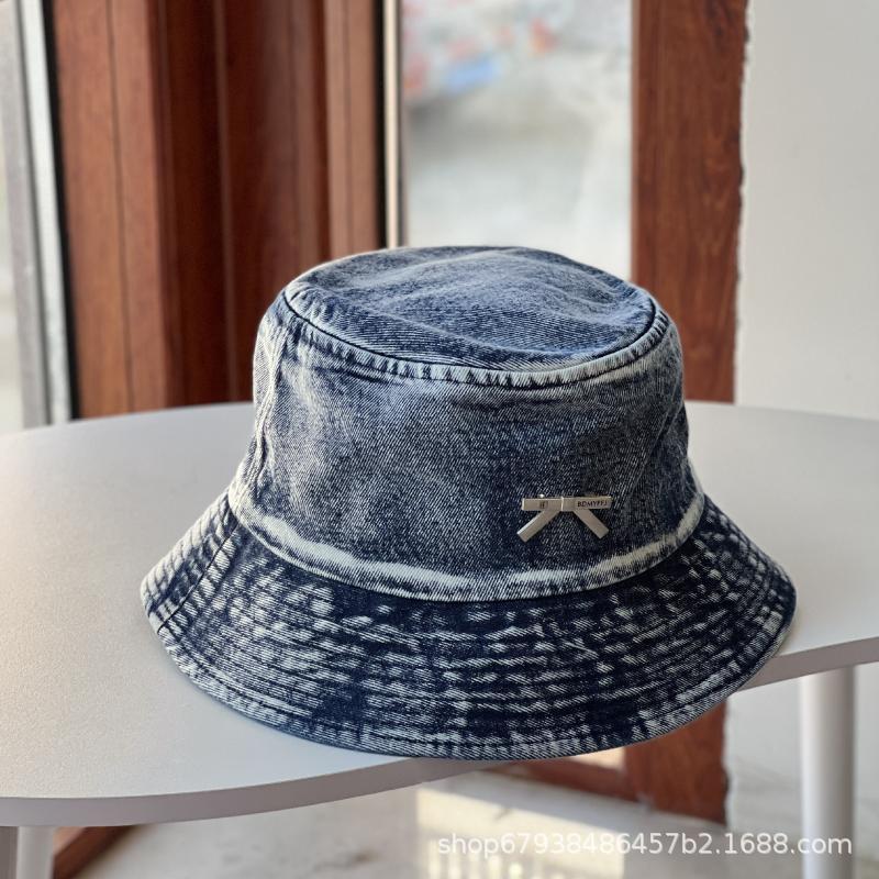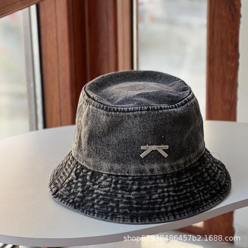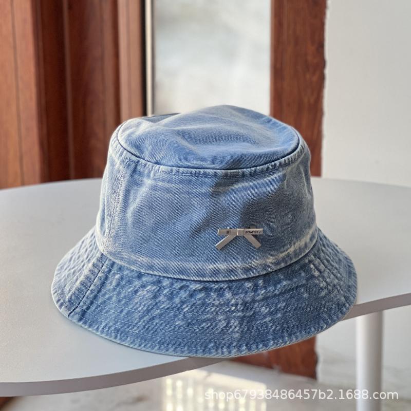 Nuevo sombrero de pescador de mezclilla bordado con lazo a la moda, informal, combinable con todo, con cabeza grande que muestra la cara, pequeño parasol, protector solar.