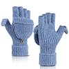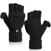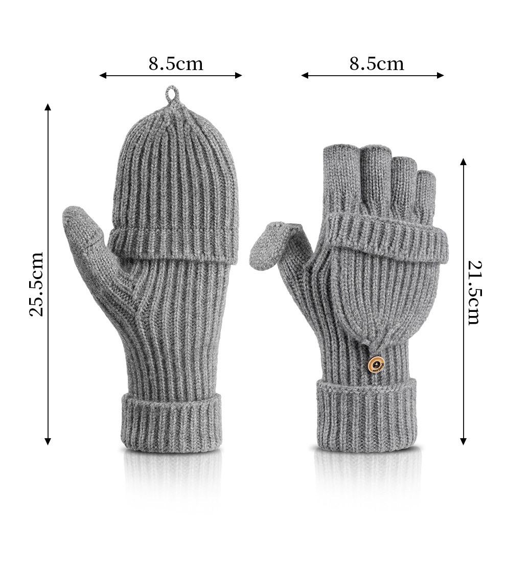 Guantes convertibles de invierno de medio dedo para mujer, a prueba de frío y cálidos, guantes para pantalla táctil para estudiantes, guantes sin dedos gruesos y con forro polar para hombre