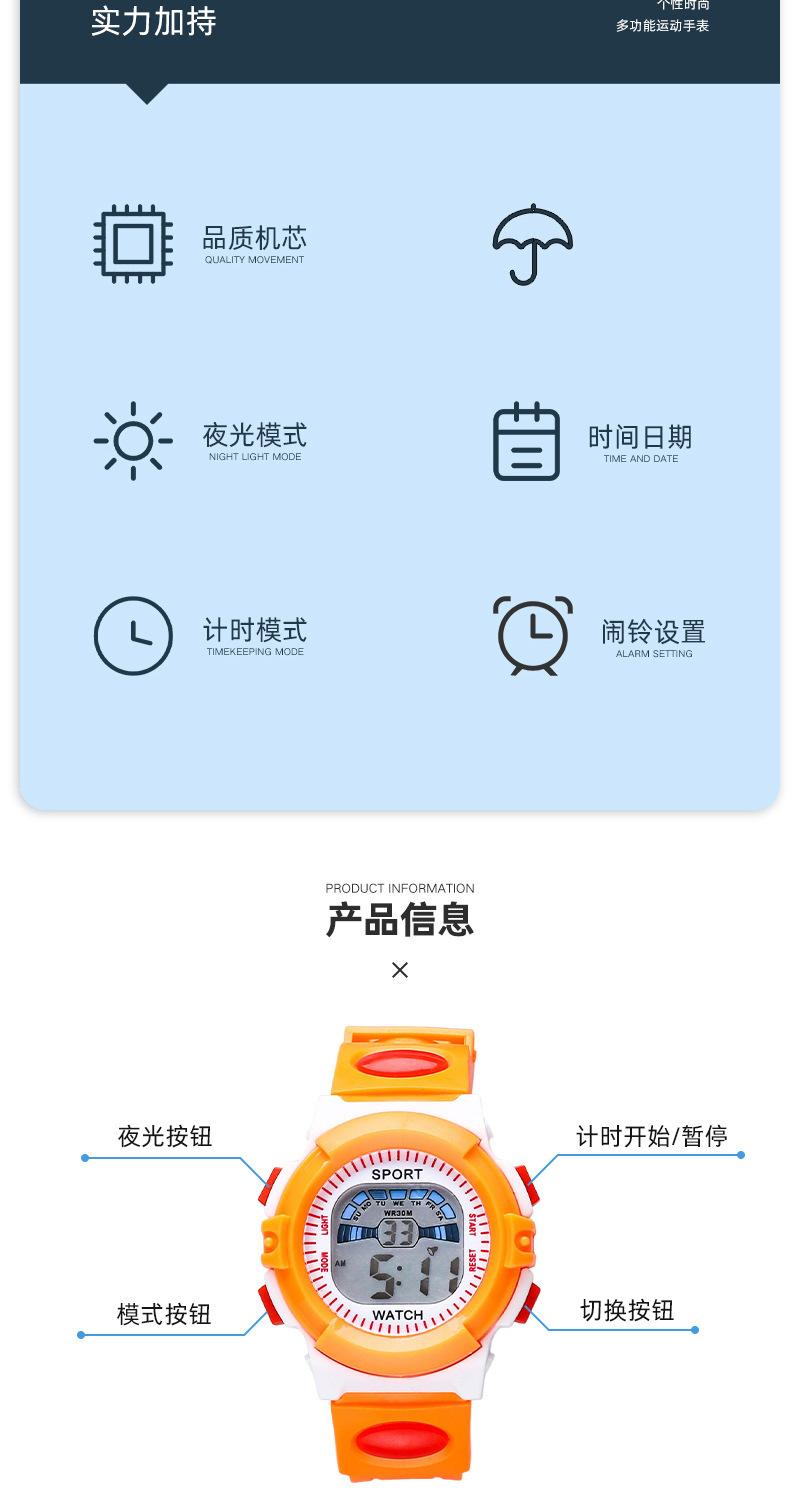 Reloj electrónico para estudiantes, de color caramelo, para niños, suministro transfronterizo, reloj electrónico multifuncional, luminoso, deportivo, con dibujos animados para estudiantes.