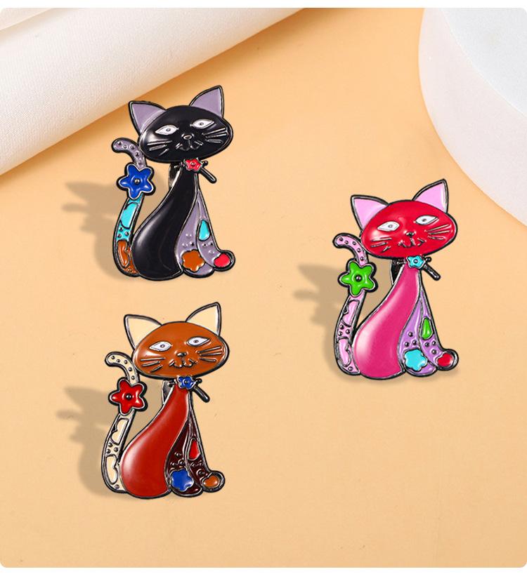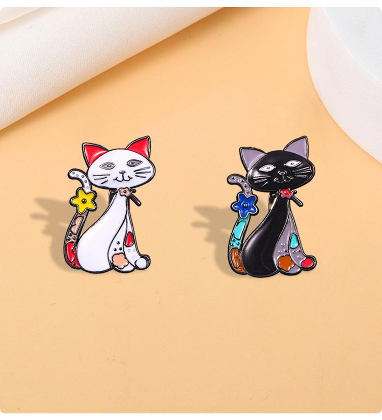 Broche de gato pintado personalizado de dibujos animados transfronterizo, corsage de animal de nicho europeo y americano con goteo de aceite, pin pequeño, accesorios para ropa de mujer