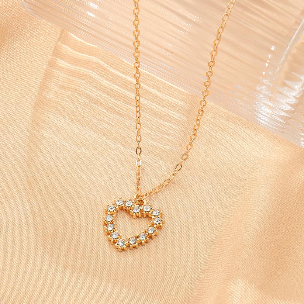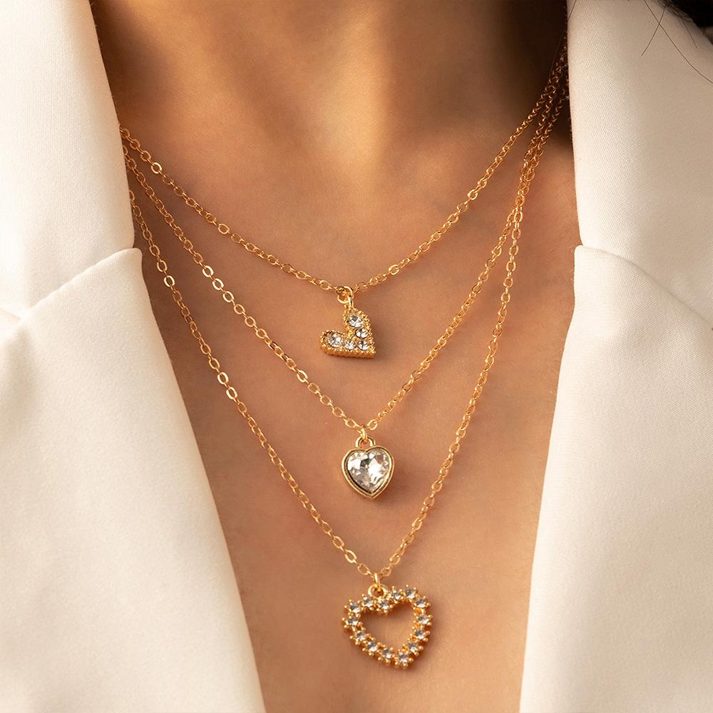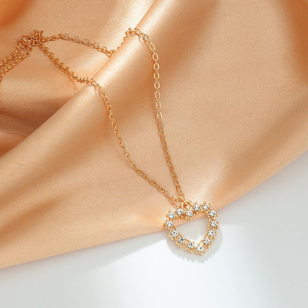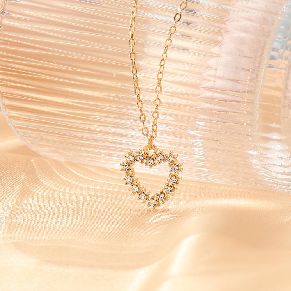 NZ2586 Colgante de Amor Europeo y Americano Transfronterizo Diamante Hueco Personalidad Creativa Collar Multiestilo para Mujer Cadena Clavicular Corazón de Durazno