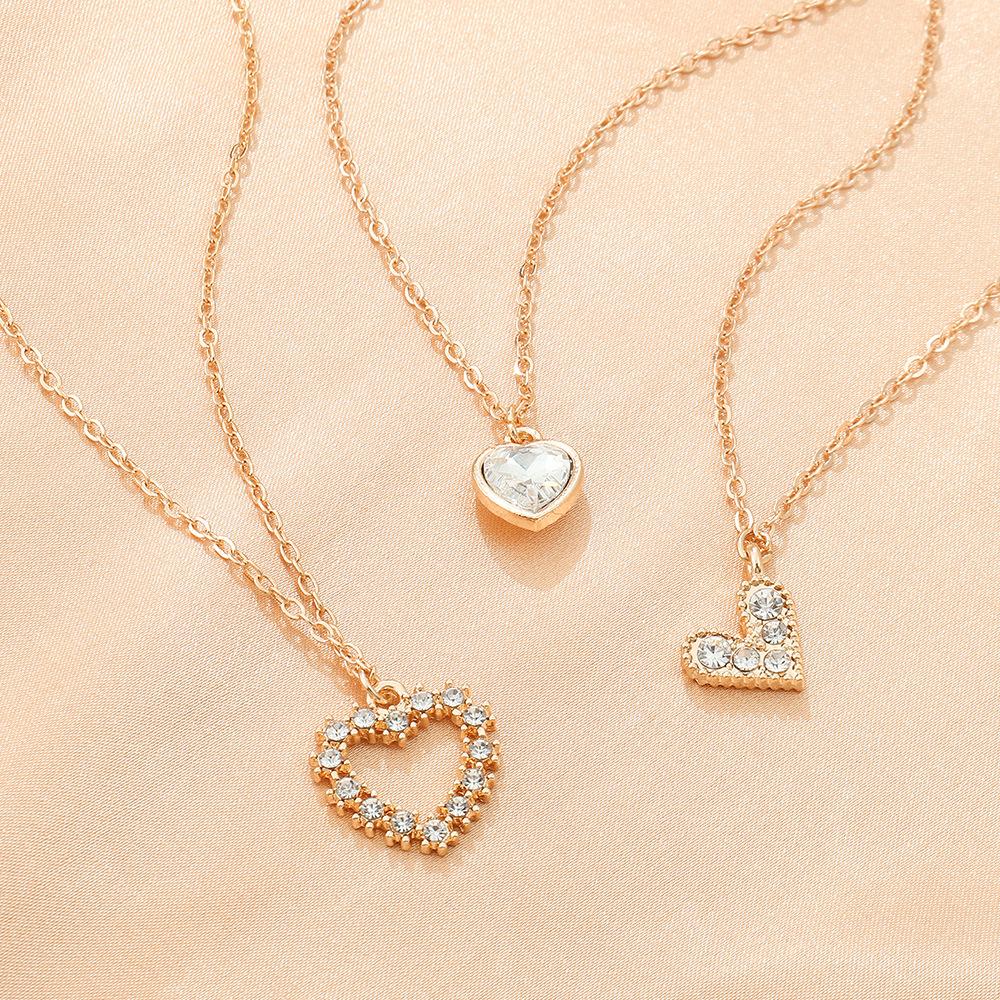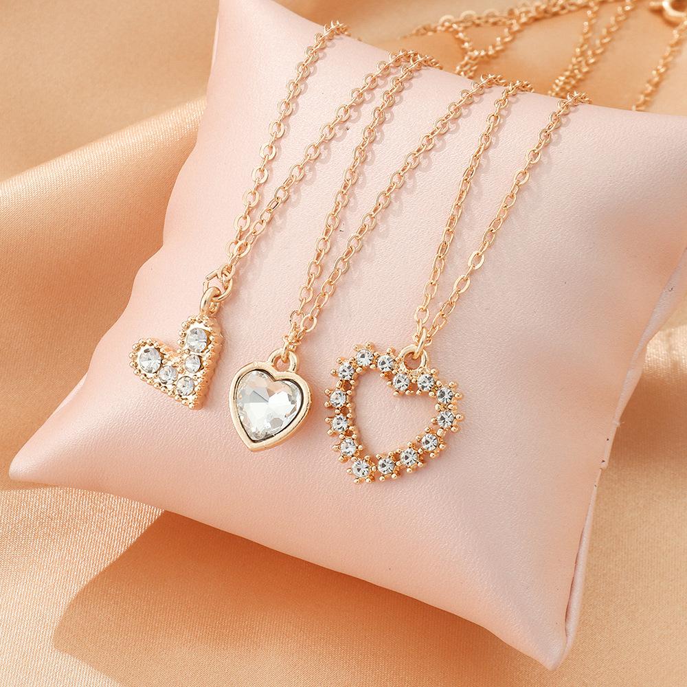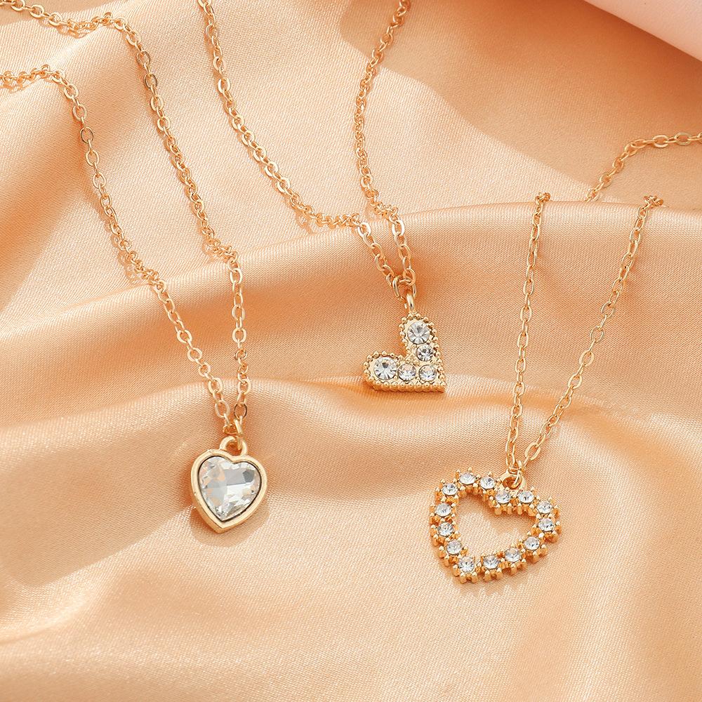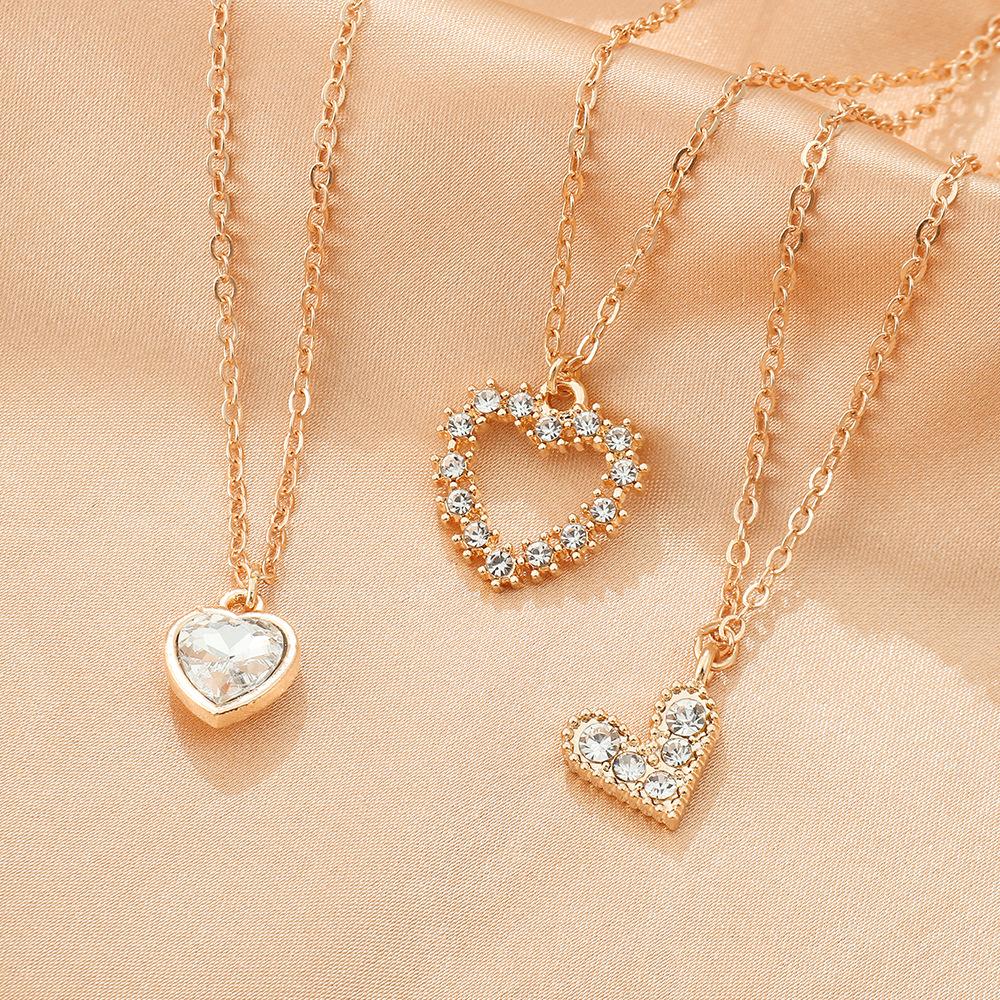 NZ2586 Colgante de Amor Europeo y Americano Transfronterizo Diamante Hueco Personalidad Creativa Collar Multiestilo para Mujer Cadena Clavicular Corazón de Durazno