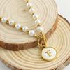 Collar de perlas con colgante de concha y letras de acero inoxidable con borde cruzado para mujer, con hebilla Ot, oro de 18 quilates y 26 letras de acero de titanio.