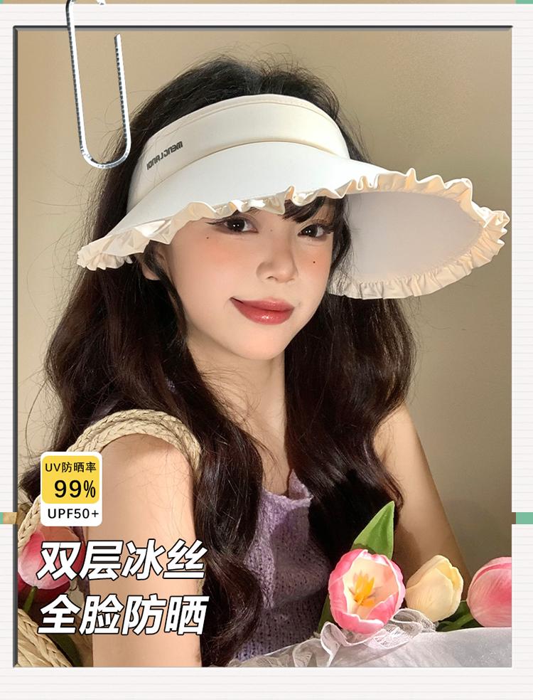Sombrero de Sol de Copa Vacía de Seda de Hielo para Mujer Verano Ala Grande Anti-Uv Sombrero de Sol Plegable para Ciclismo al Aire Libre