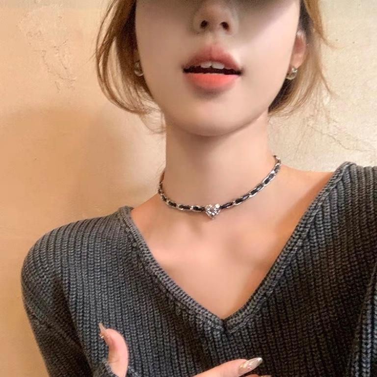 Gargantilla de amor con cadena para clavícula, collar de alta calidad, cadena distintiva, combina con todo, elegante collar de cuero con costuras, moderno