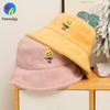 Sombrero de pescador de pana para mujer, estilo japonés de primavera y otoño, retro y versátil, circunferencia de cabeza grande, pequeña visera, sombrero casual