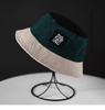Sombrero de Pescador de Pana para Mujer Primavera y Otoño Estilo Japonés Combinación de Colores Retro Versátil Circunferencia de Cabeza Grande Mostrando Cara Pequeña Sombrilla Sombrero Casual