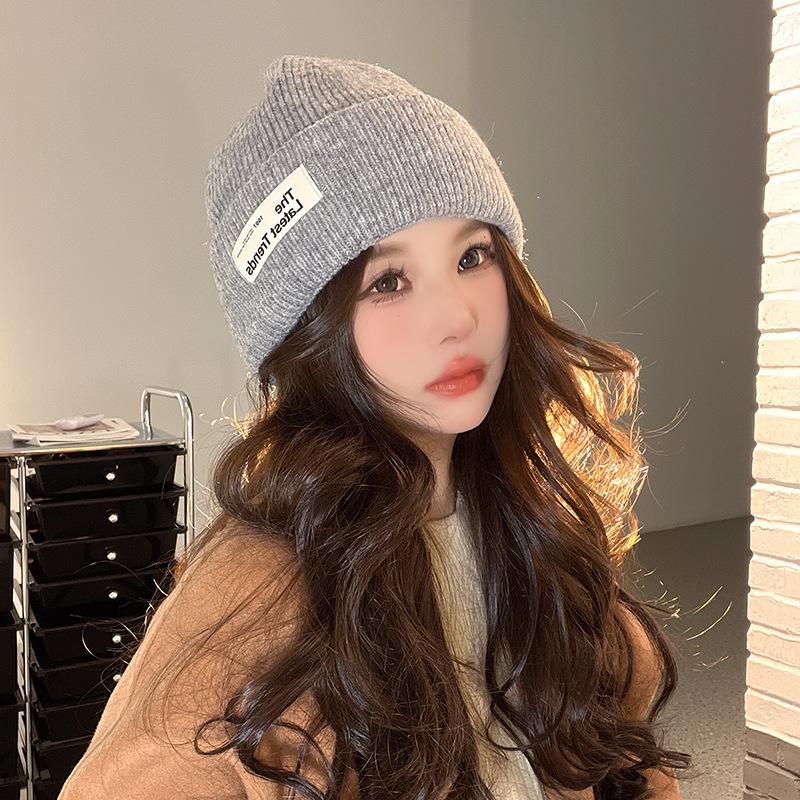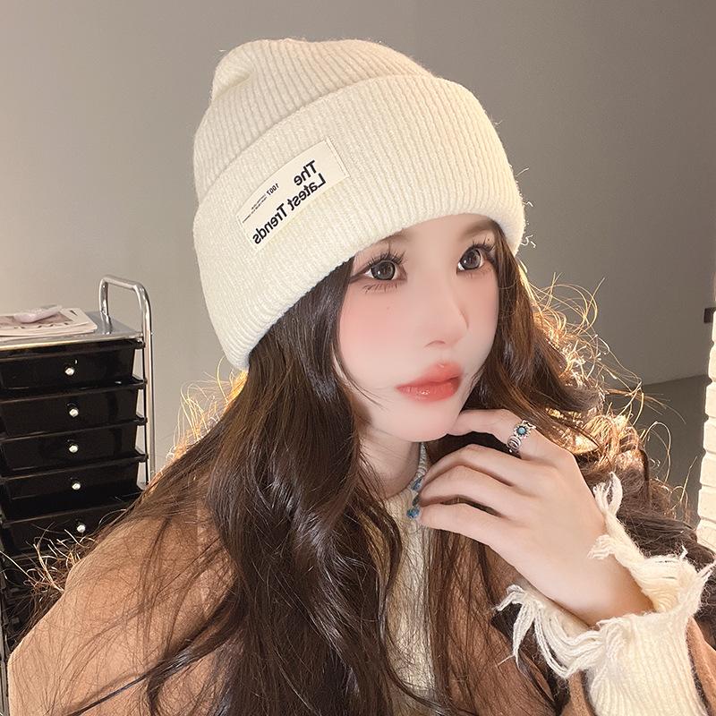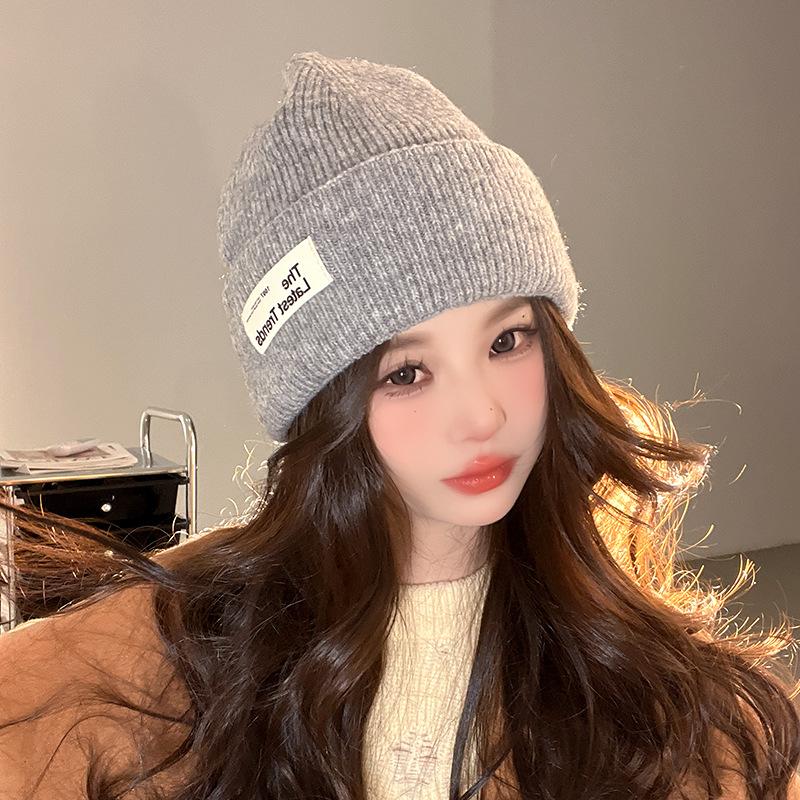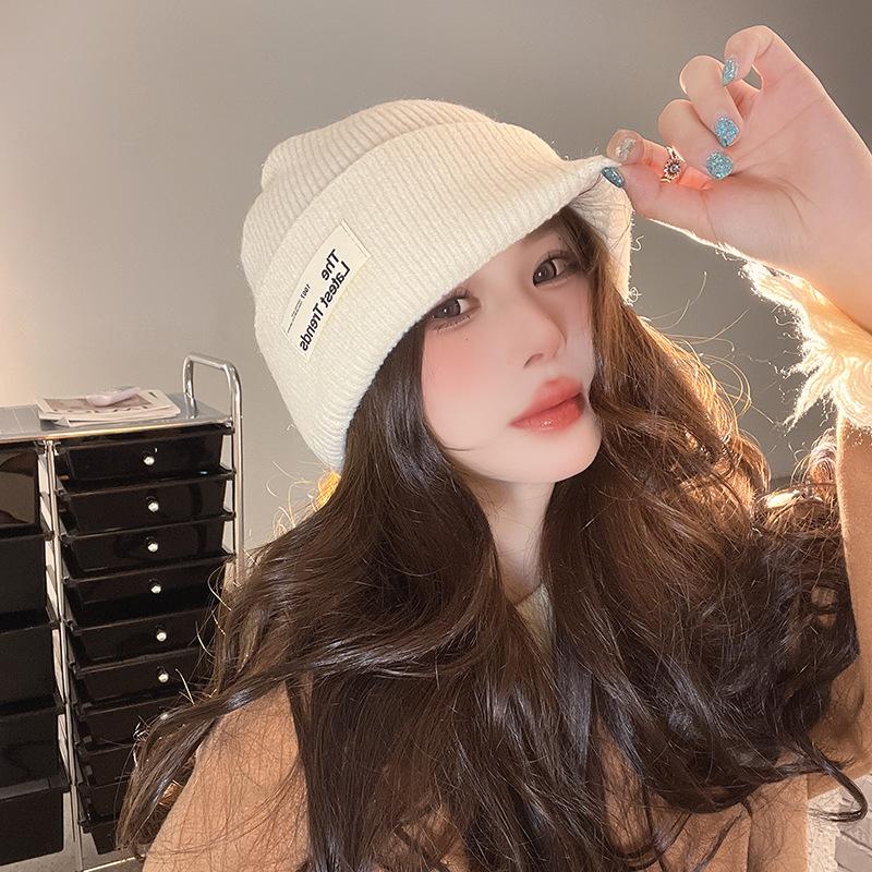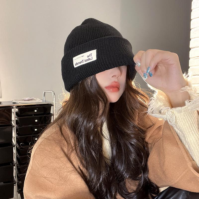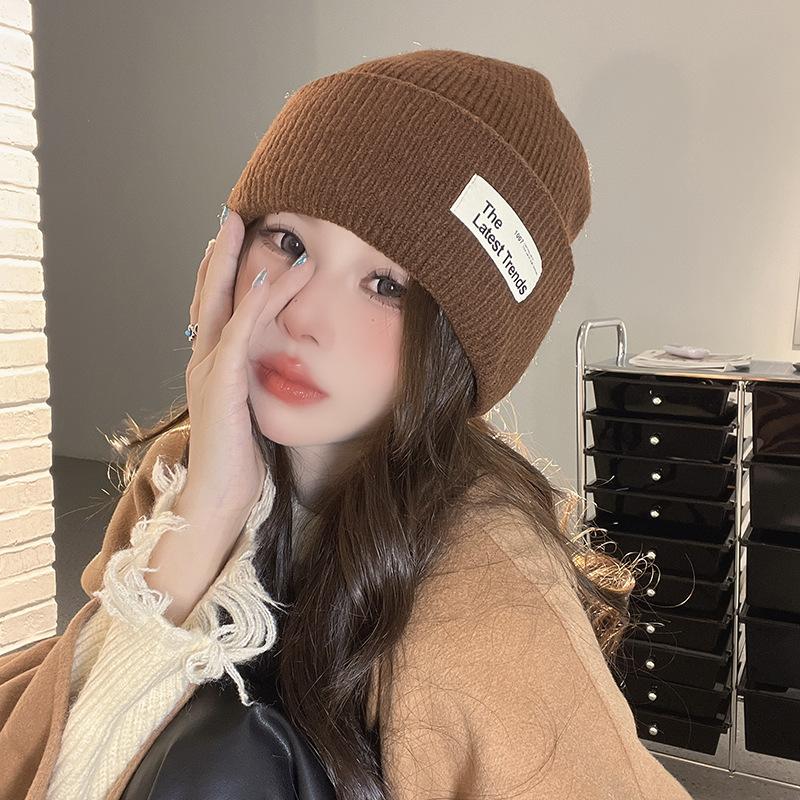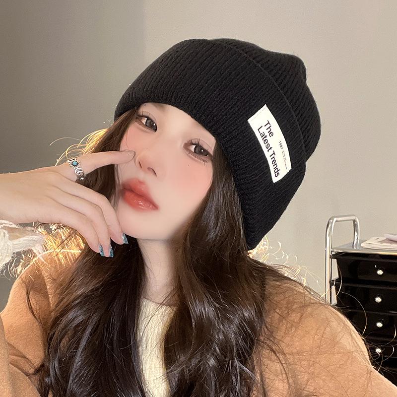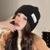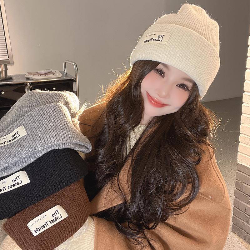 Nuevo gorro de punto de moda con etiqueta de tela de letras para combinar con todo, gorro de lana cálido para otoño e invierno para mujer, estilo coreano, casual, para el frío, para ir de compras