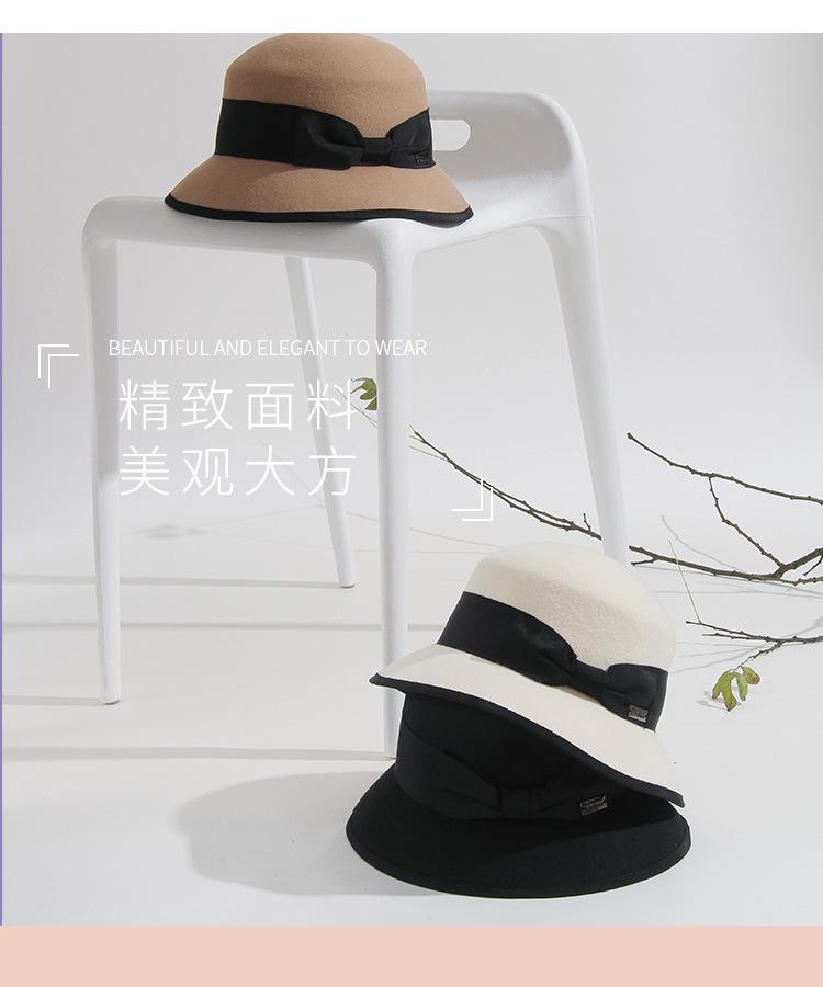 Sombrero de lana cálido con lazo para mujer otoño e invierno 2023 retro versátil para ir al trabajo lana pura a prueba de sol ala ancha sombrero de fieltro