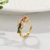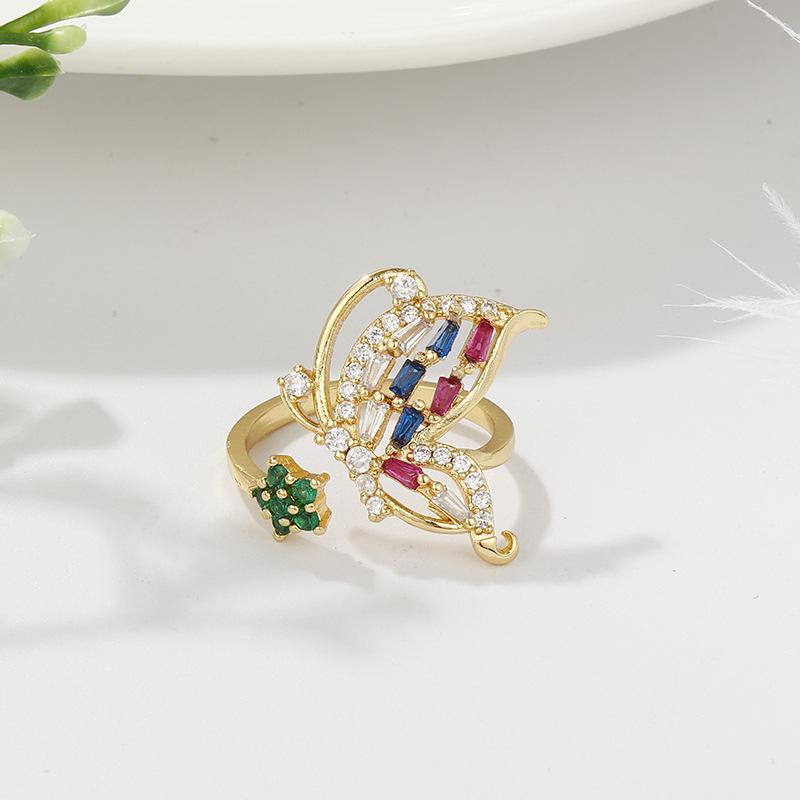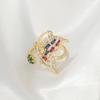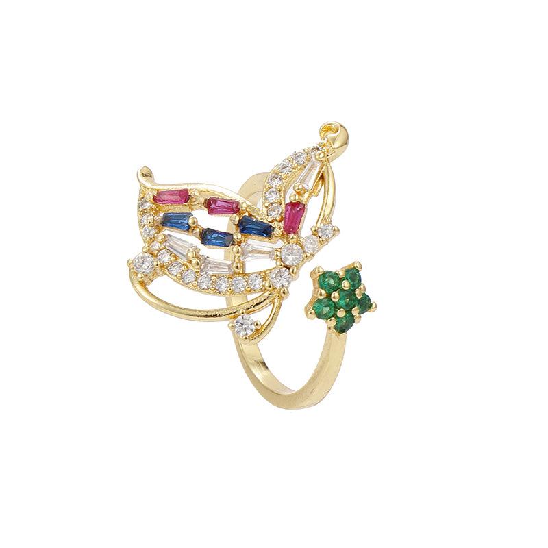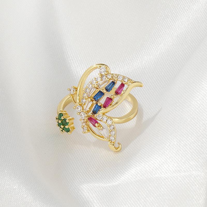 Anillo Estilo INS Estilo Lujo Ligero Diseño Mariposa Transfronterizo Incrustado Zircón Cuadrado Colorido Anillo Abierto