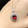 Nuevo y elegante colgante de lujo ovalado de imitación de color rubí con diamantes, collar de clavícula con separación de color dorado para mujer
