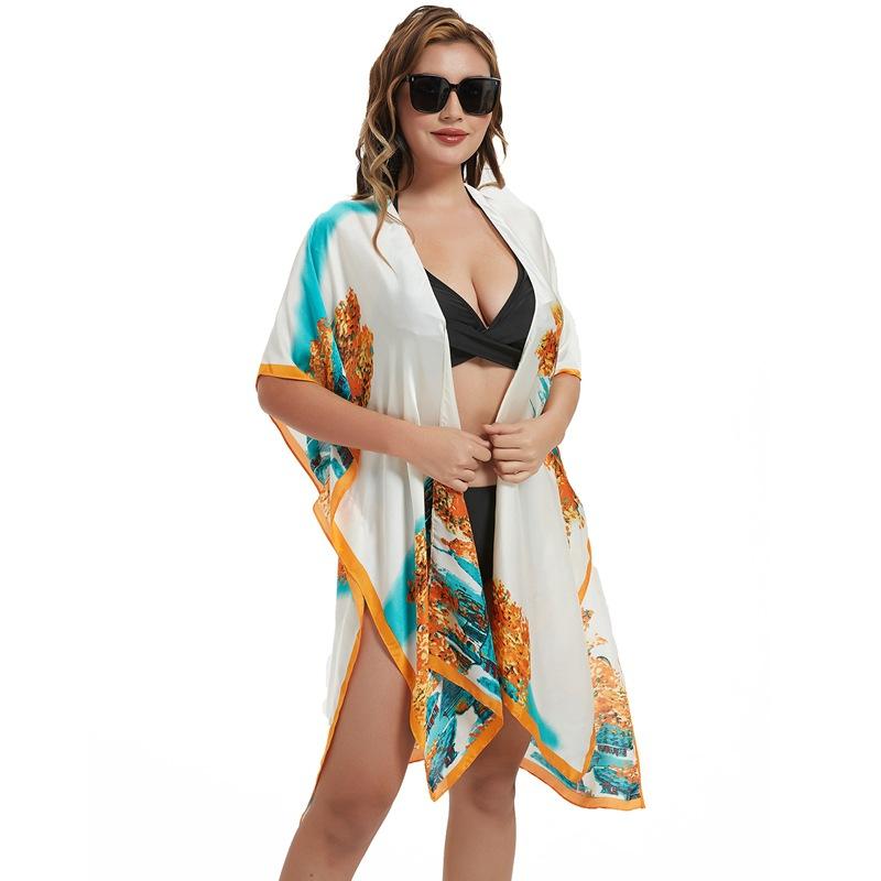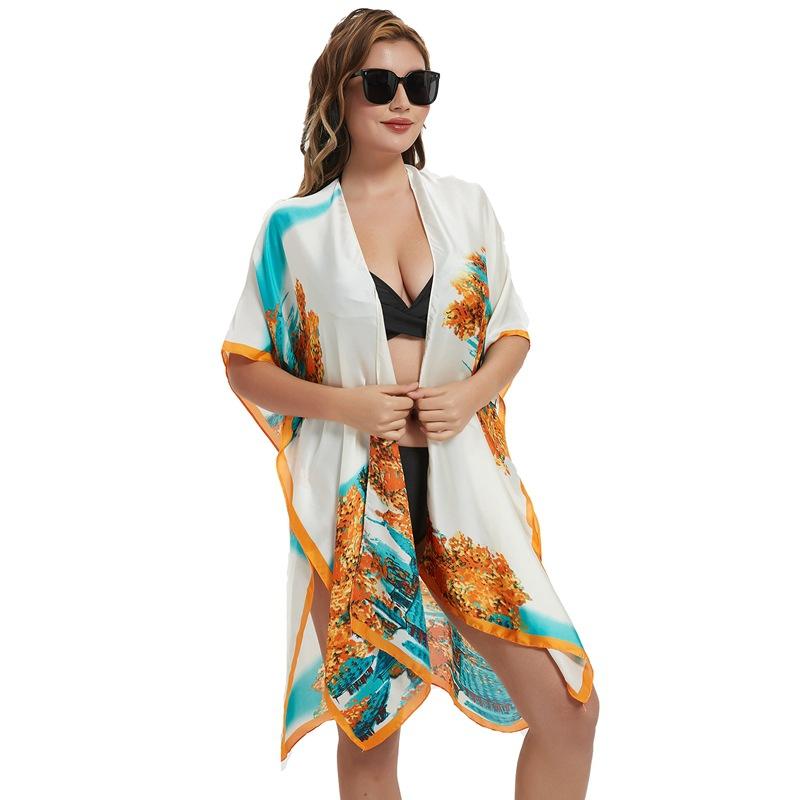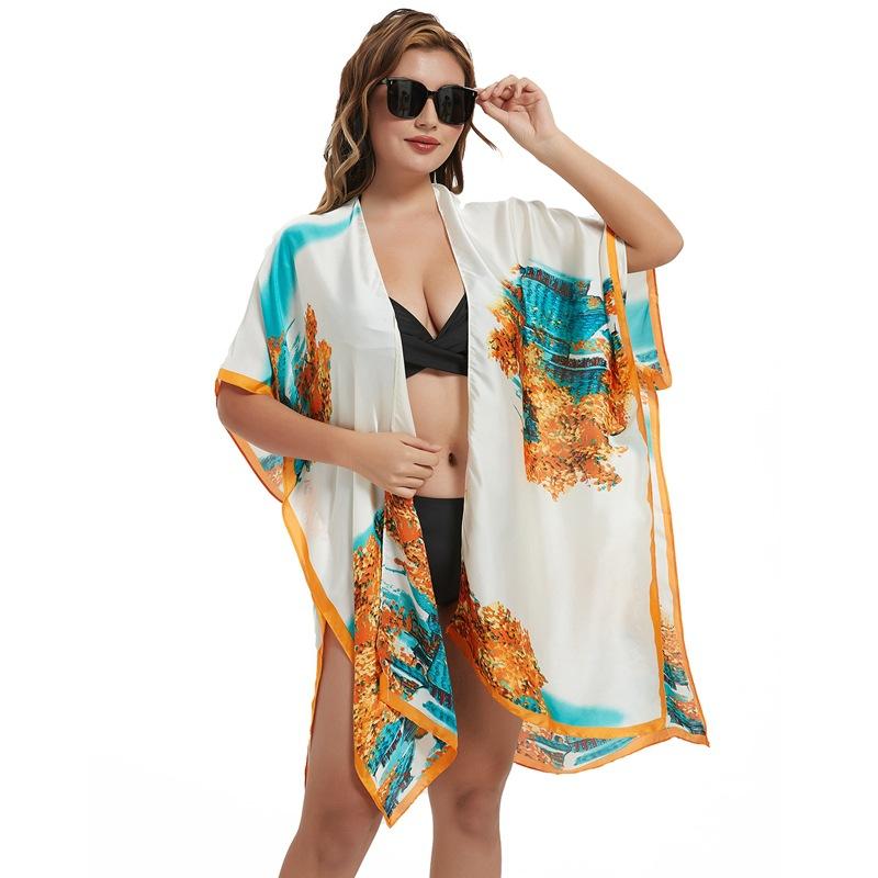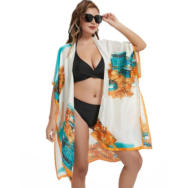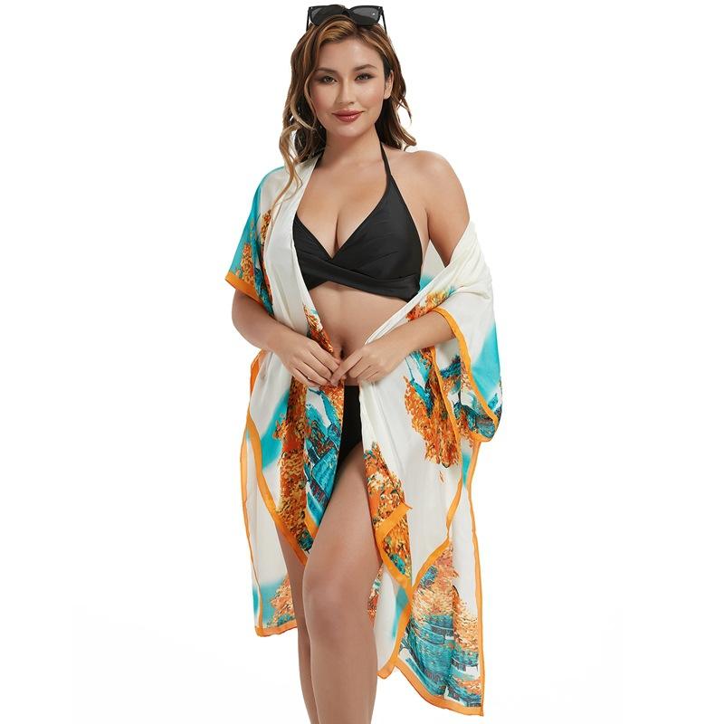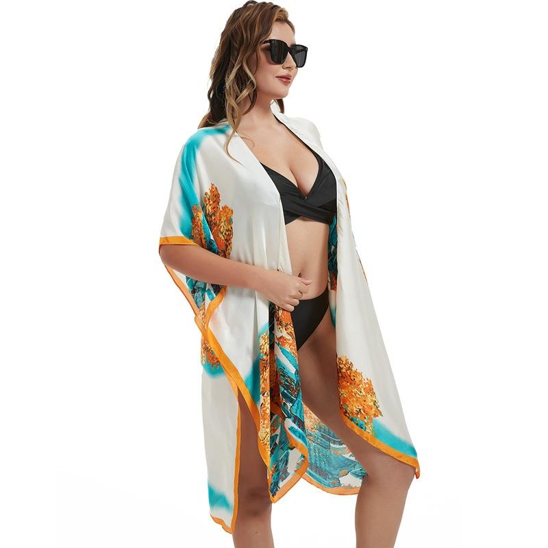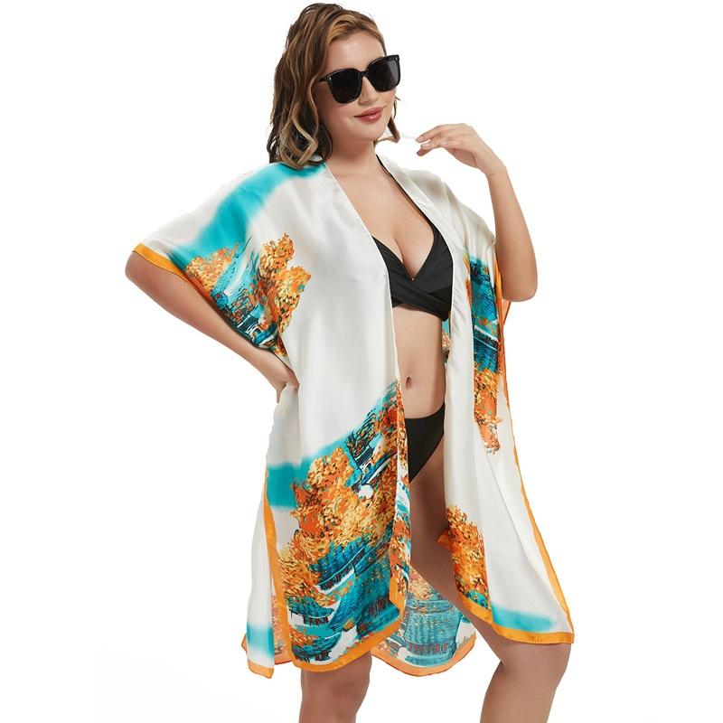 Blusa Nueva de Primavera y Verano con Chal Estampada a la Moda de Largo Medio para Mujer Cárdigan Transpirable con Protección Solar Blusa de Verano