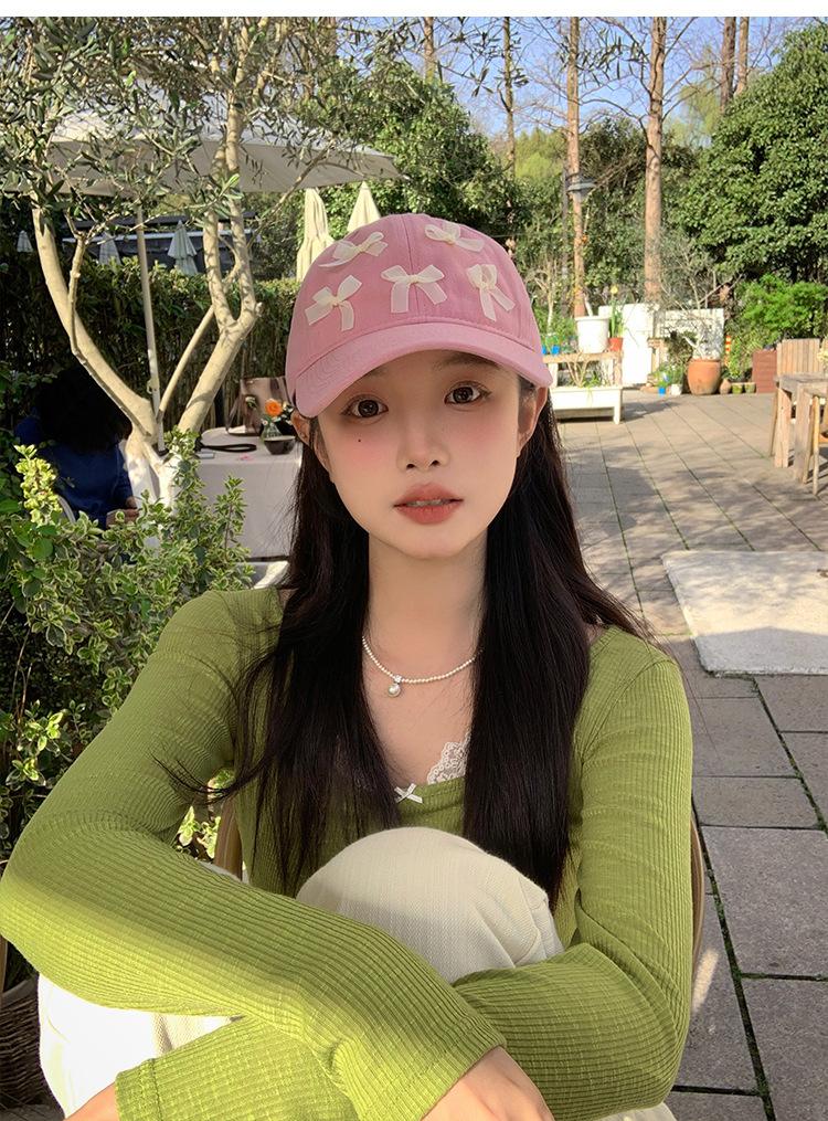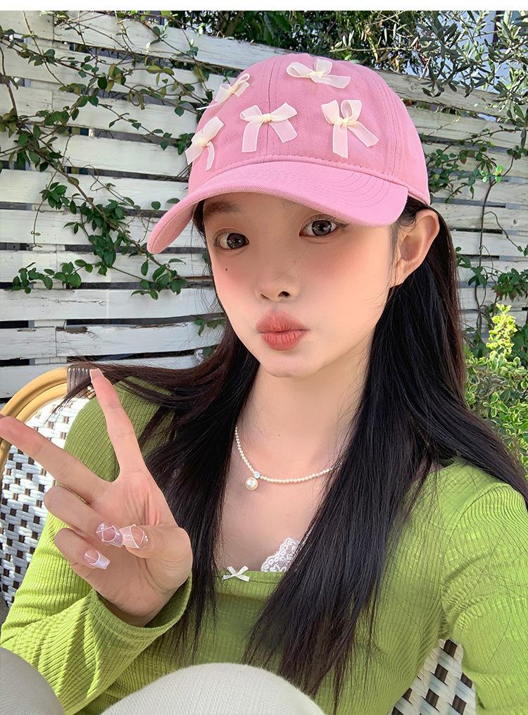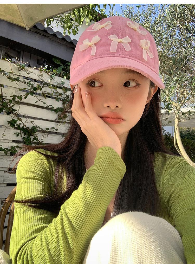 Verano Dulce Celebrante de Internet Encaje Lazo Gorra de Béisbol Moda Femenina Rostro Pequeño Parasol Gorra Curva Combinable