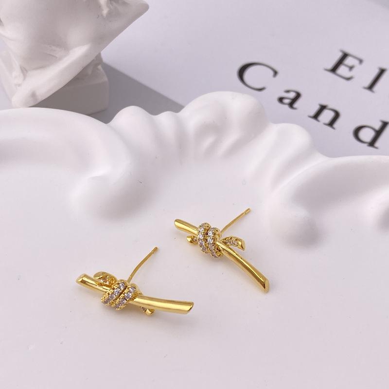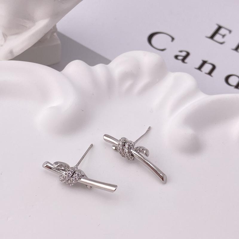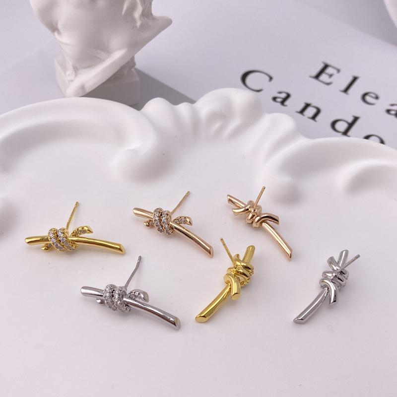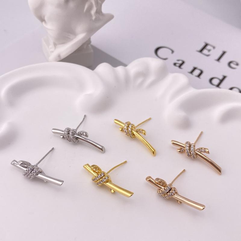 Pendientes de botón con nudo de lujo ligero con microincrustaciones de T, diseño de alta gama, temperamento, elegantes y exquisitos, joyería para las orejas.