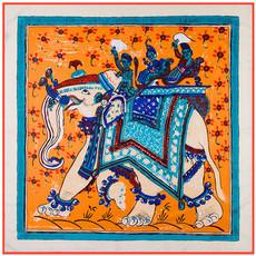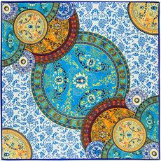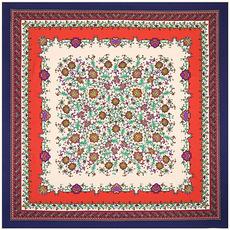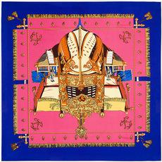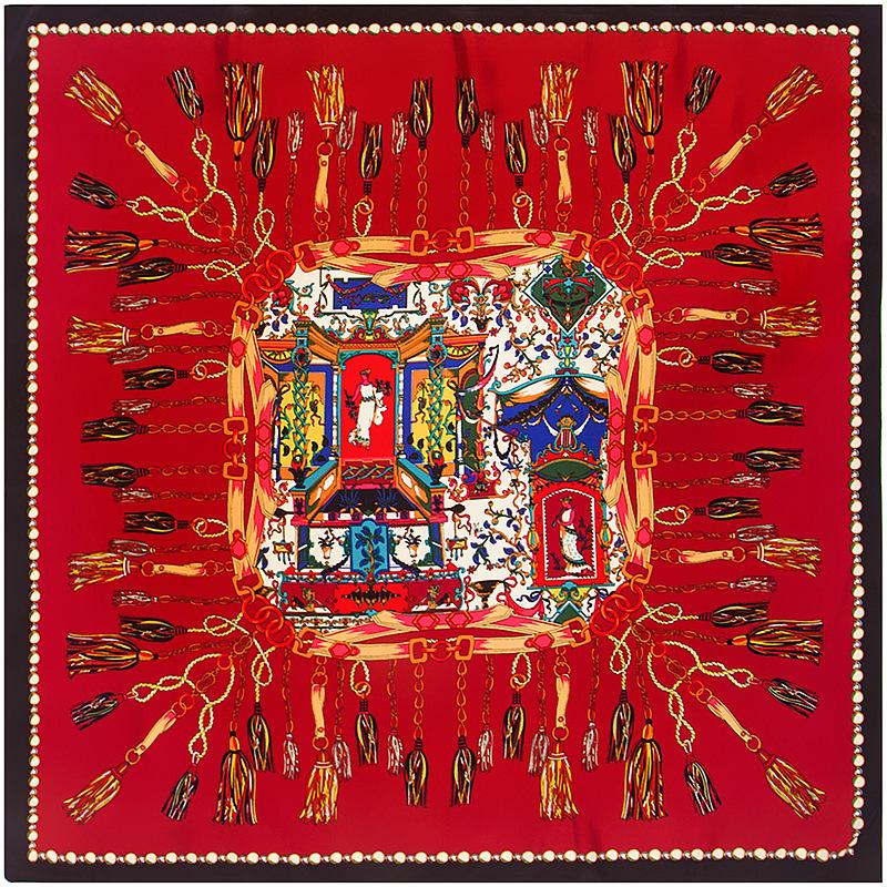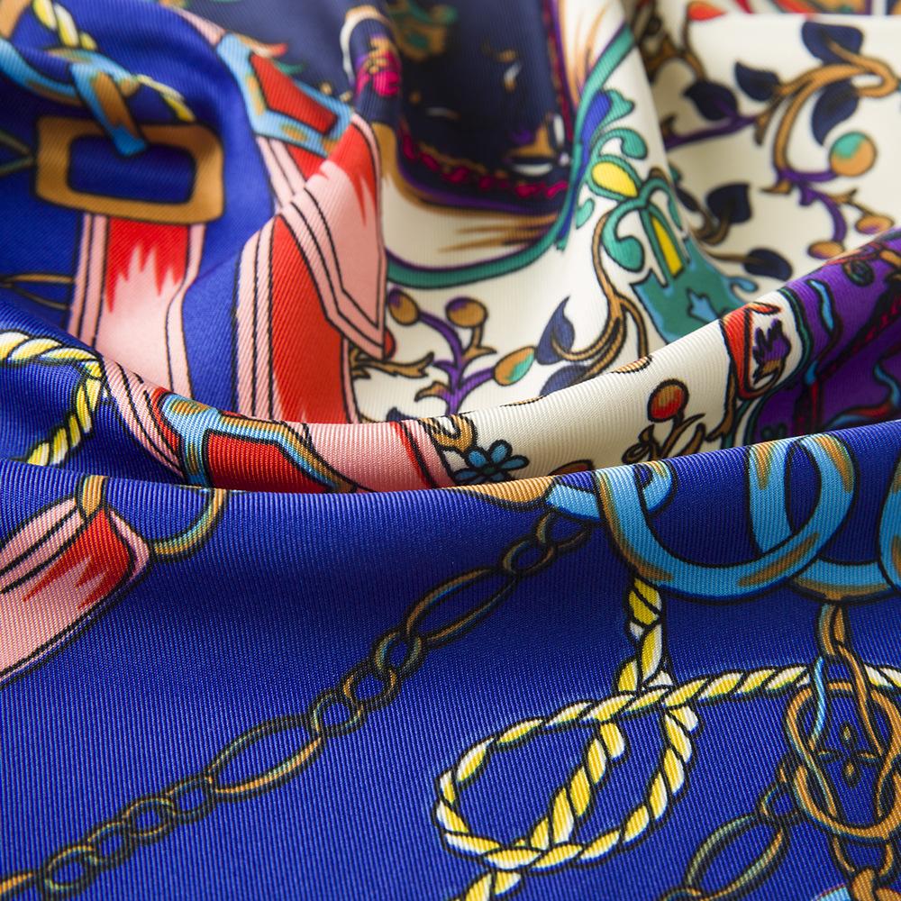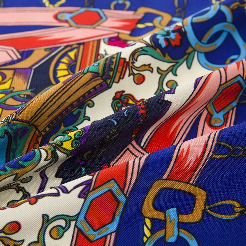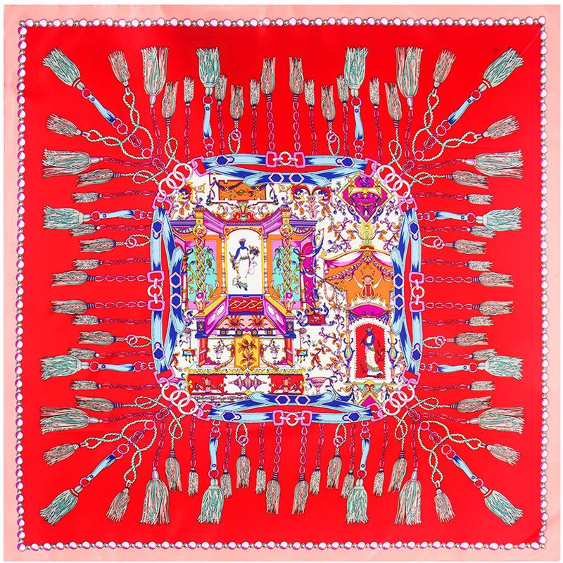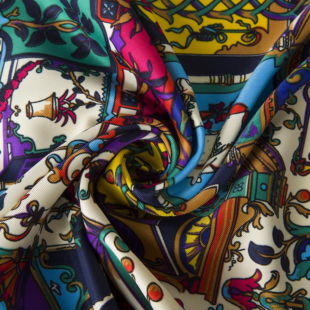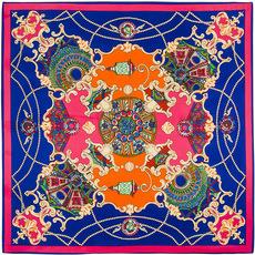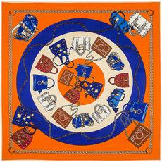 La seda sintética de alta calidad es ligera, suave y agradable para la piel. Los diversos patrones de cadena naranja de los carruajes están llenos de significado geométrico, y la combinación irregular de naranja claro y oscuro resulta elegante y significativa.