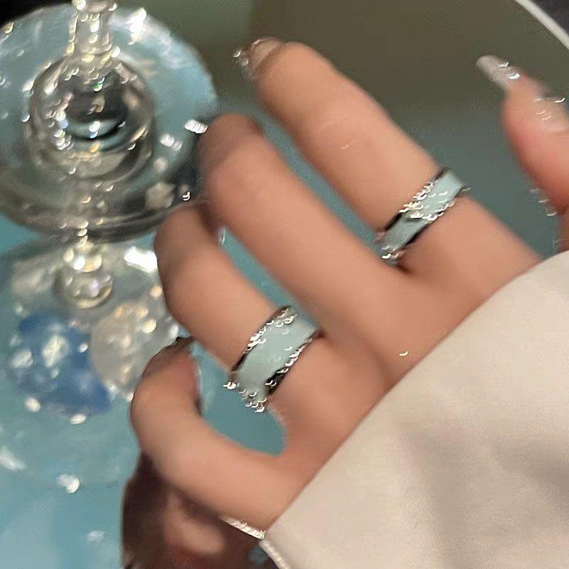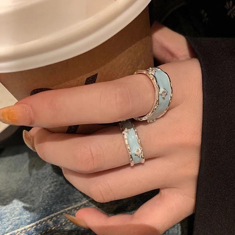 Anillo de esmalte azul cielo para mujer 2023, nuevo diseño de nicho de lujo ligero y moderno, moda simple para parejas