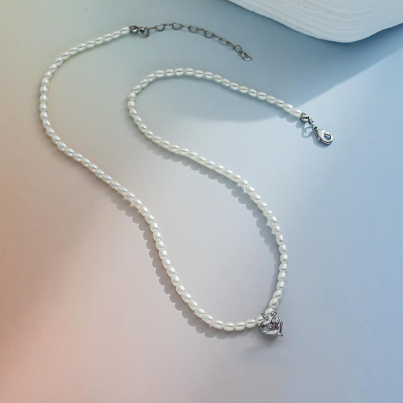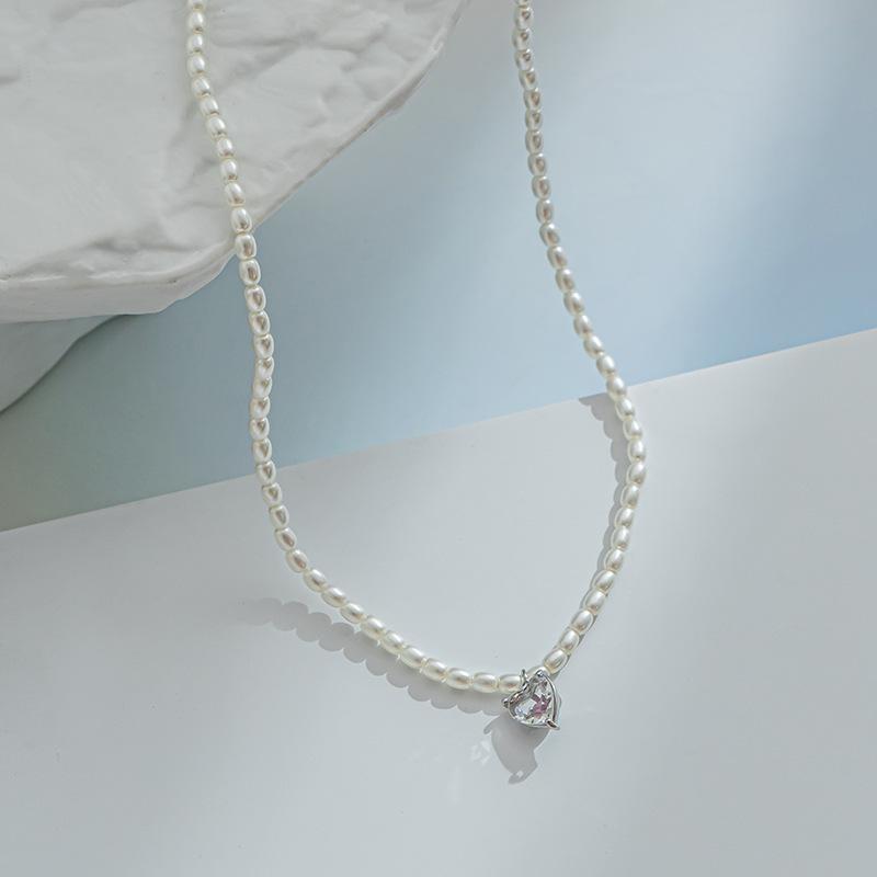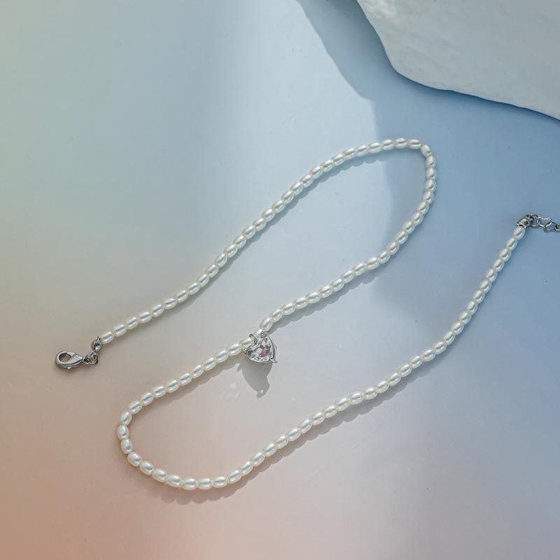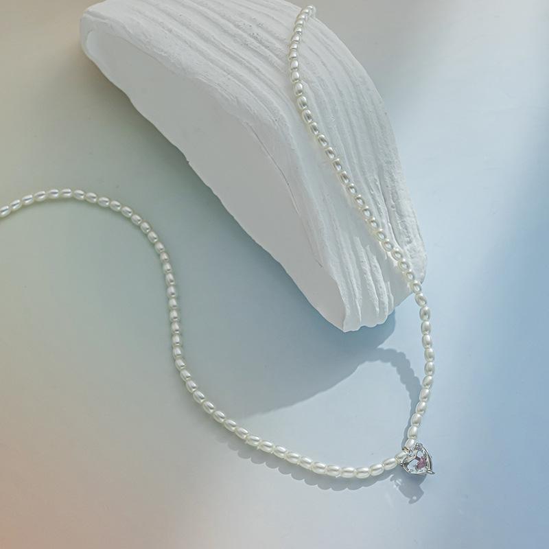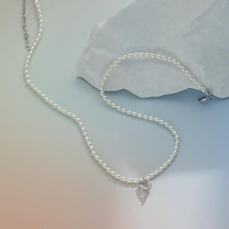 Collar de perlas de mijo de moda coreana, joyería de alta gama, combina con todo, resistente a la decoloración, colgante de amor con circonita, cadena de clavícula