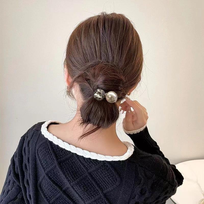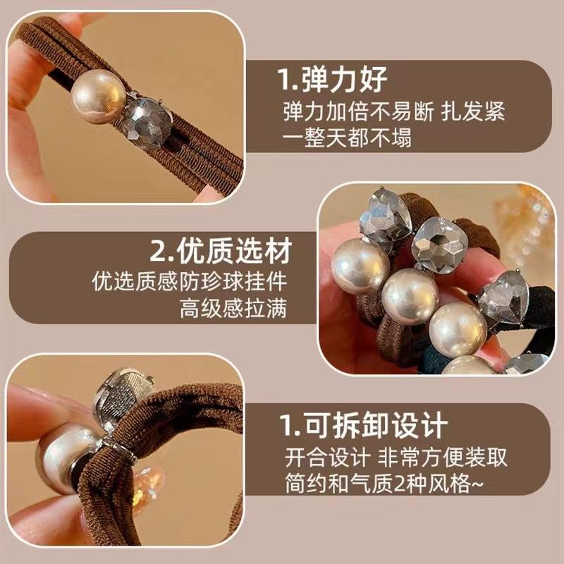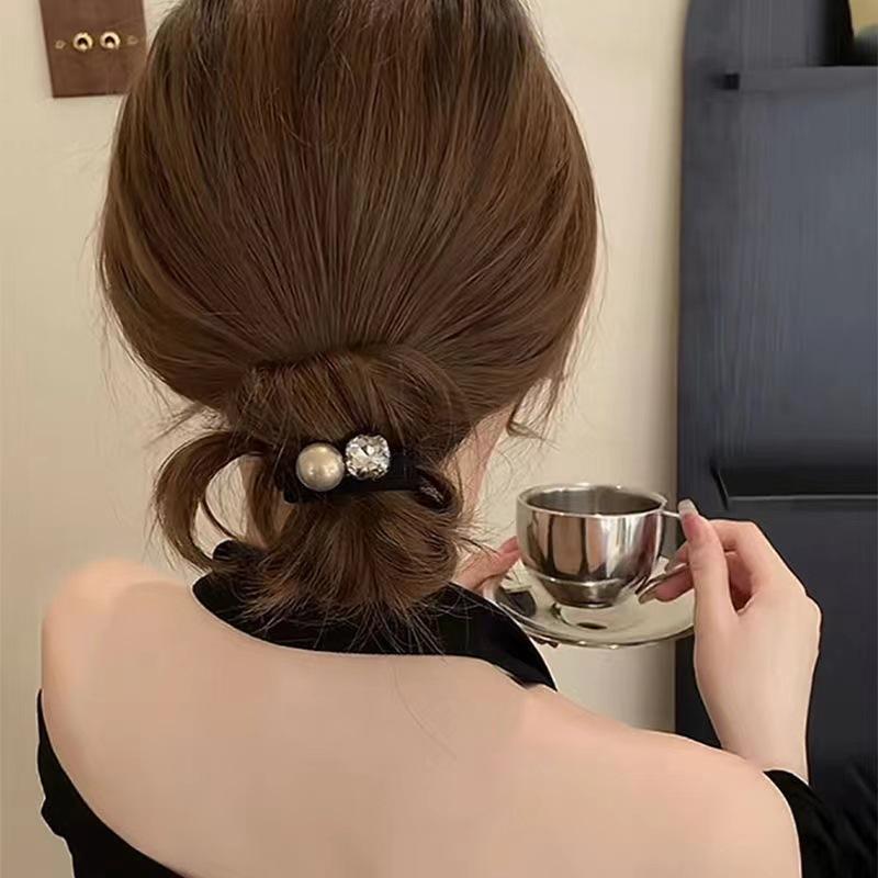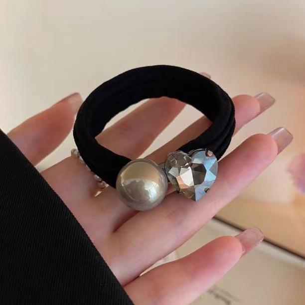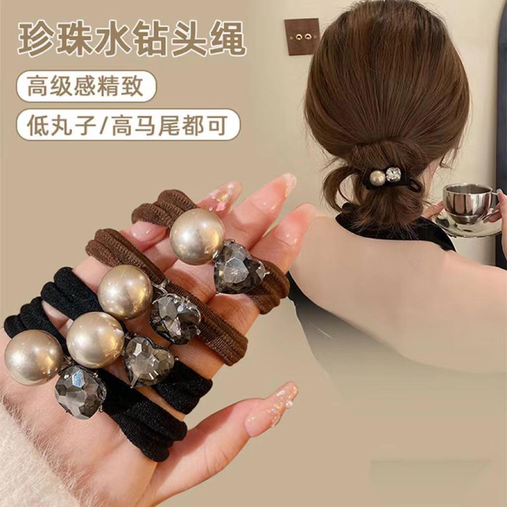 Toallero de cuerda para el cabello con perlas y diamantes de imitación de alta calidad para otoño e invierno, banda de goma, funda de cuero para cola de caballo de celebridades de Internet, anillo para el cabello simple, cuerda para el cabello