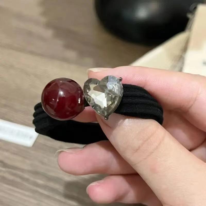 Square-black hair tie, Love-black hair tie, Love-brown hair tie, Square-brown hair tie, Red beads-love hair ti...