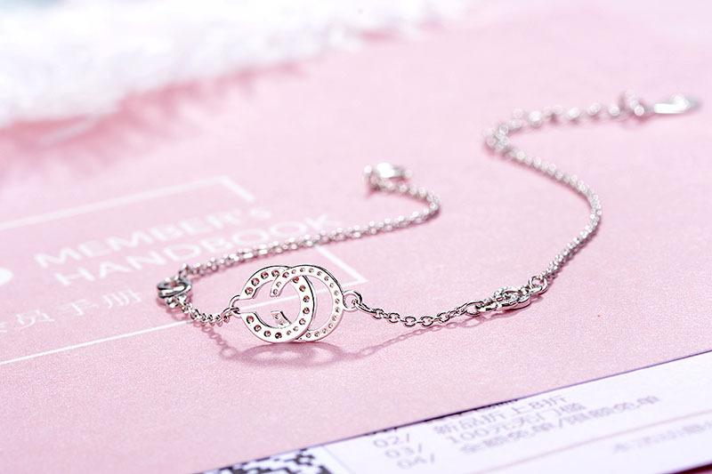 Pulsera Estilo Antiguo Gato Ning Xiao Xiang Regalo para Novia Moda Simple y Moderna para Mujer Diamante Francés Flash Hebilla de Letra Pulsera Doble C