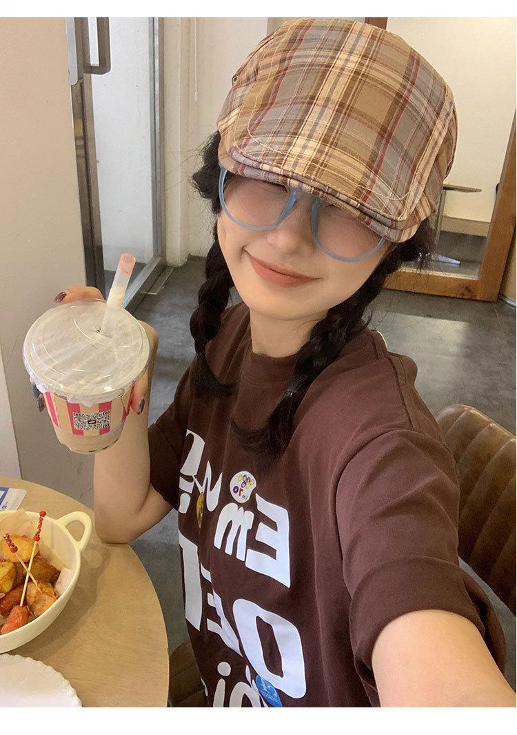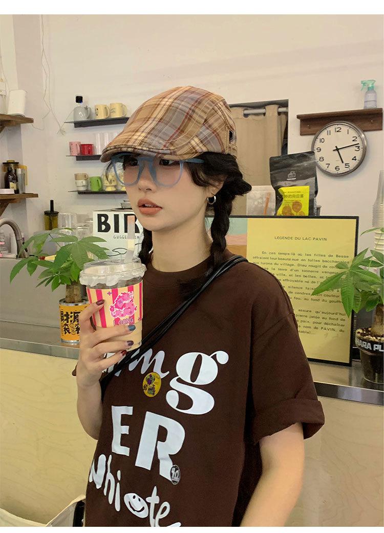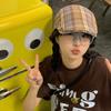 Gorra Retro de Verano para Chica, Delgada, con Visera, Verde Caqui a Cuadros, Boina para Cabeza Grande, Gorra de Visera de Pato, Gorra Neutral para Hombre