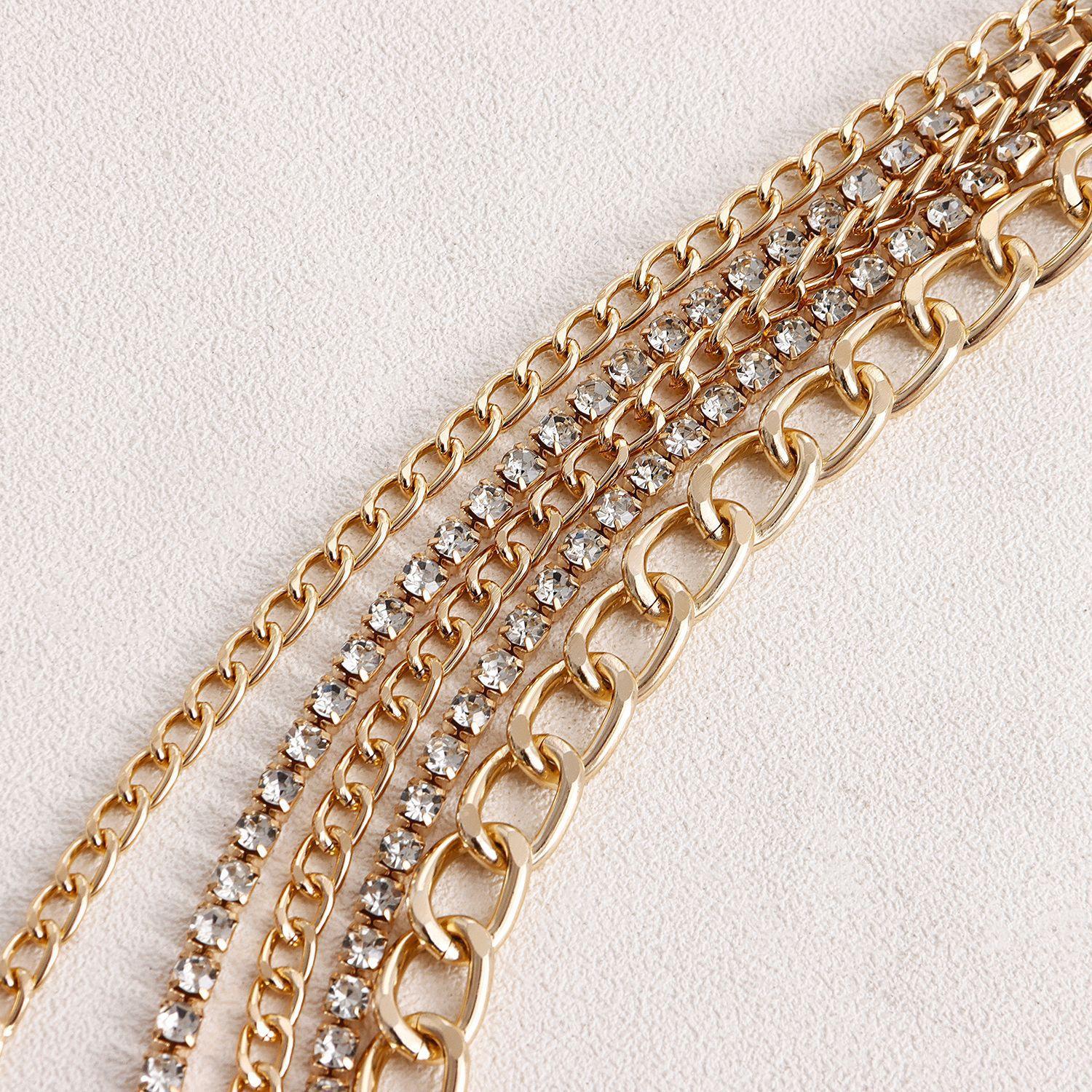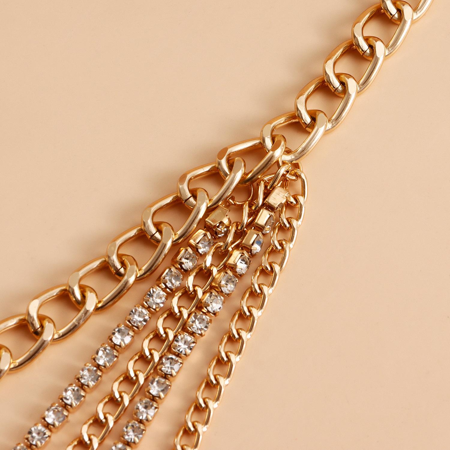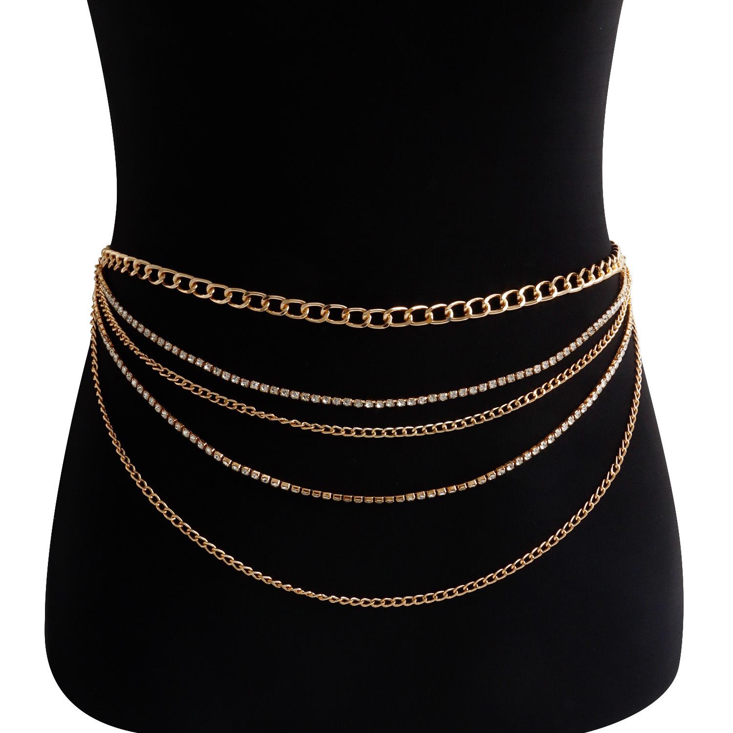 Joyería transfronteriza europea y americana, moderna, genial, personalidad versátil, cadena geométrica para la cintura, metal, pedrería, borla multicapa, cadena corporal de moda