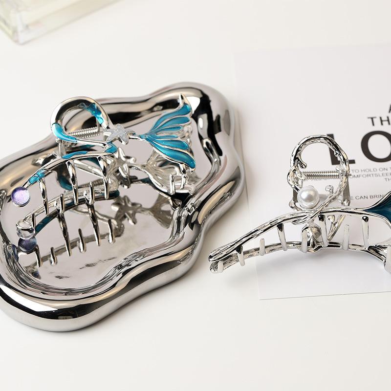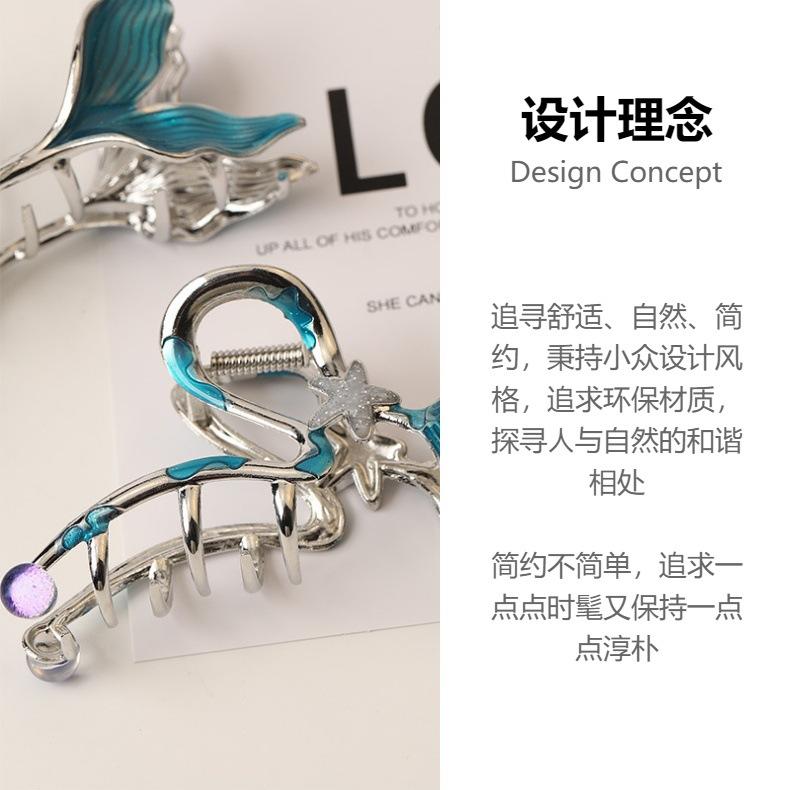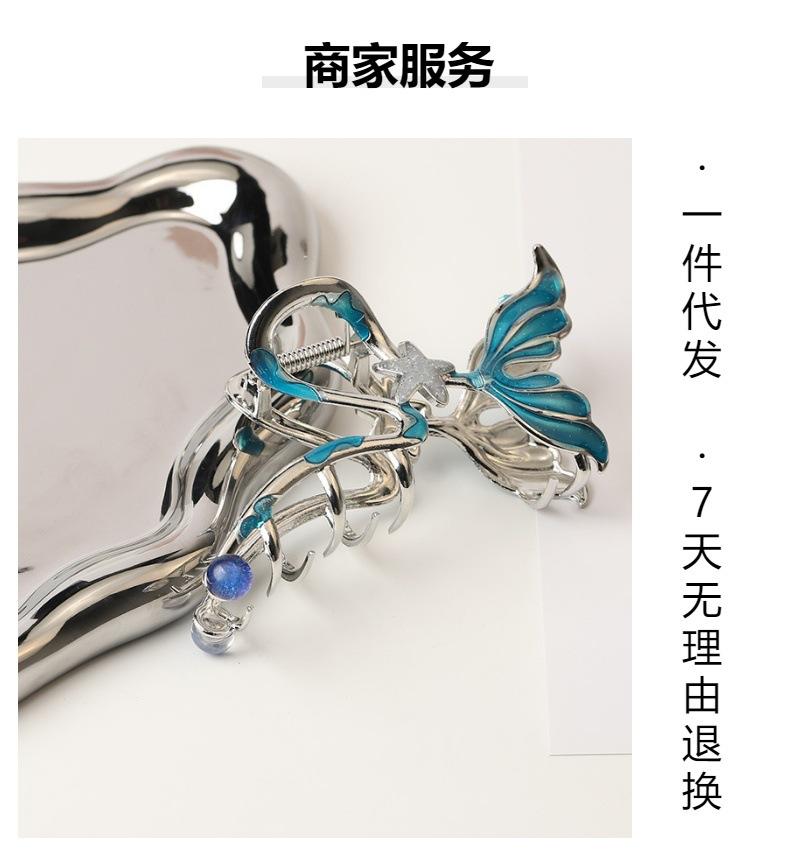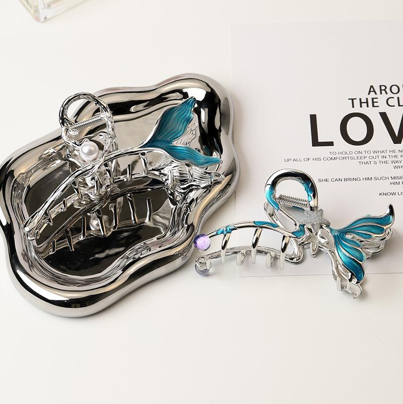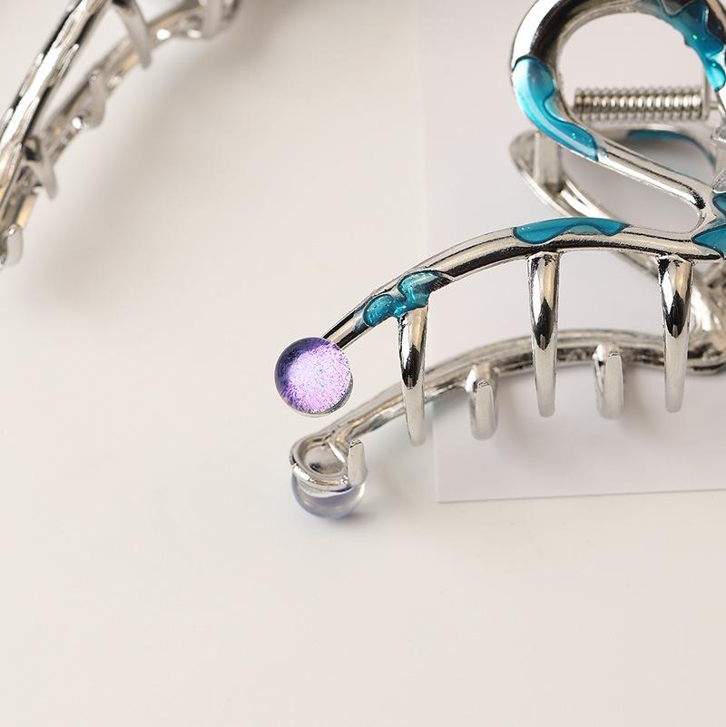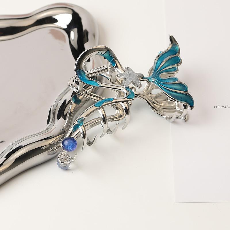 Nuevo Clip Grande de Pinza Cola de Pez Azul Cabeza de Metal Plateado Clip de Tiburón Pinza para Cabello Cuenta Luminosa Accesorios para el Cabello de Mujer